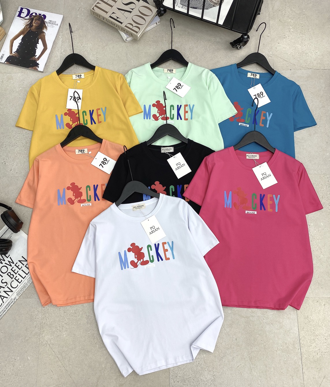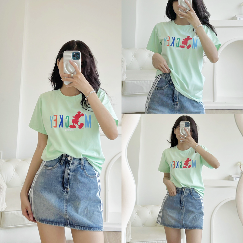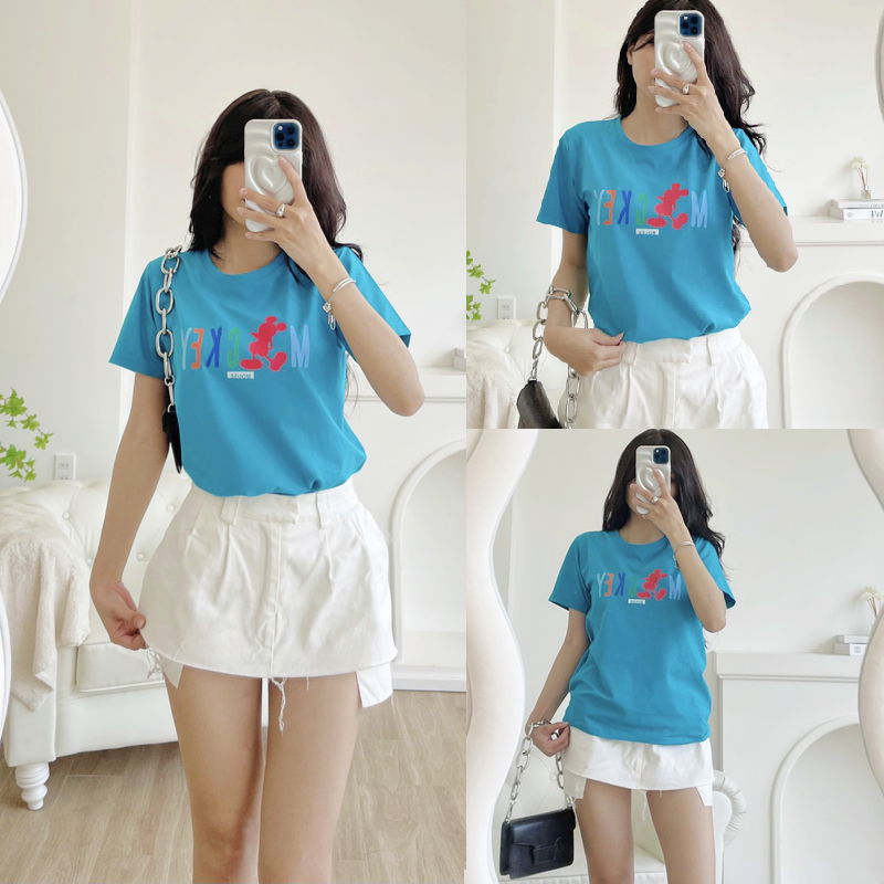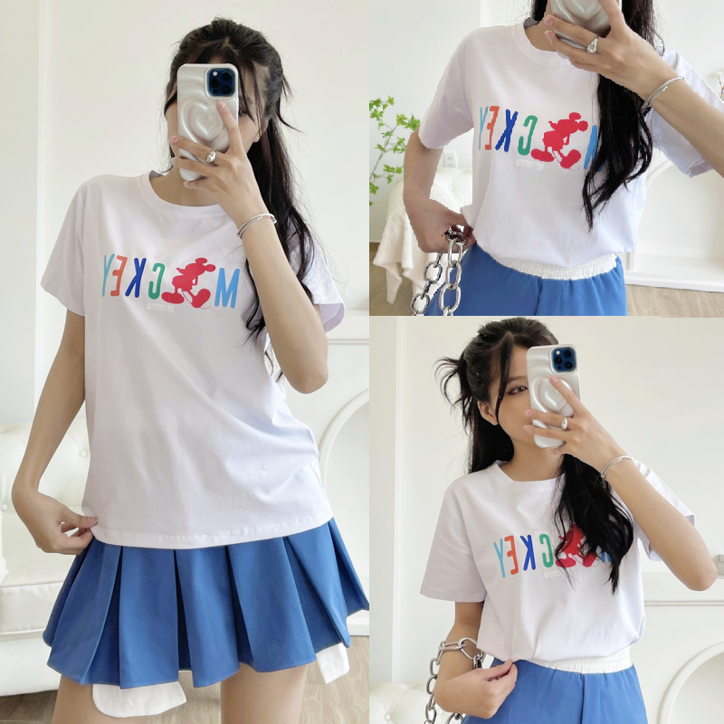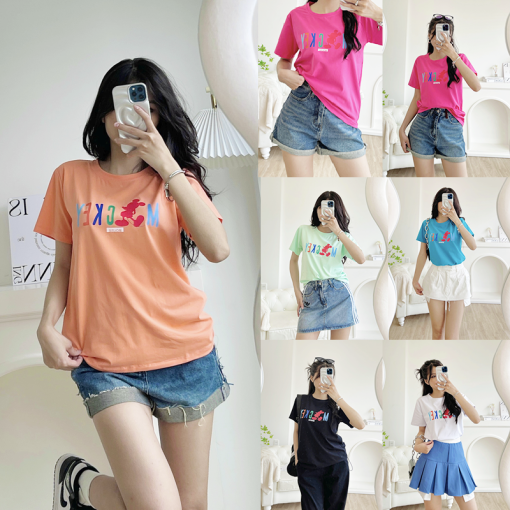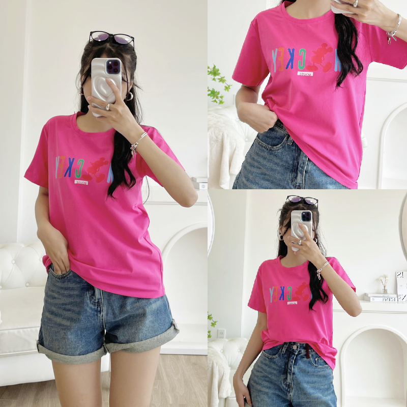 Chuyên sỉ áo thun thái nữ cổ tròn form suông in chữ Mickey