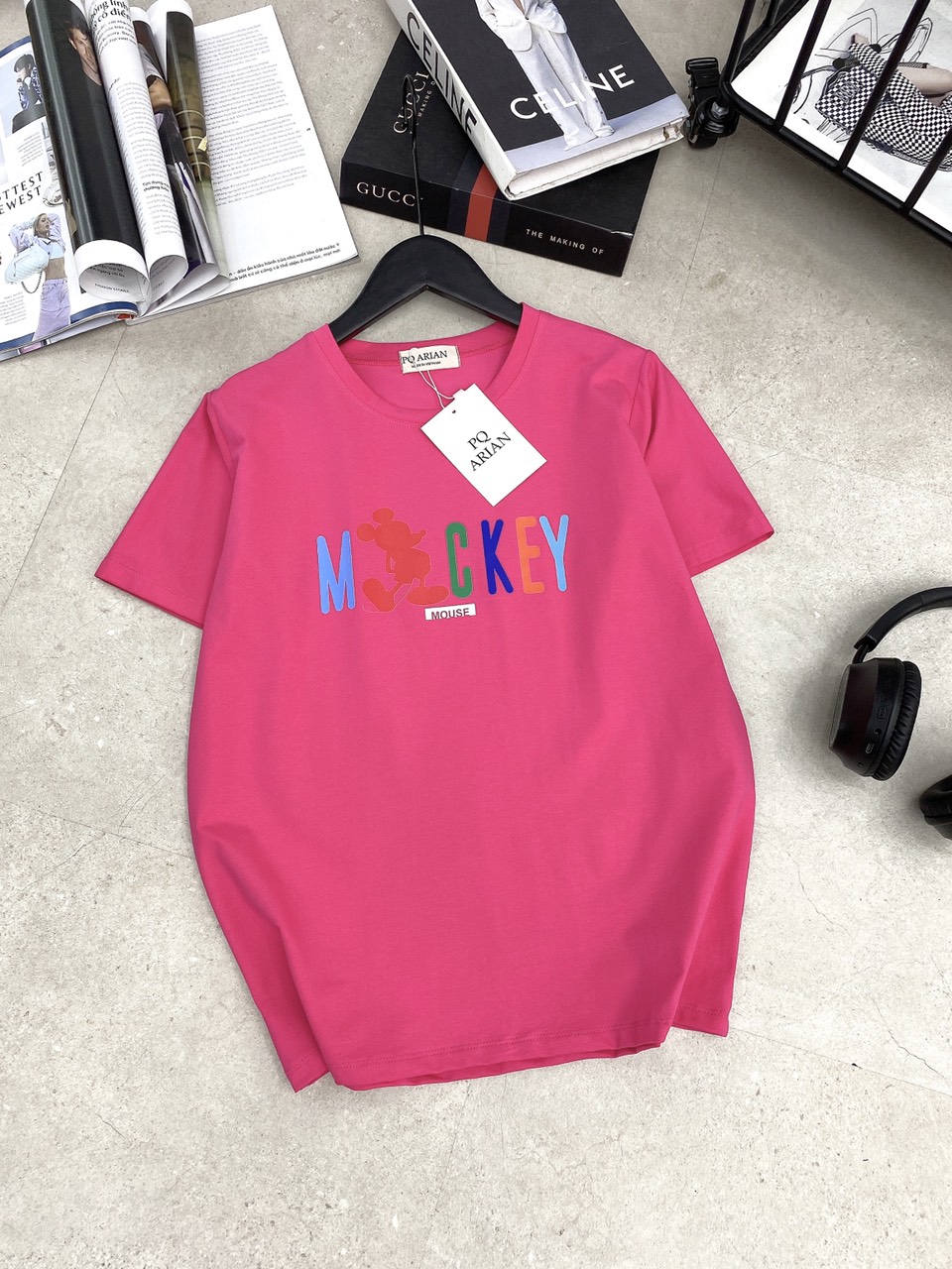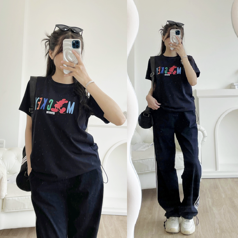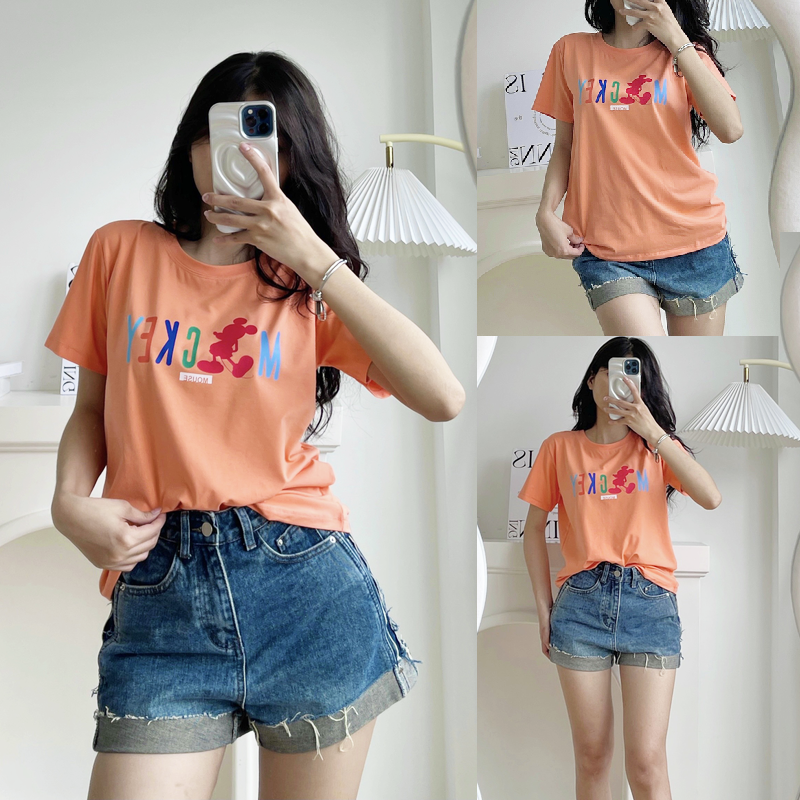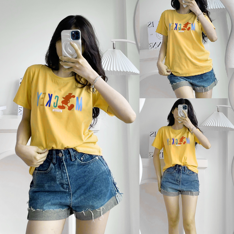 Chuyên sỉ áo thun thái nữ cổ tròn form suông in chữ Mickey