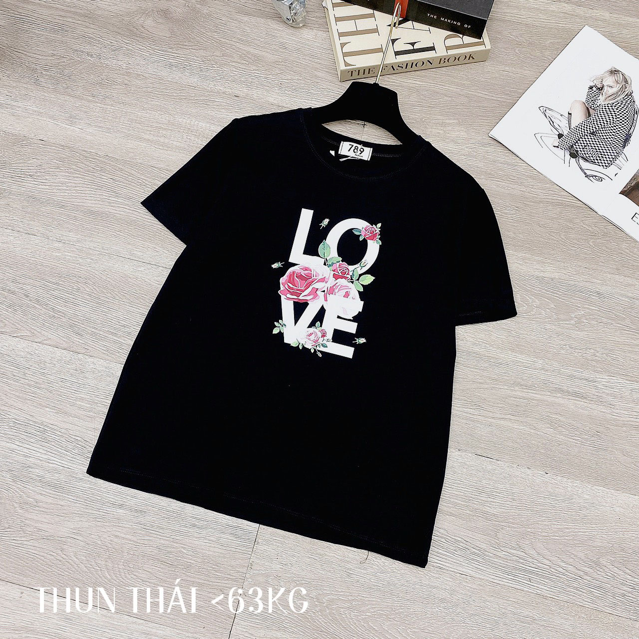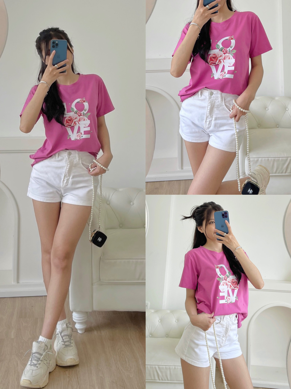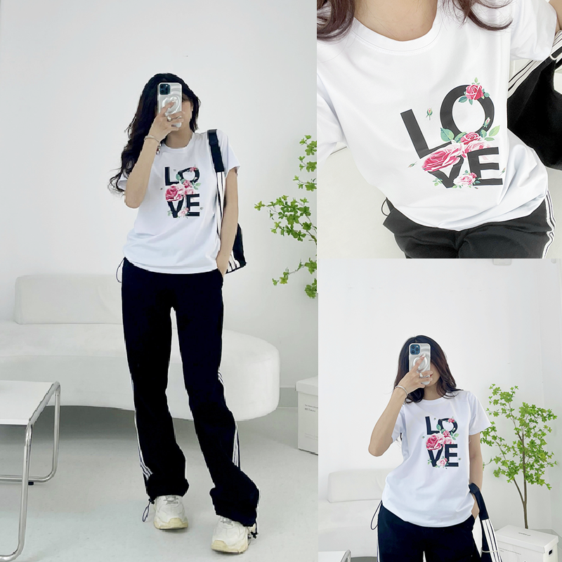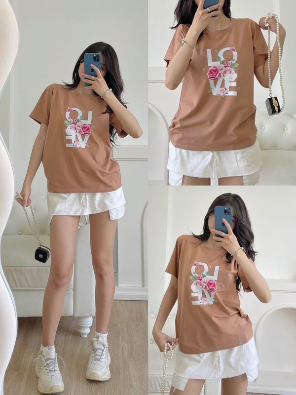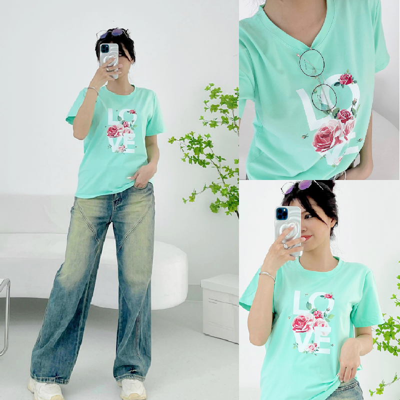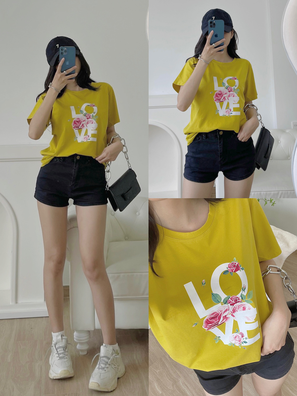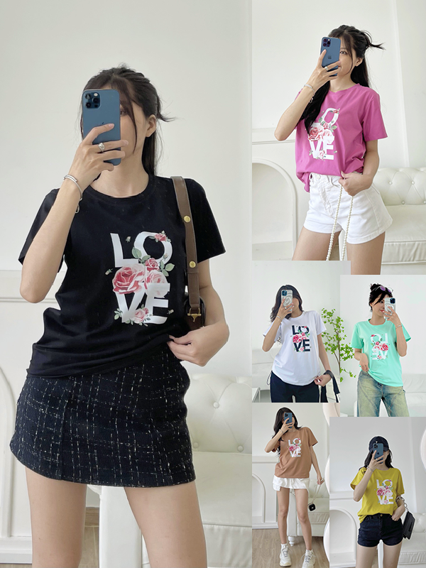 Chuyên sỉ áo thun thái nữ form suông cổ tròn in chữ LOVE phối hoa