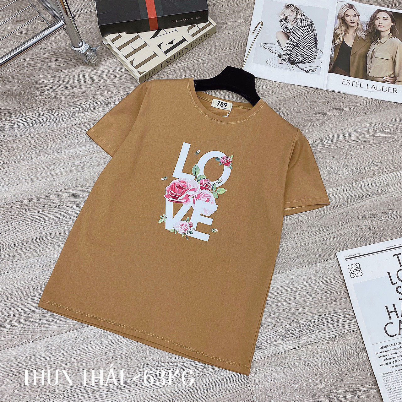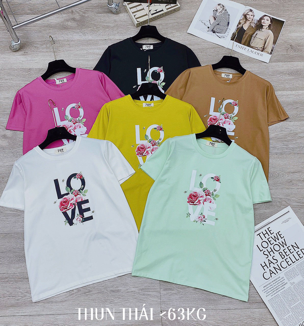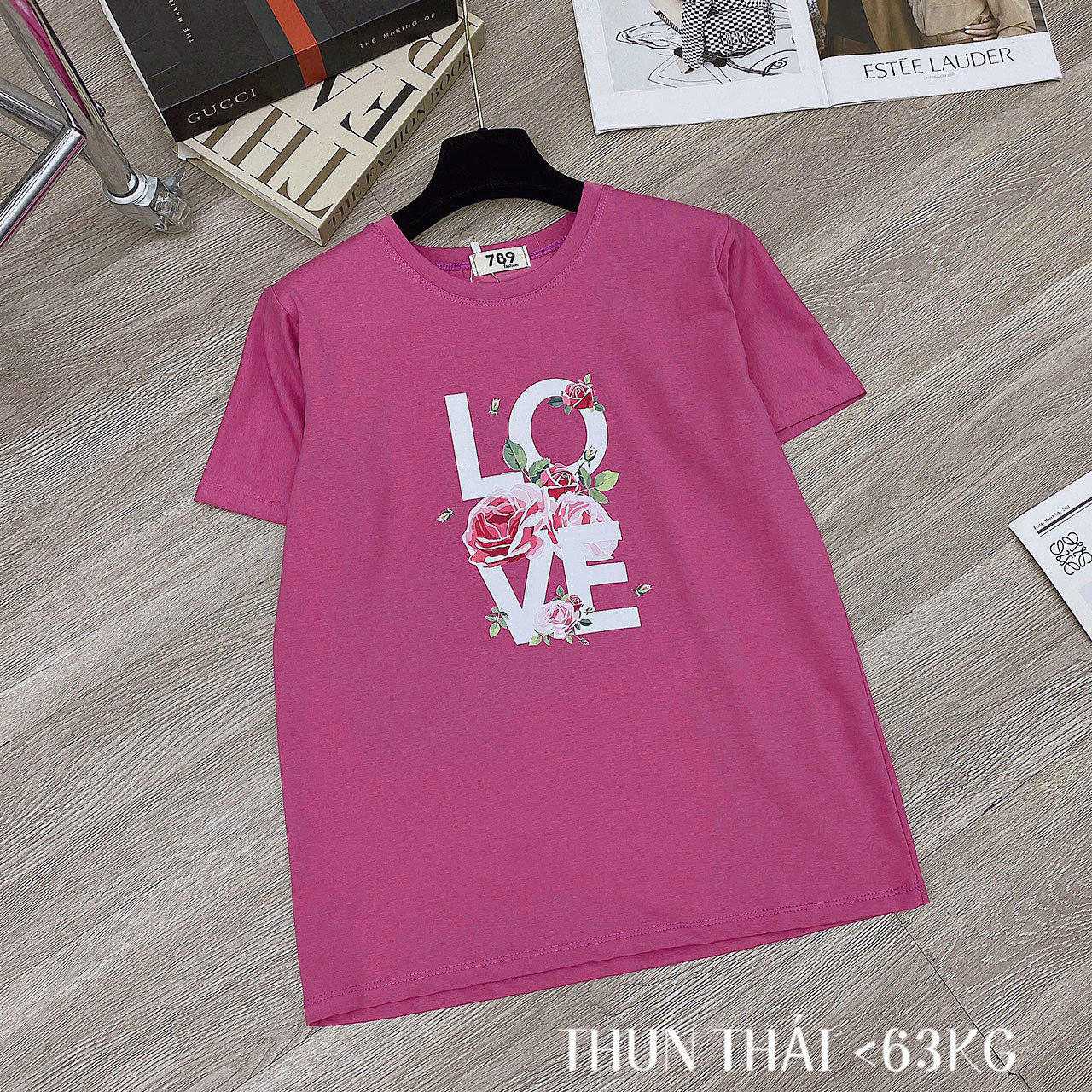 Chuyên sỉ áo thun thái nữ form suông cổ tròn in chữ LOVE phối hoa