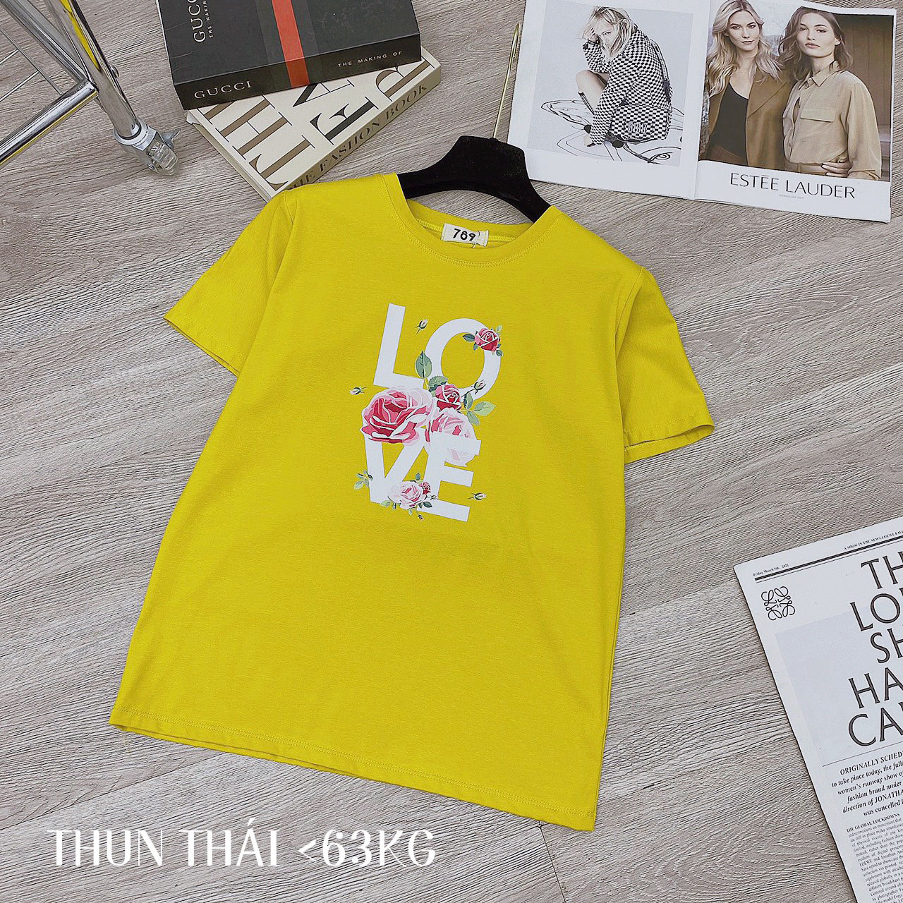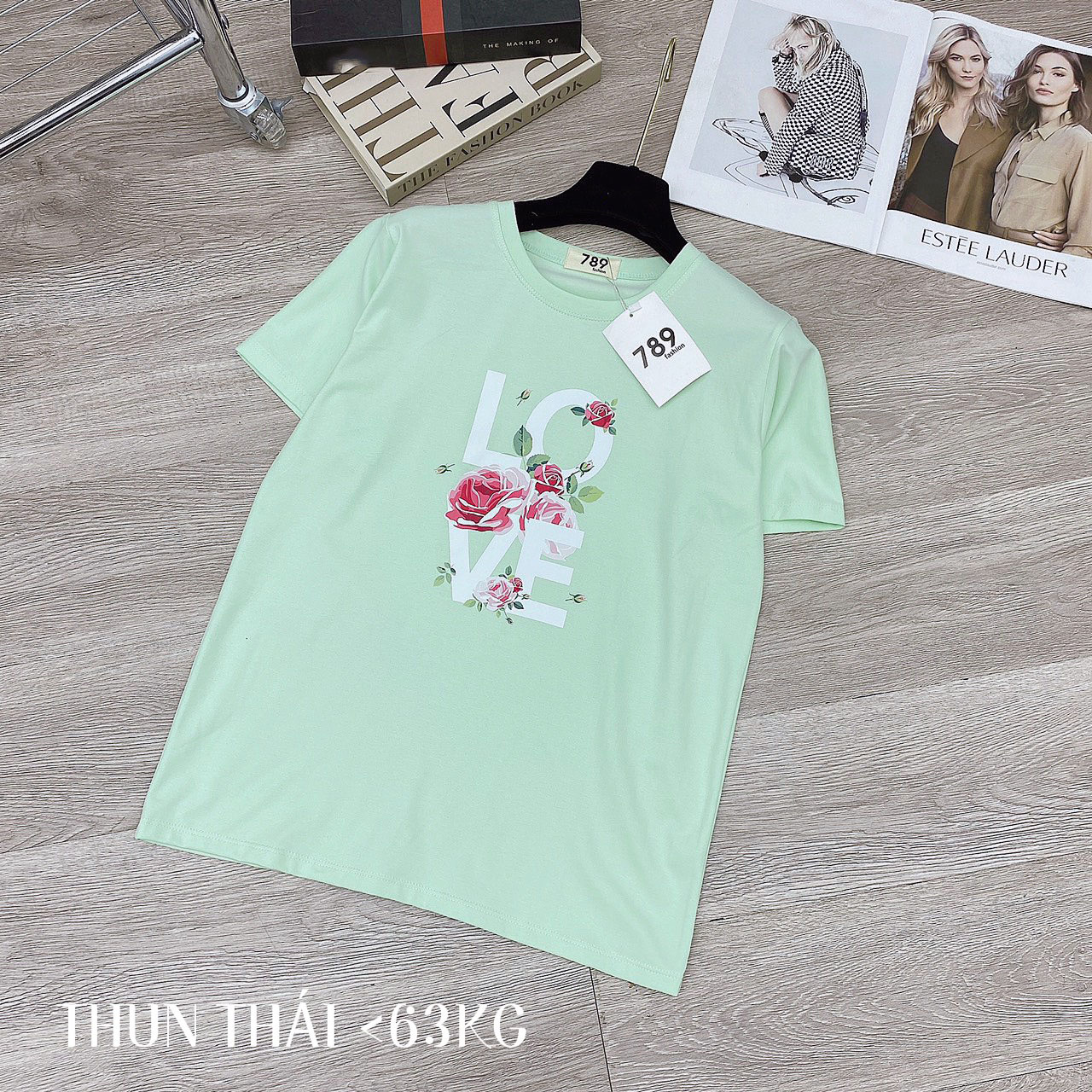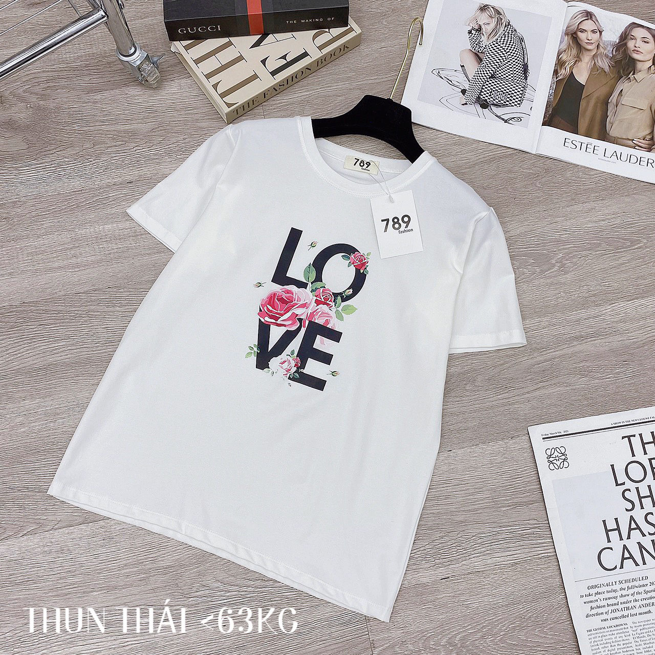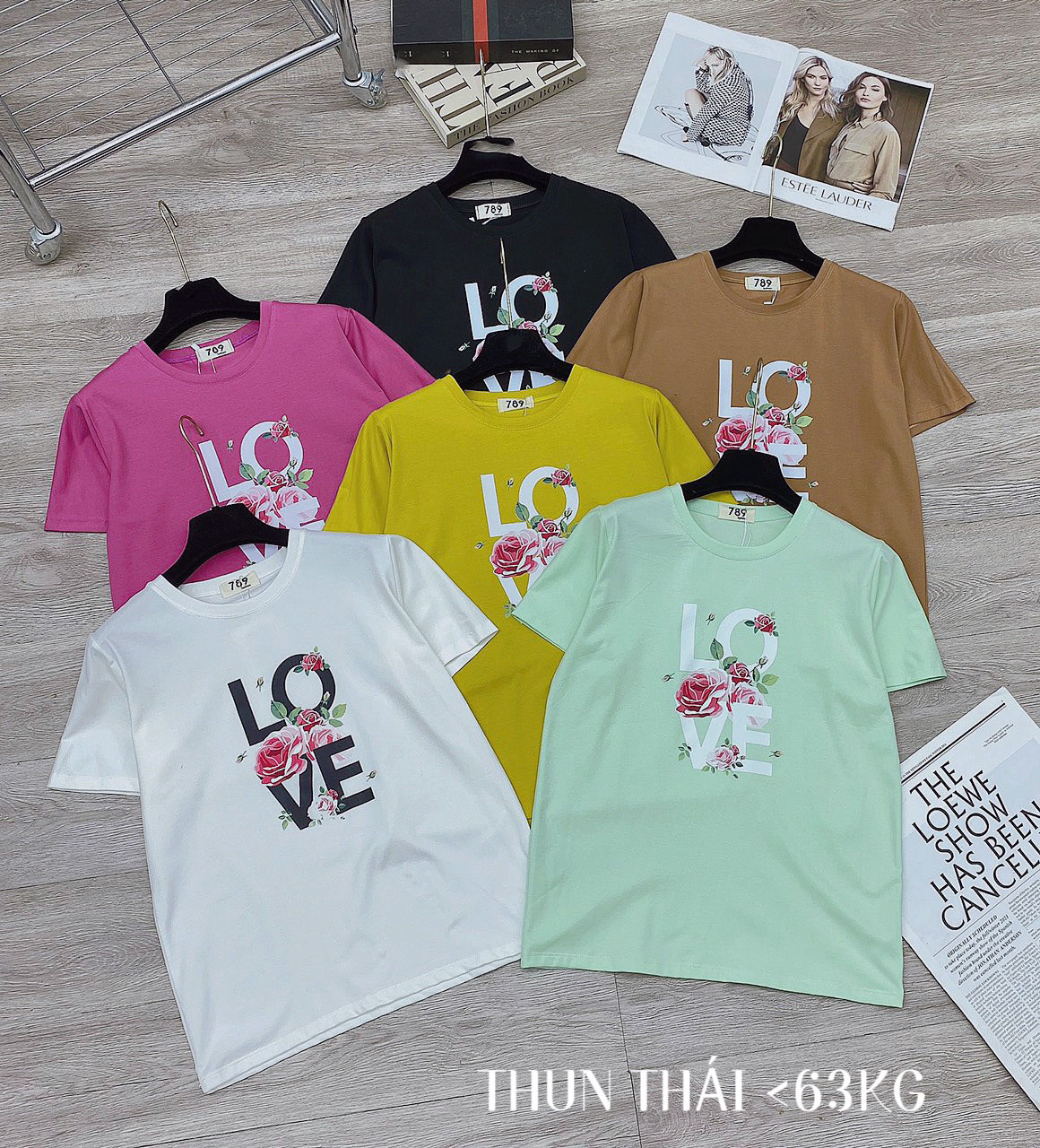 Chuyên sỉ áo thun thái nữ form suông cổ tròn in chữ LOVE phối hoa