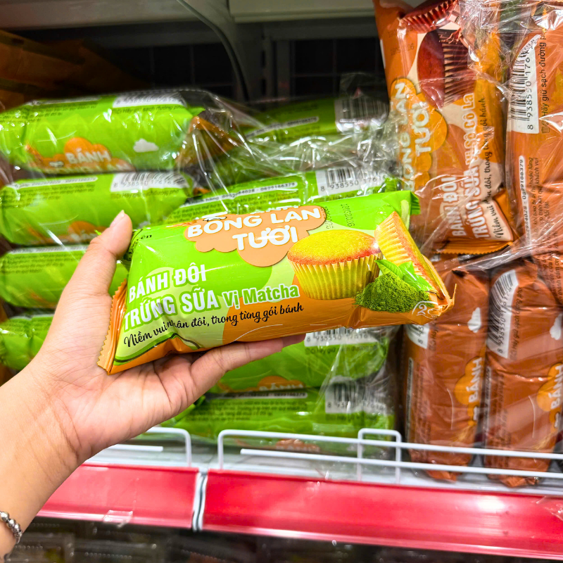 Chuyên sỉ bánh Bông Lan Tươi Trứng Sữa Kim Nguyên Vị Matcha 60g – Bịch Xanh Lá