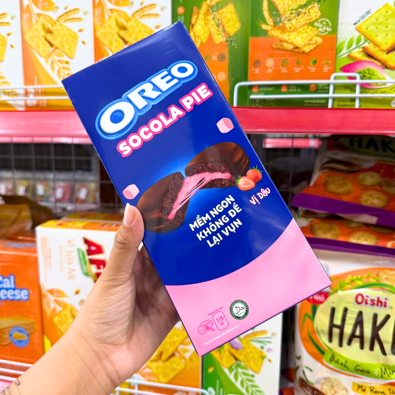 Chuyên sỉ bánh OREO Socola Pie Vị Dâu Mềm Ngon Không Để Lại Vụn 168g