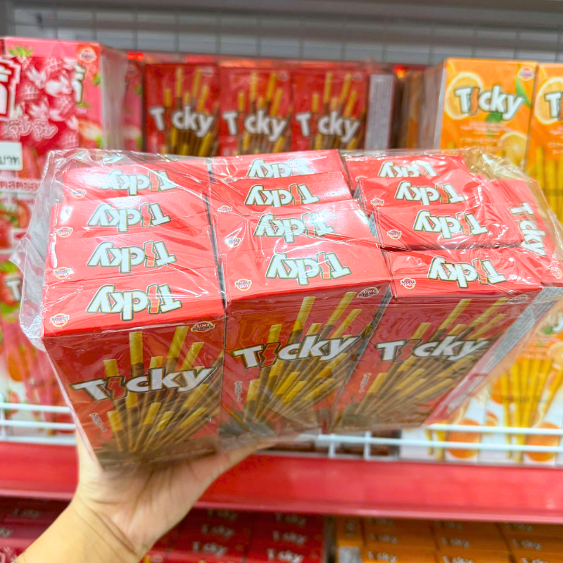 Chuyên sỉ bánh Que Đũa Phủ Socola Ticky Uni Firms Lốc 13 Hộp – Màu Đỏ