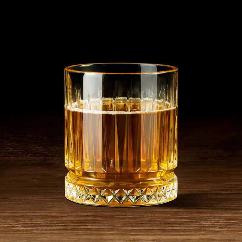 Chuyên sỉ bộ 6 Ly Đáy Kim Cương Trắng Trong Viền Vàng – Cốc Thủy Tinh Cao Cấp 340ml