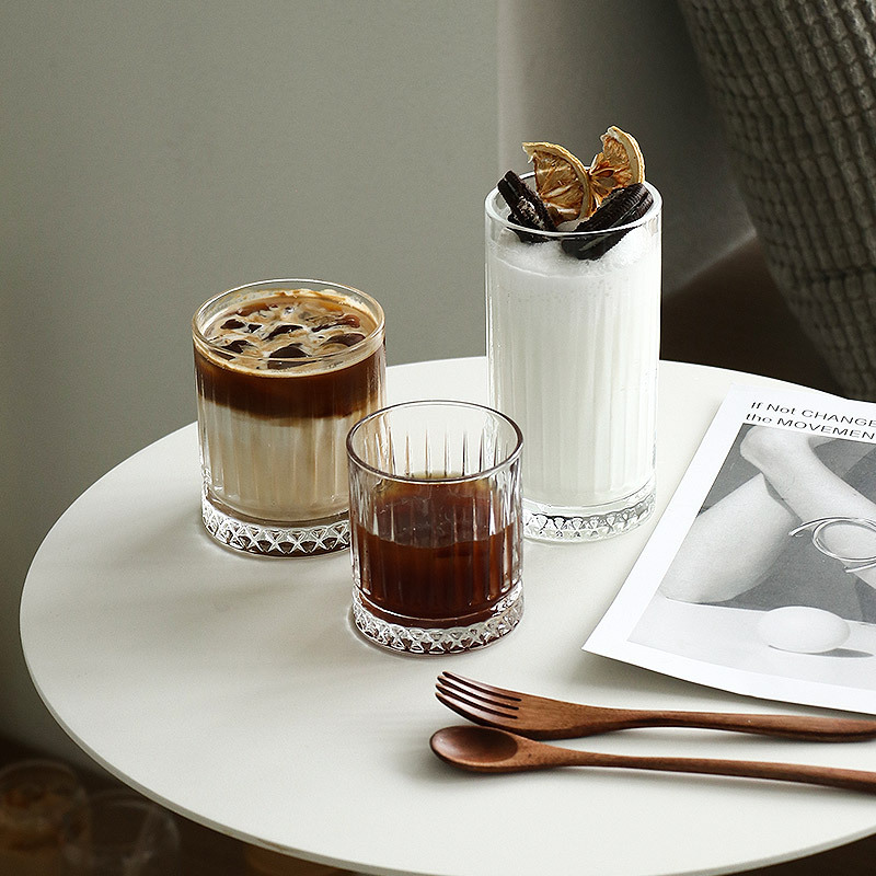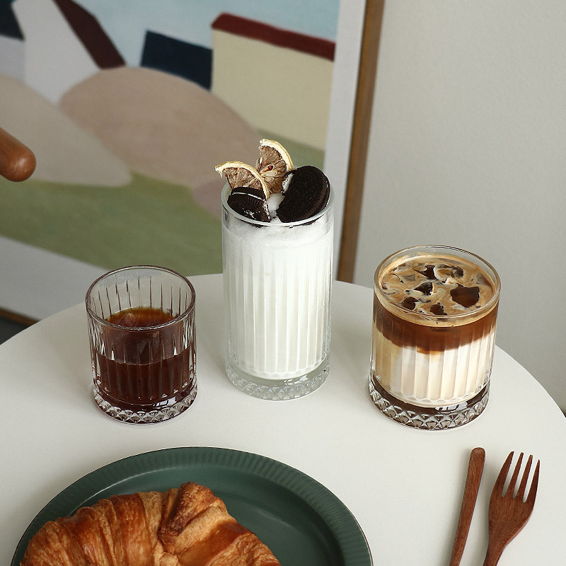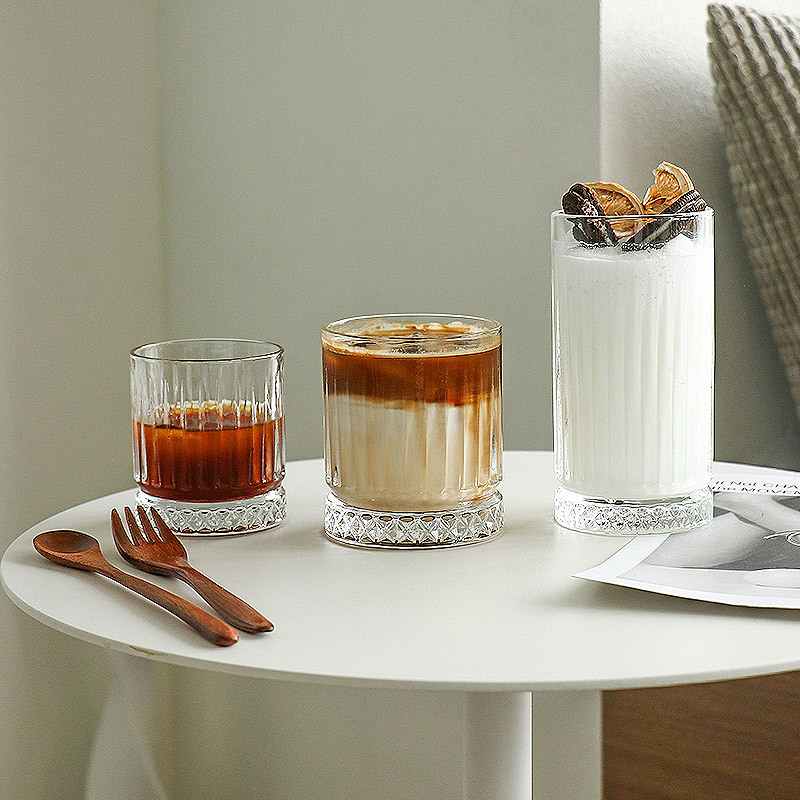 ➖Họa tiết: Cốc sọc có chân đế họa tiết kim cương màu vàng trà