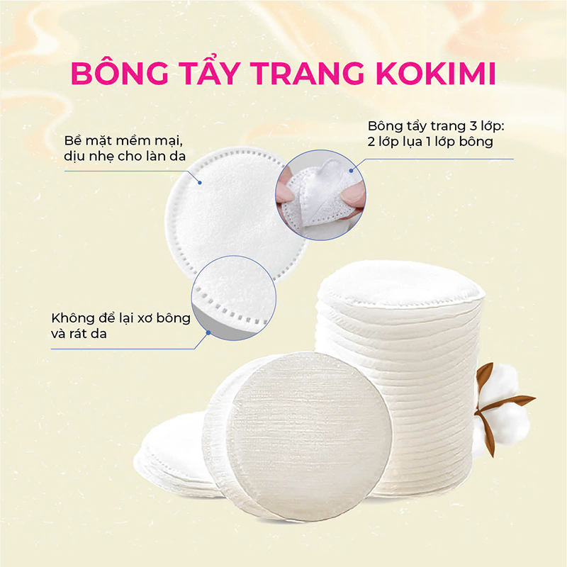 Bông Tẩy Trang Tròn Kokimi Mềm Mại – 155 Miếng