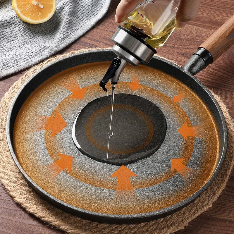 ✅ Chảo gang được đúc đáy bằng phẳng nguyên khối giúp cho thực phẩm trải đều, chín vàng đều hơn.