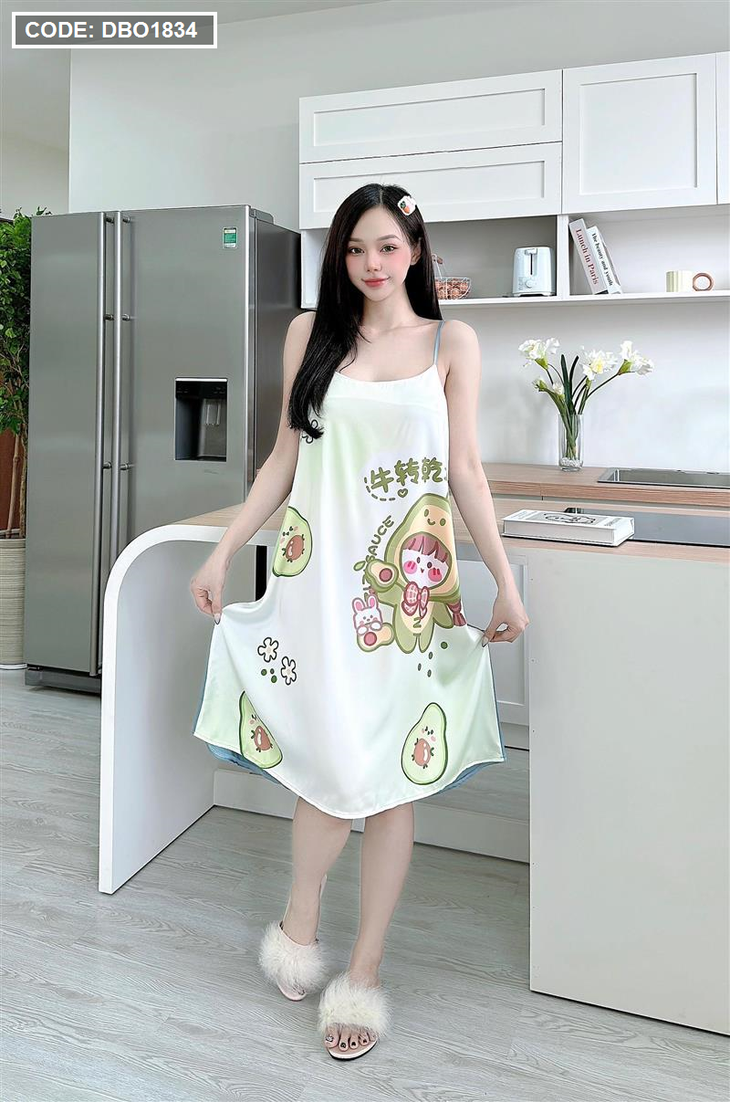 Chuyên sỉ đầm nữ 2 dây form suông họa tiết cute