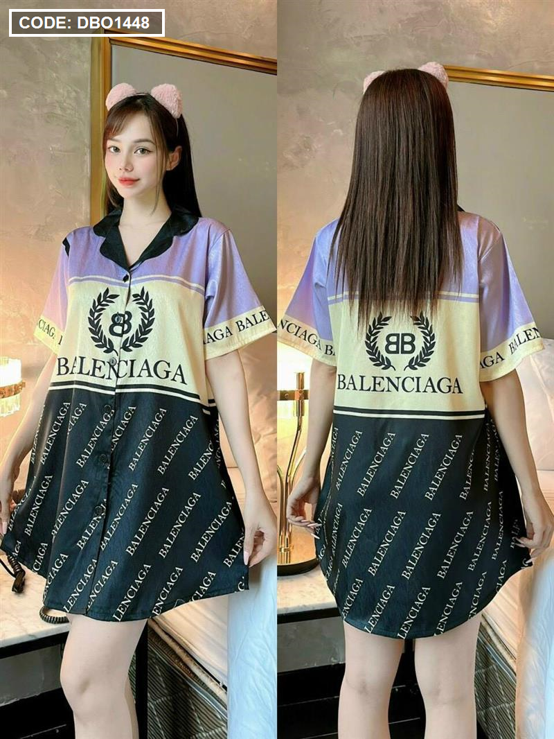 Đầm sơ mi nữ vải latin in 3D xinh xắn