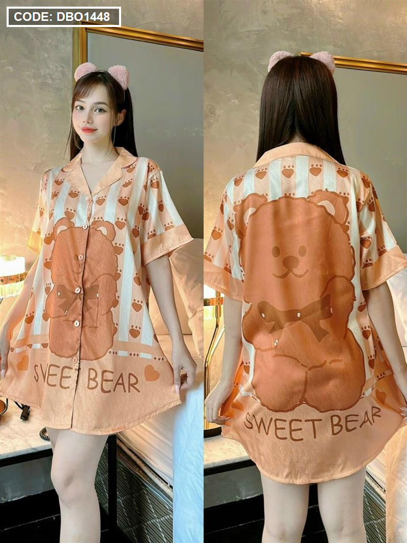 Chuyên sỉ đầm sơ mi nữ vải latin in 3D xinh xắn