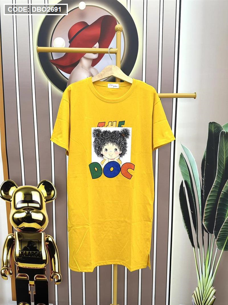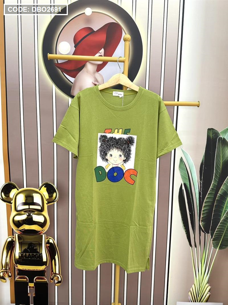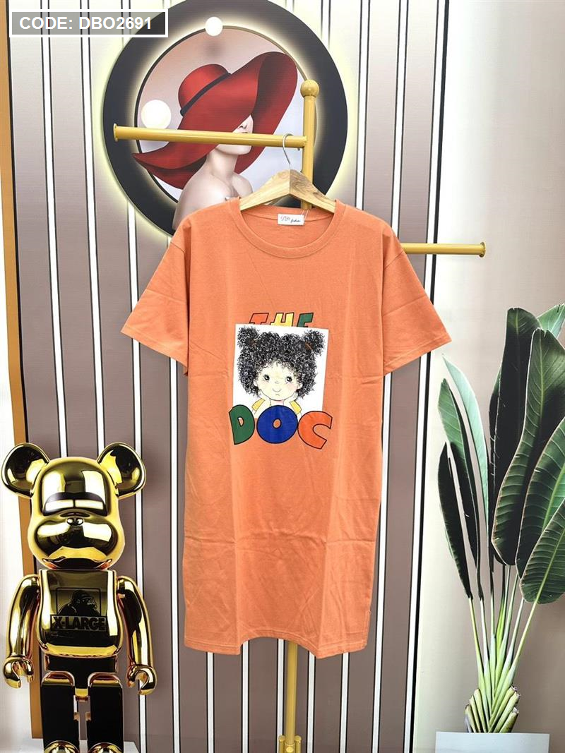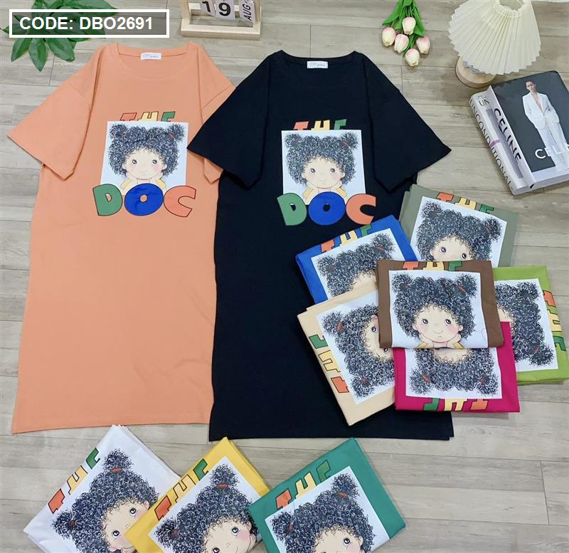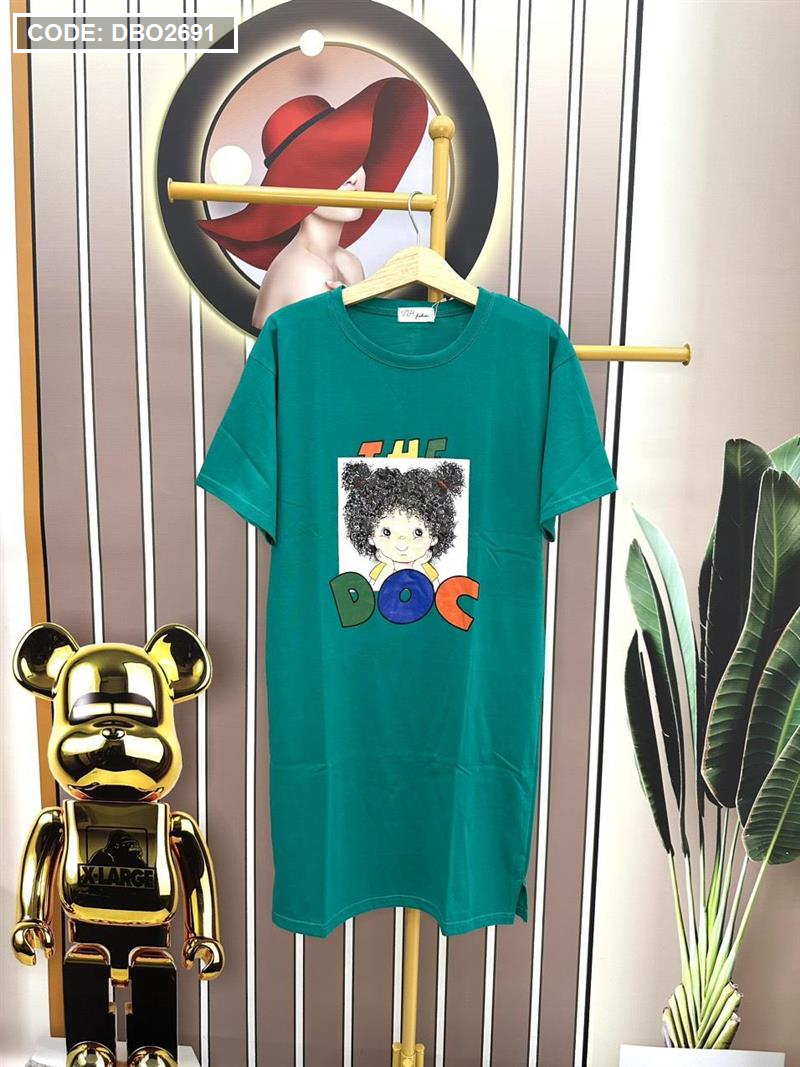 Chuyên sỉ đầm suông áo tay ngắn cổ tròn in hình