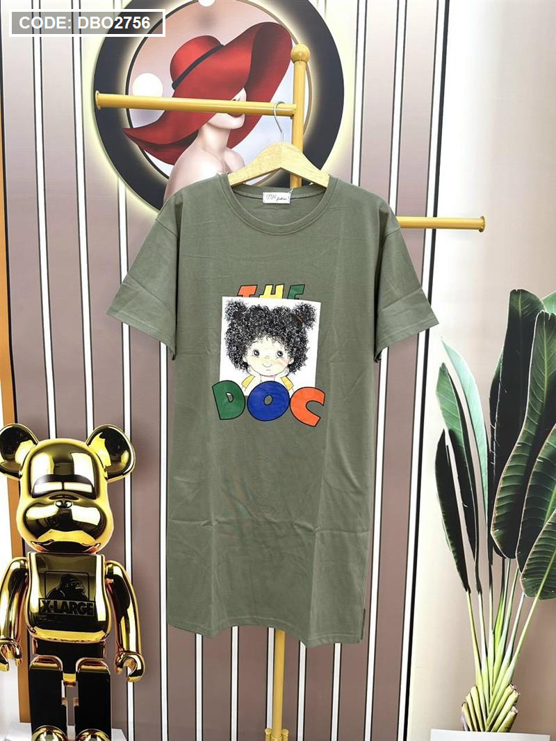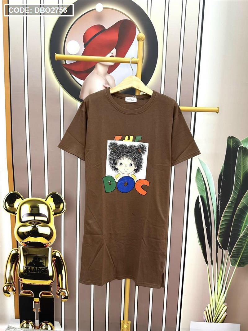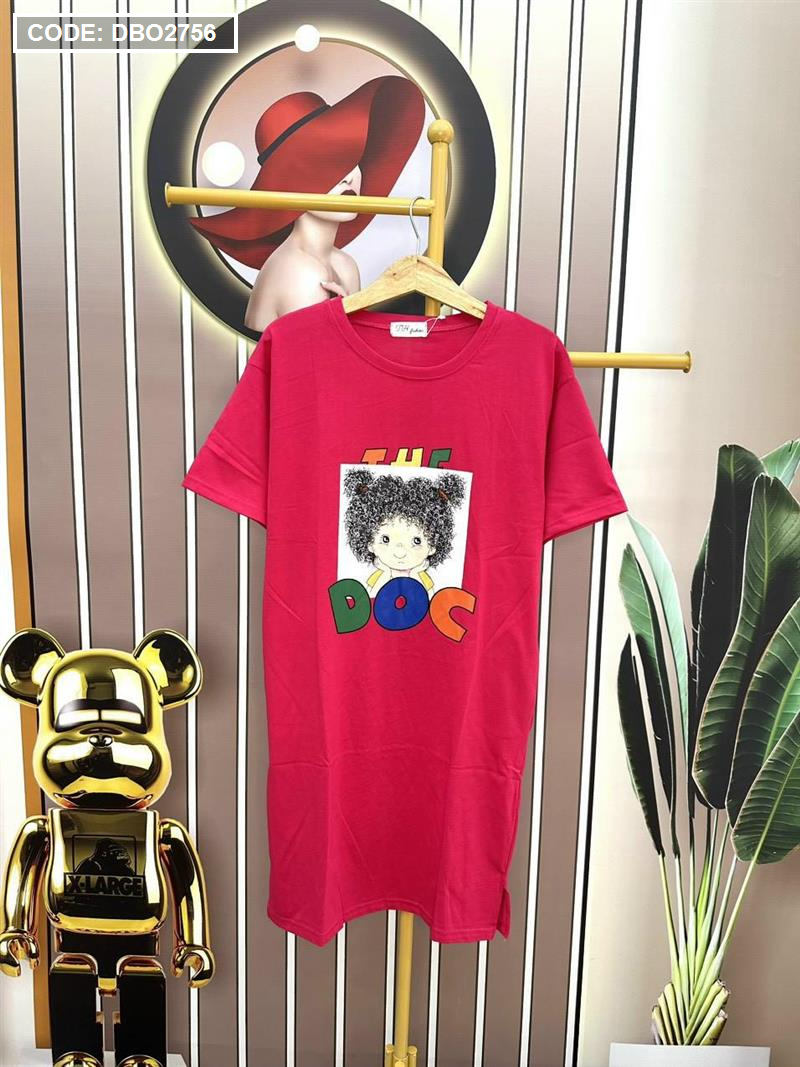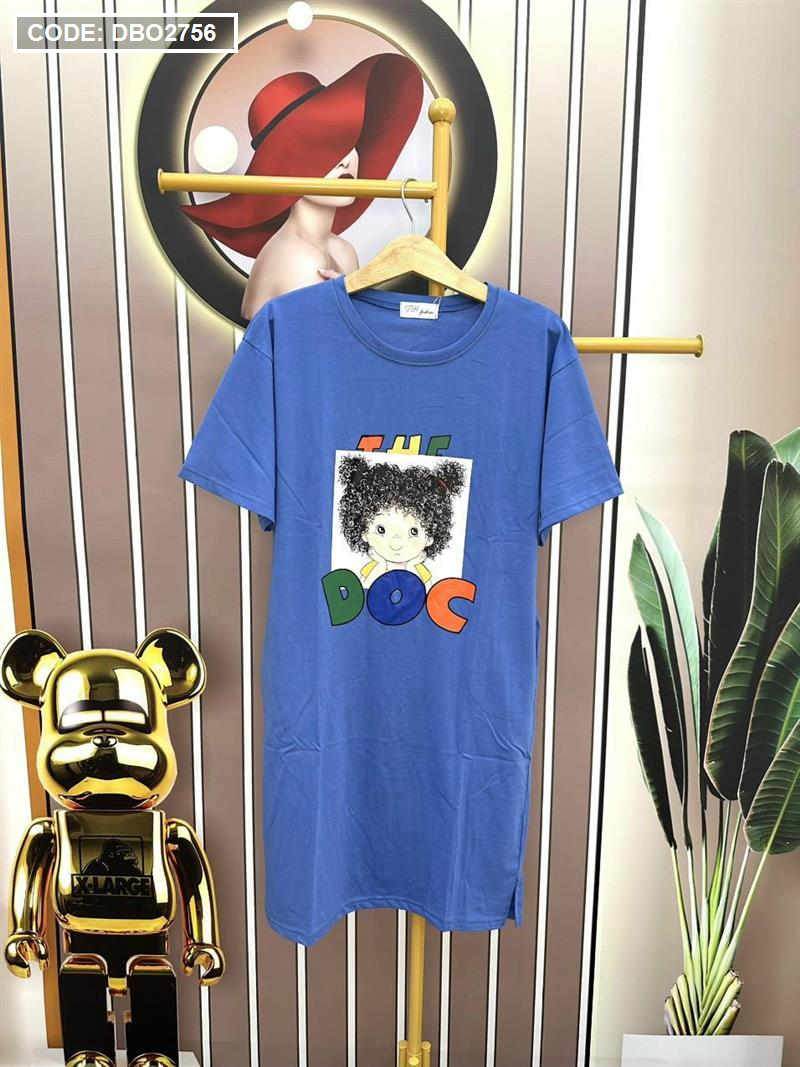 Chuyên sỉ đầm suông tay ngắn cổ tròn in hình