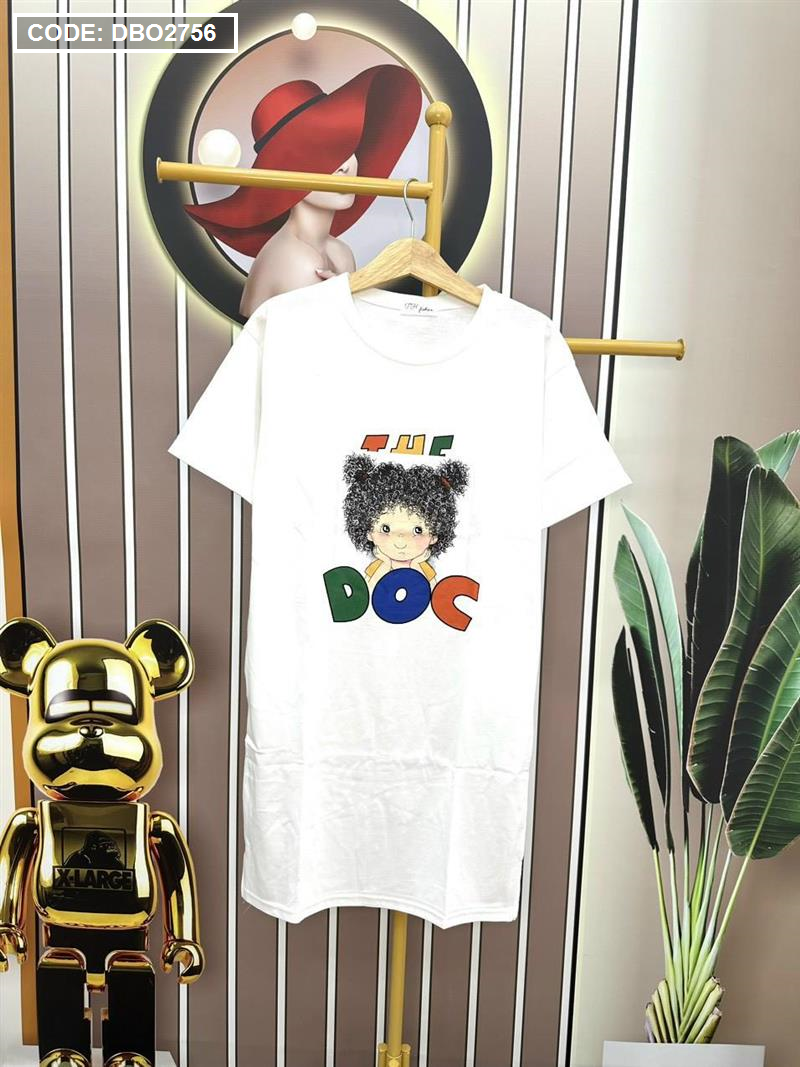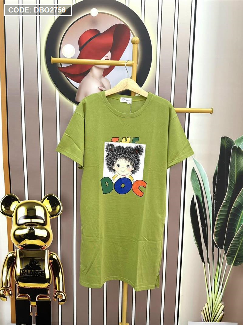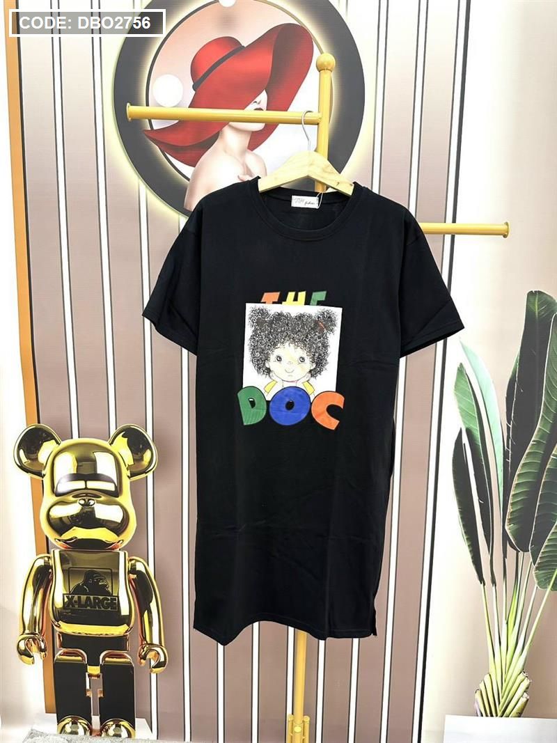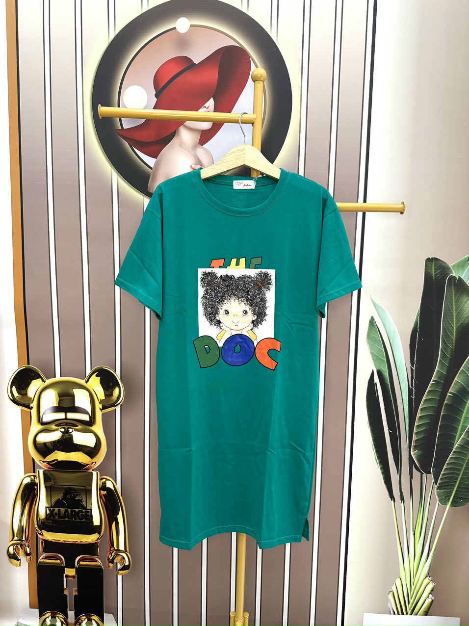Chuyên sỉ đầm suông tay ngắn cổ tròn in hình