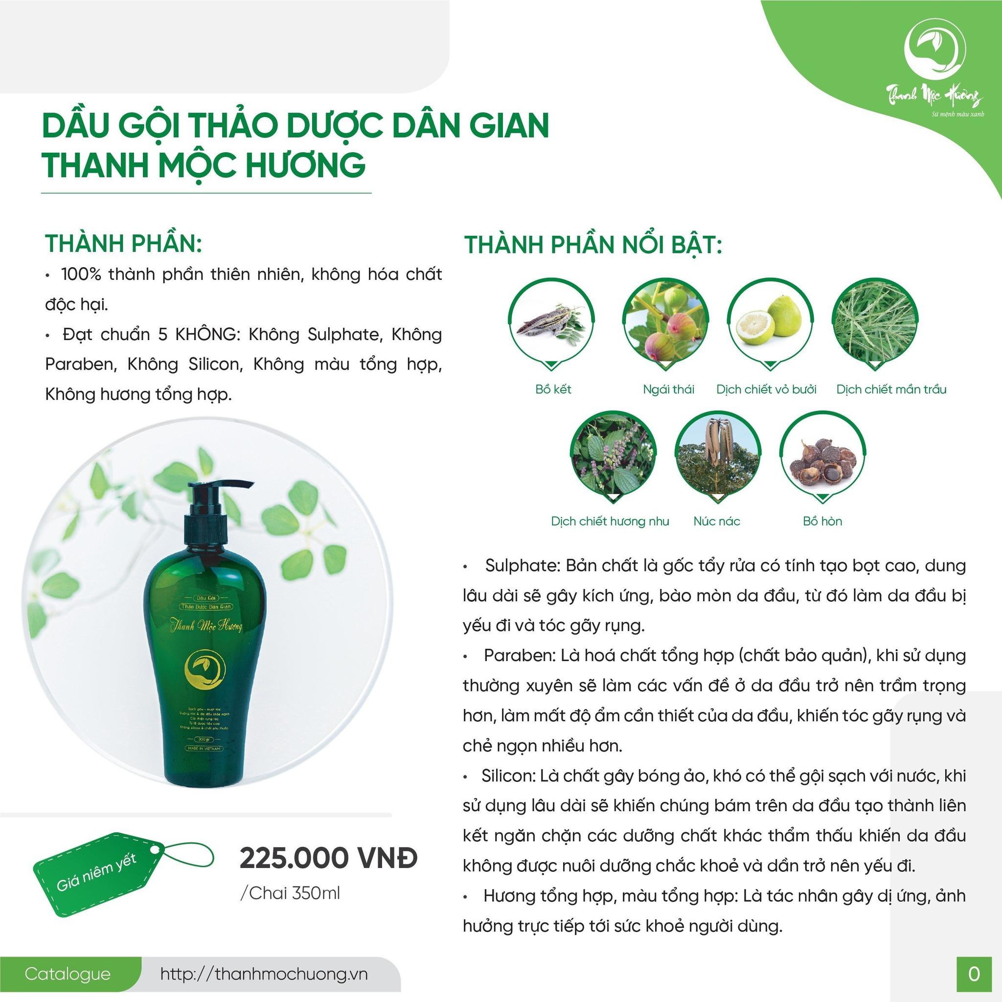 CÔNG DỤNG: Với các thành phần thiên nhiên và thảo dược, dầu gội Thanh Mộc Hương là sự kết hợp hoàn hảo giữa chất tẩy rửa nhẹ nhàng và công thức dưỡng chất tuyệt vời. Đặc biệt, sản phẩm giúp làm sạch gàu, phục hồi tóc hư tổn và ngăn ngừa tình trạng tóc xơ, rối, gãy rụng.