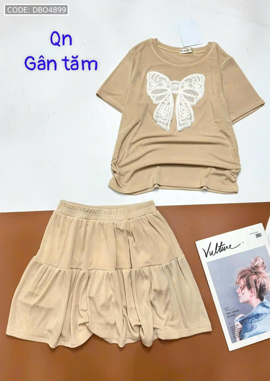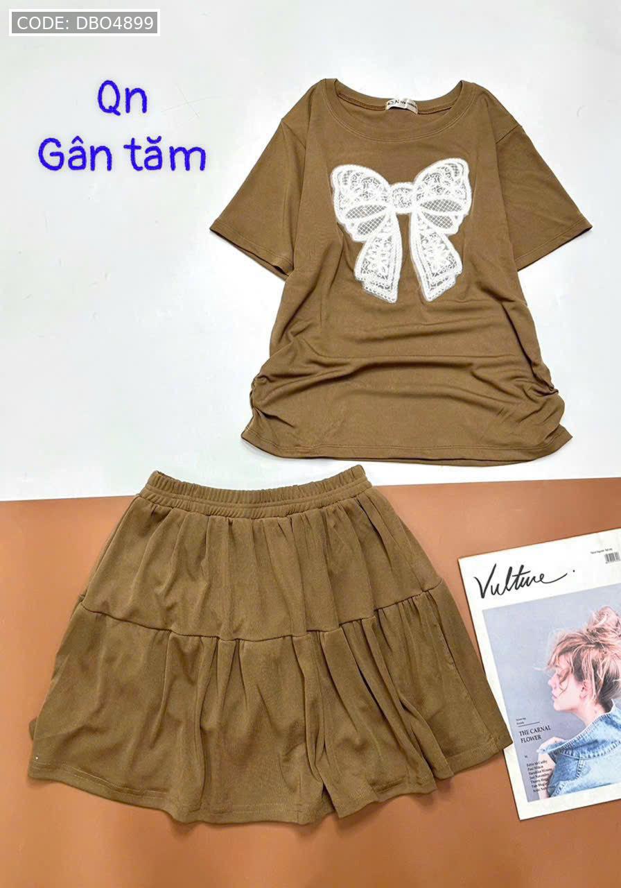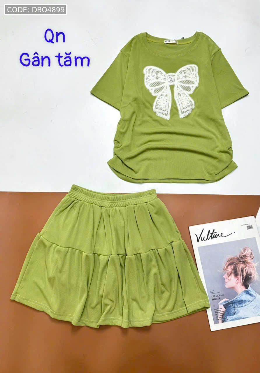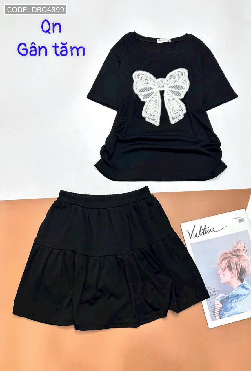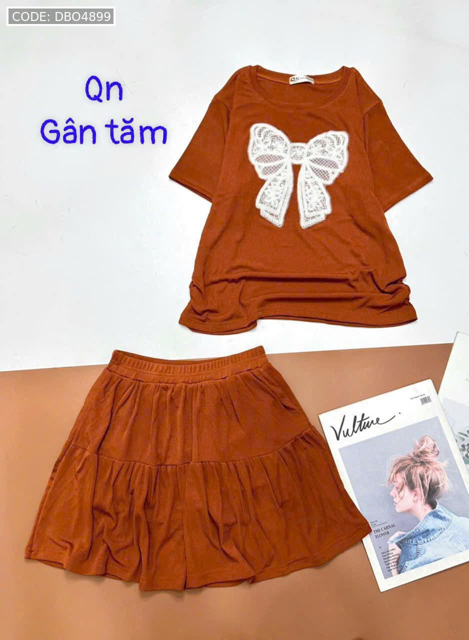 Chuyên sỉ đồ bộ gân tăm quần váy áo in nơ lớn