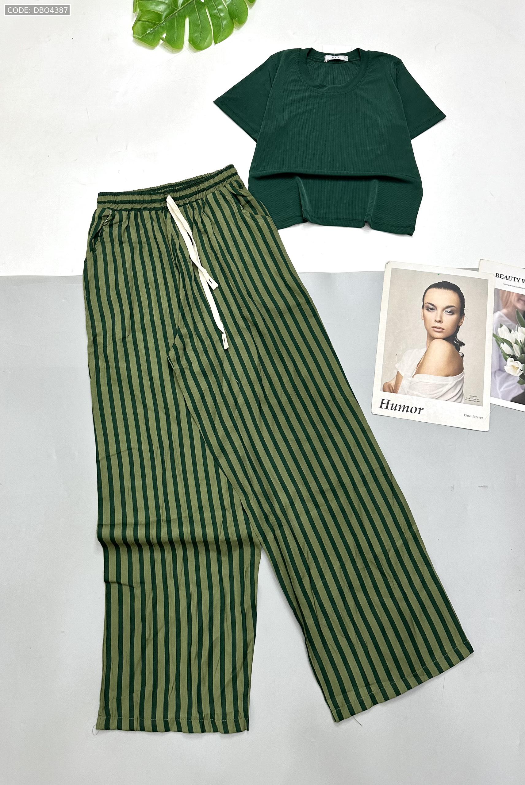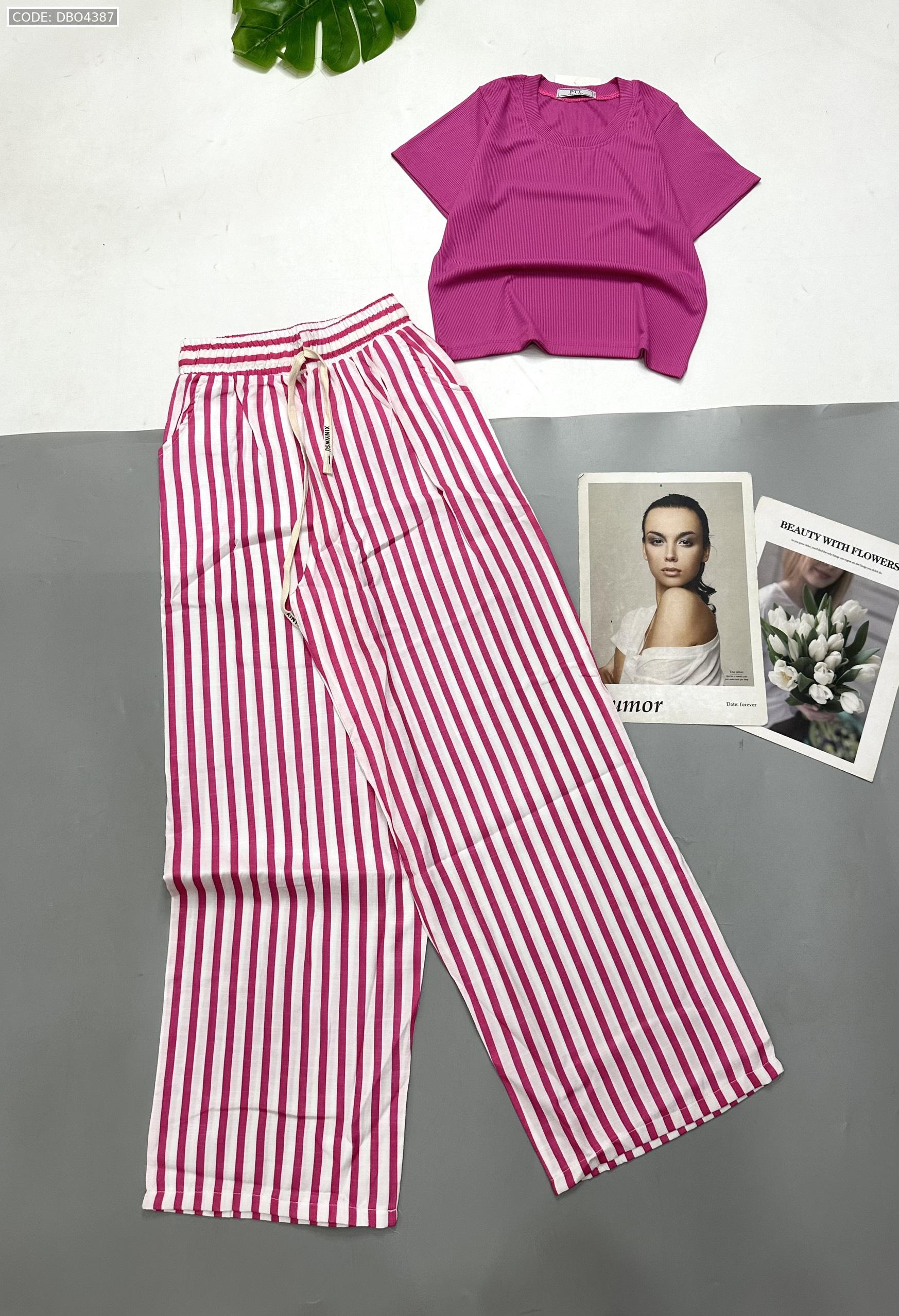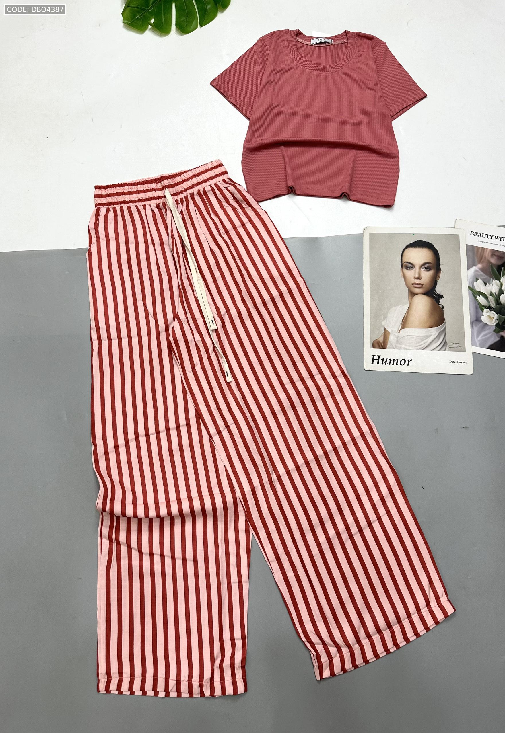Chuyên sỉ đồ bộ mặc nhà quần dài sọc áo tay ngắn trơn