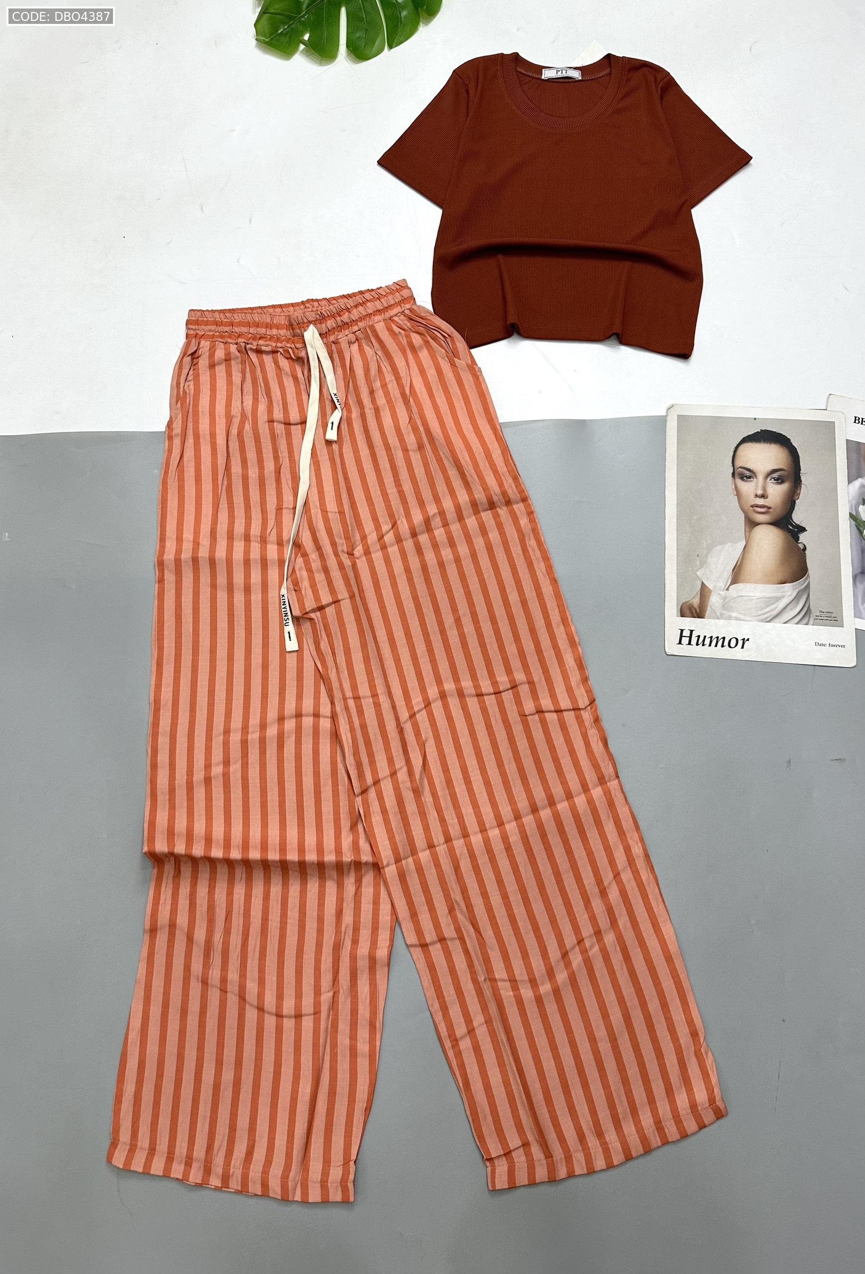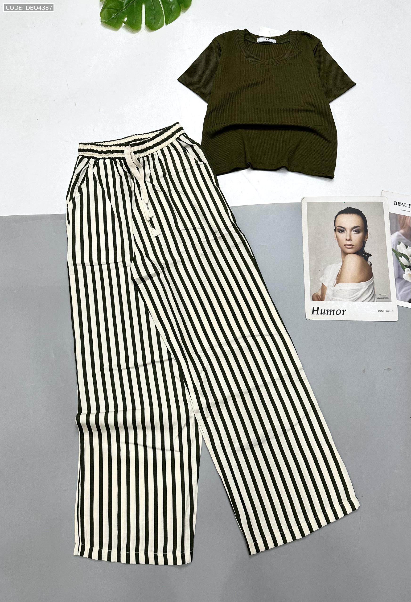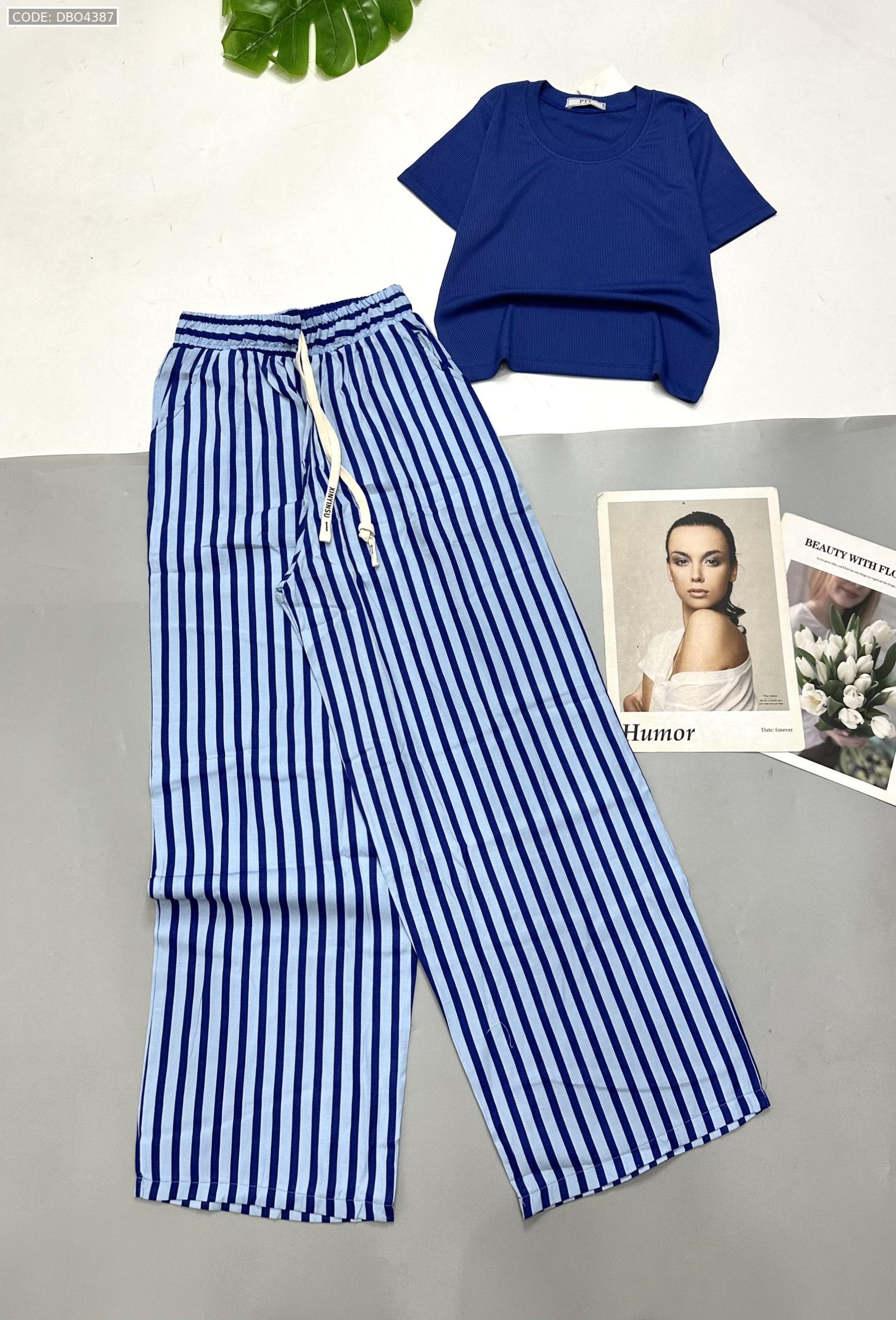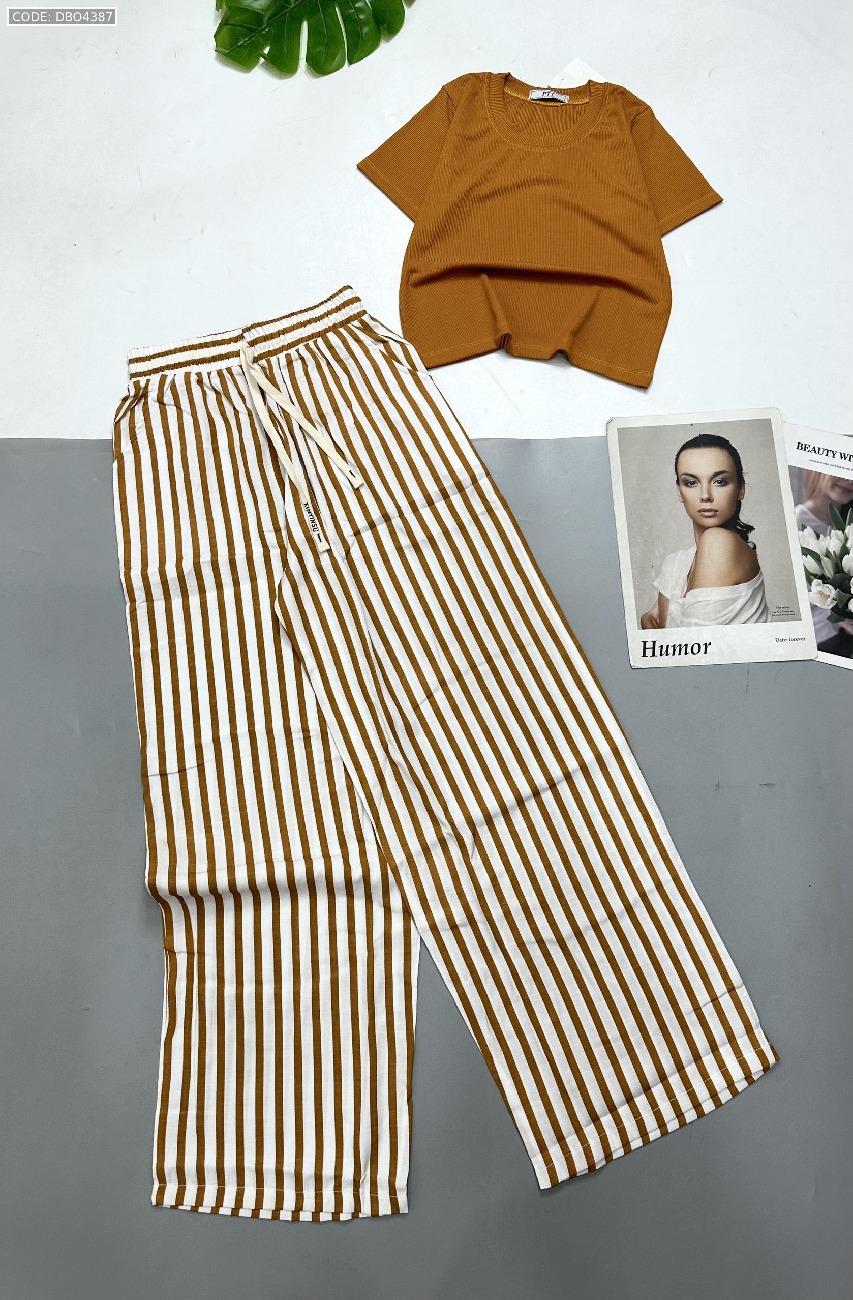 Chuyên sỉ đồ bộ mặc nhà quần dài sọc áo tay ngắn trơn
