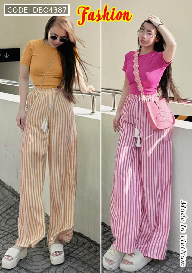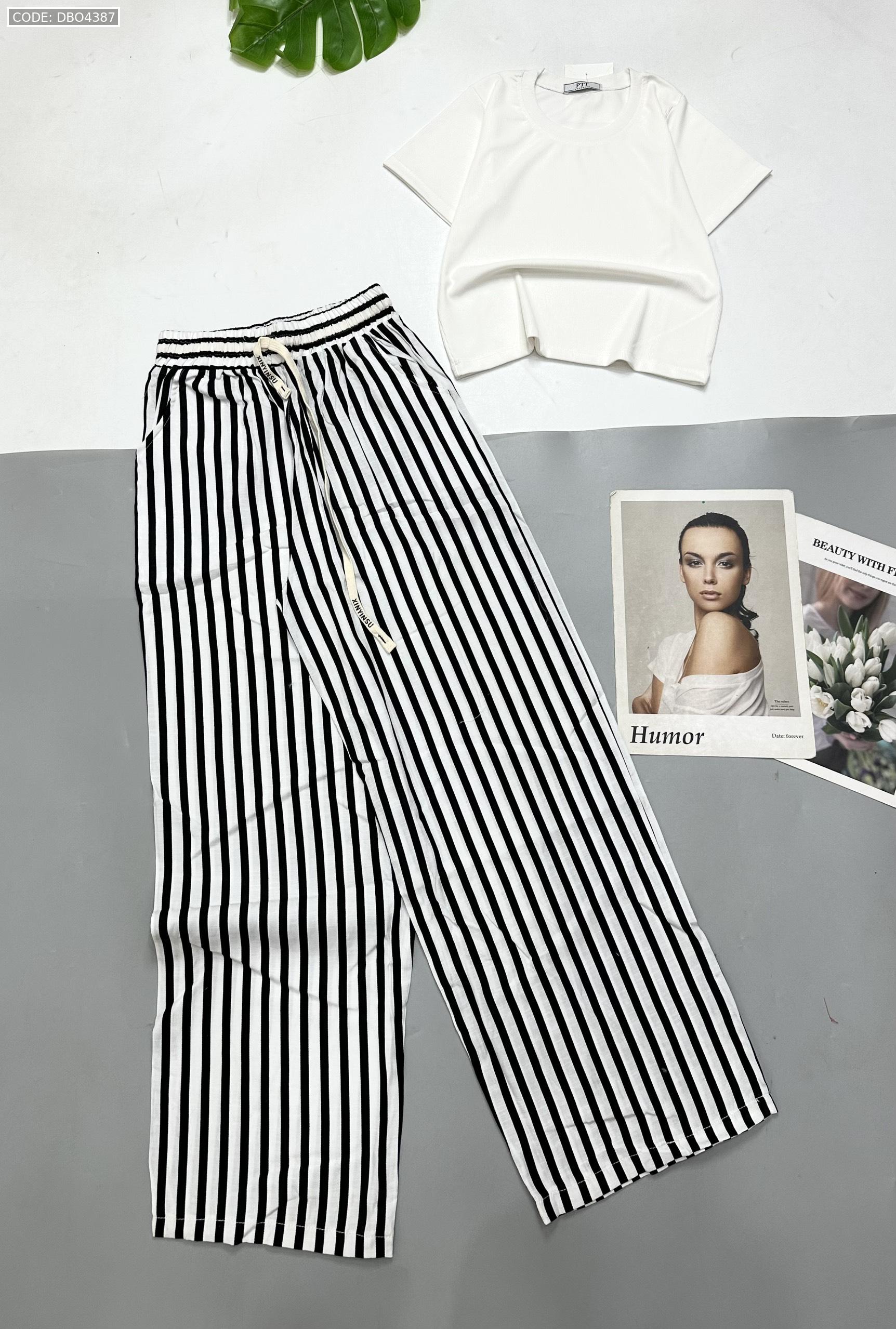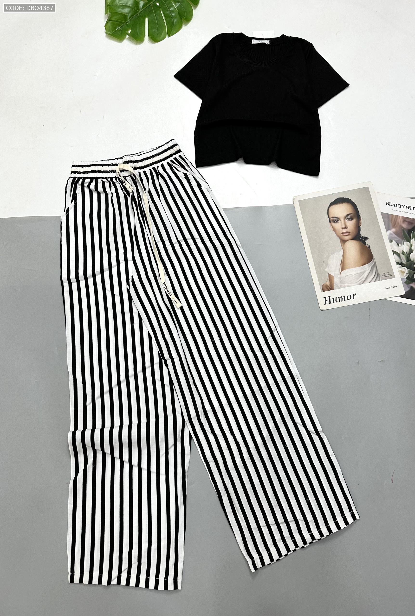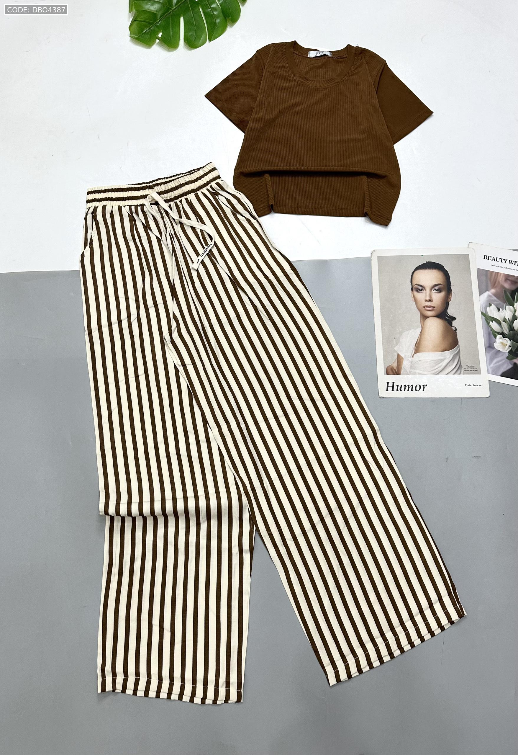 Chuyên sỉ đồ bộ mặc nhà quần dài sọc áo tay ngắn trơn