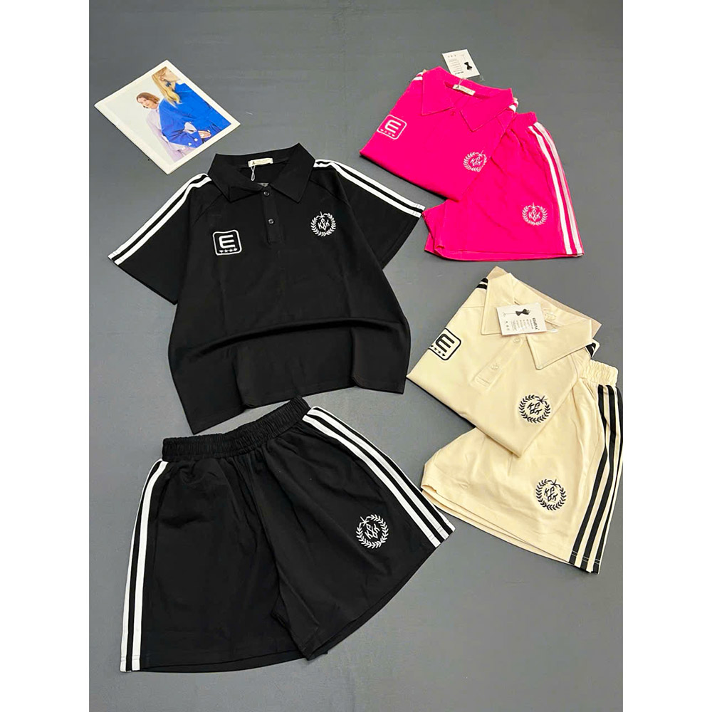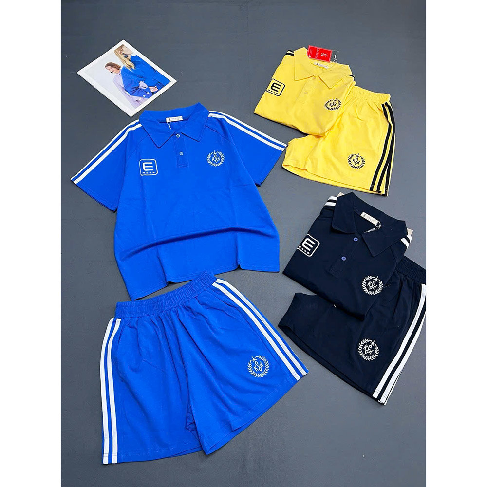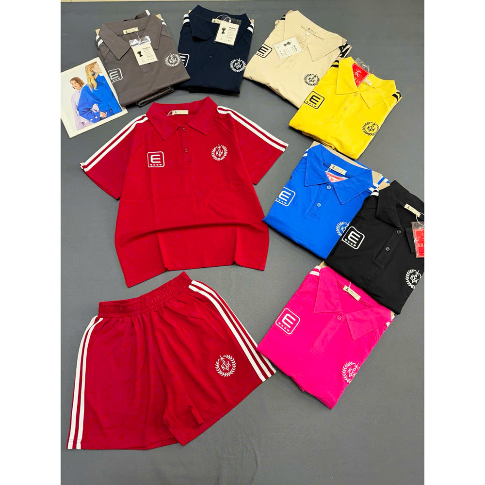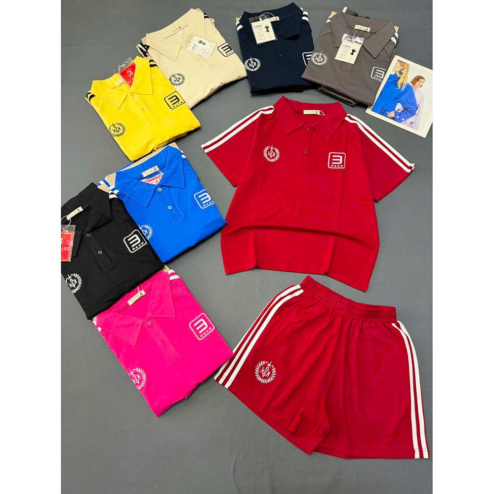 Chuyên sỉ đồ Bộ Nữ Áo Thun Có Cổ Tay Ngắn Quần Đùi Sọc Thể Thao Năng Động Size 45-62kg