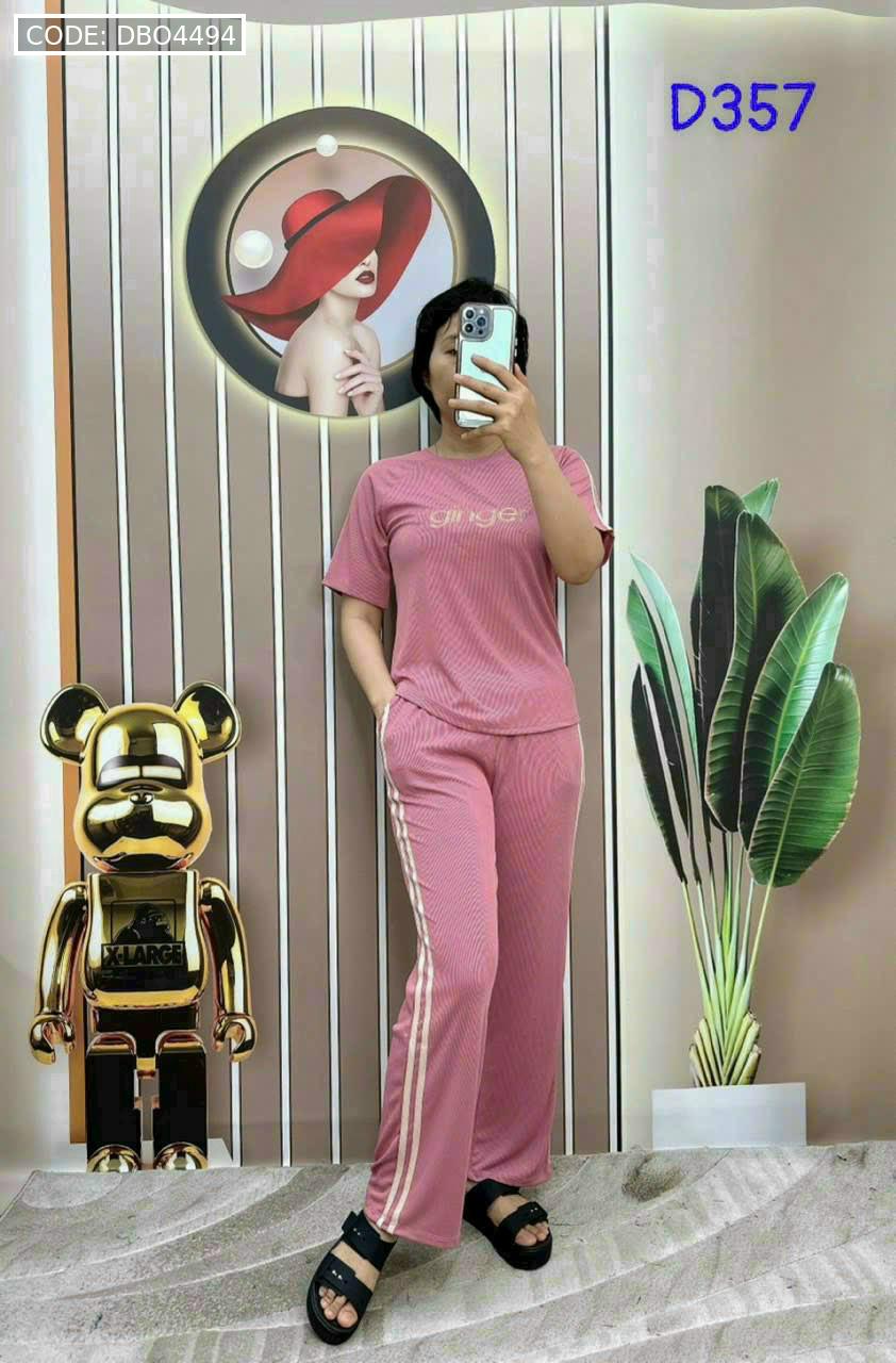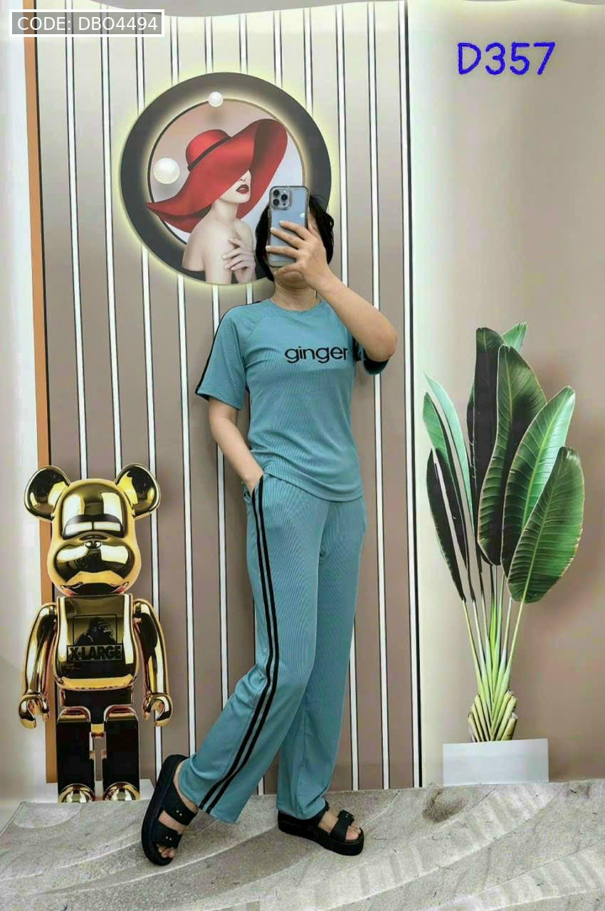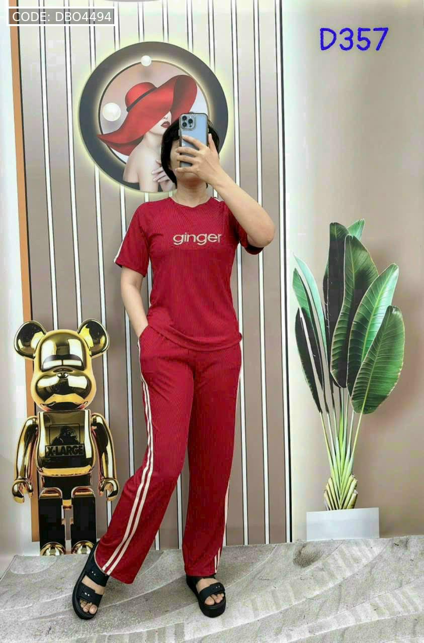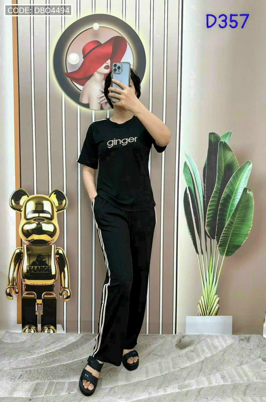 Chuyên sỉ đồ bộ quần dài áo tay ngắn quần viền 2 line in chữ ginger