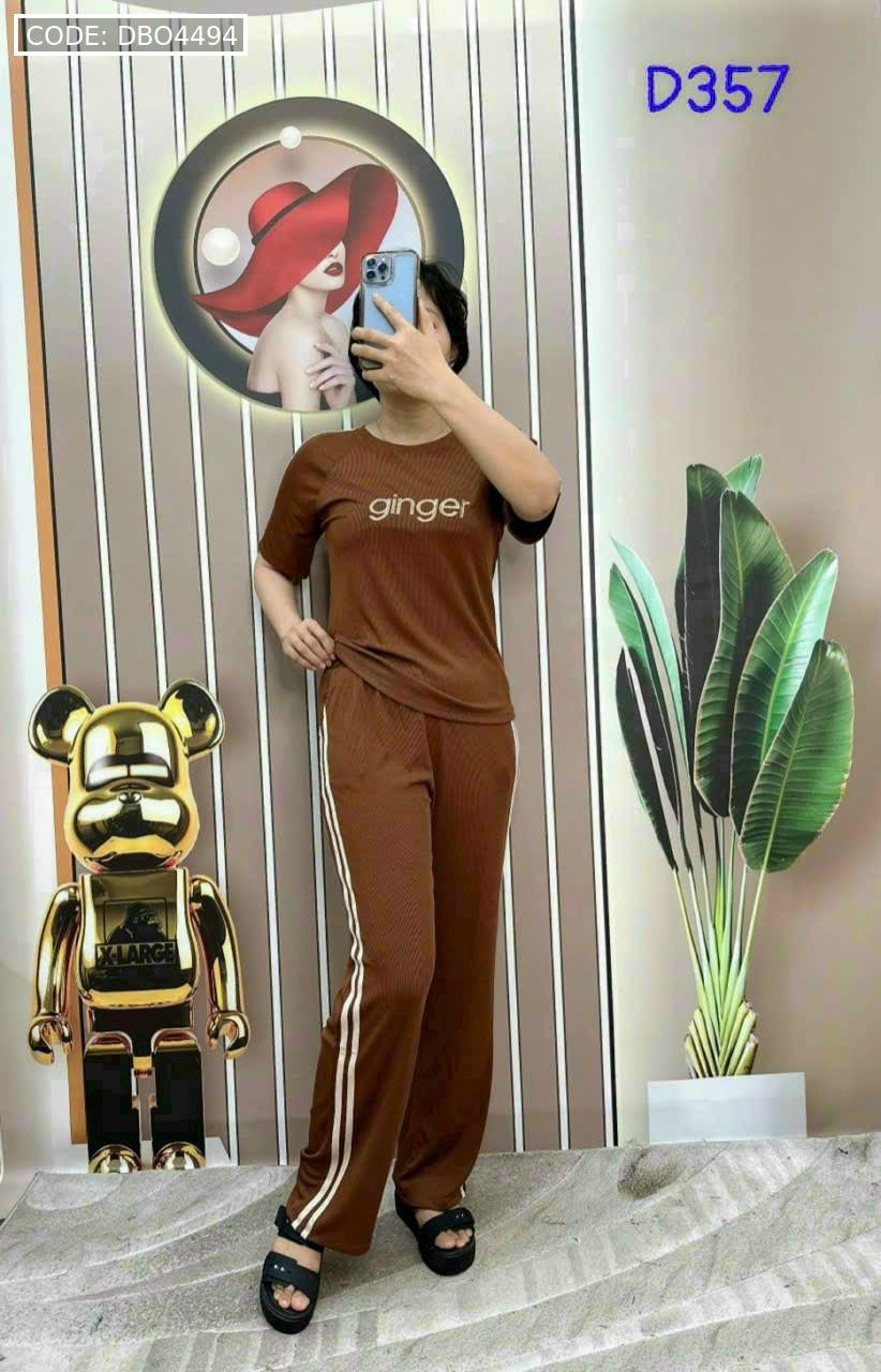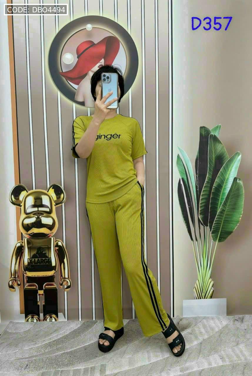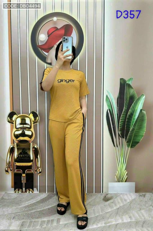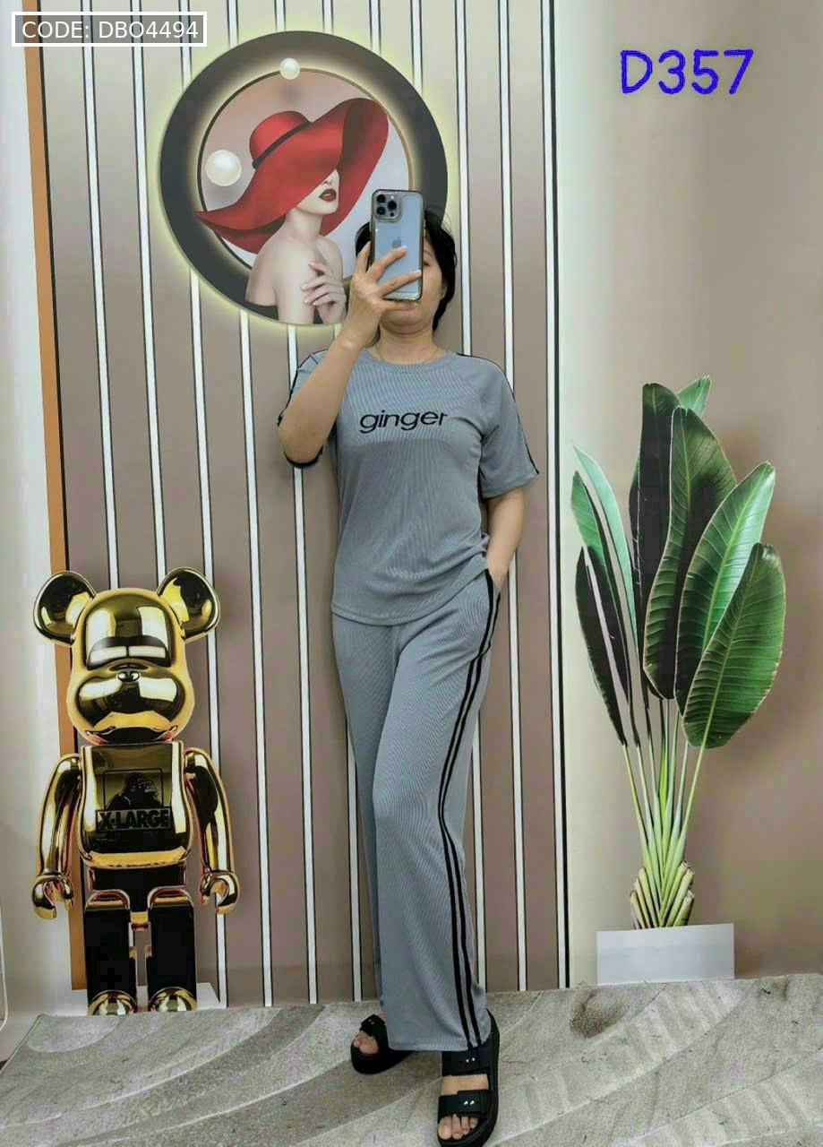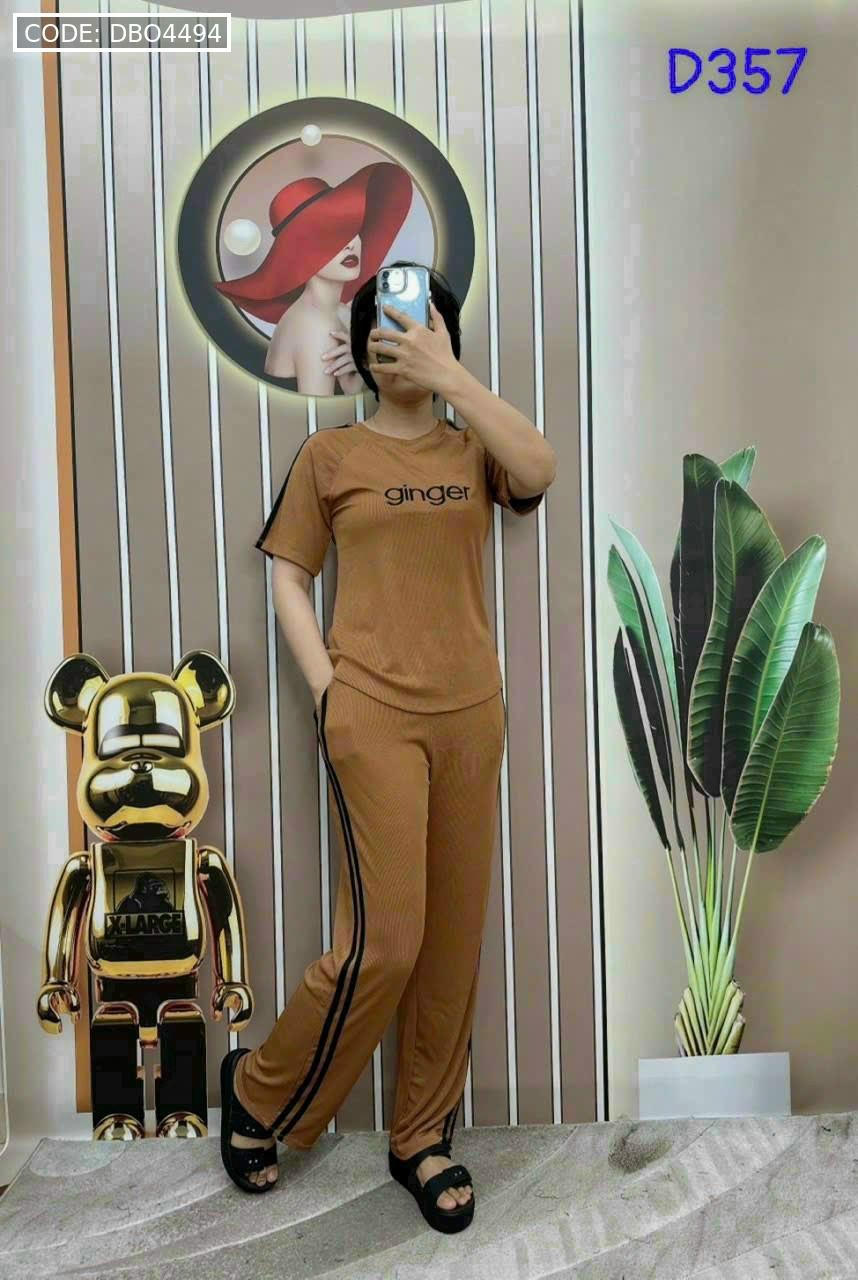 Chuyên sỉ đồ bộ quần dài áo tay ngắn quần viền 2 line in chữ ginger