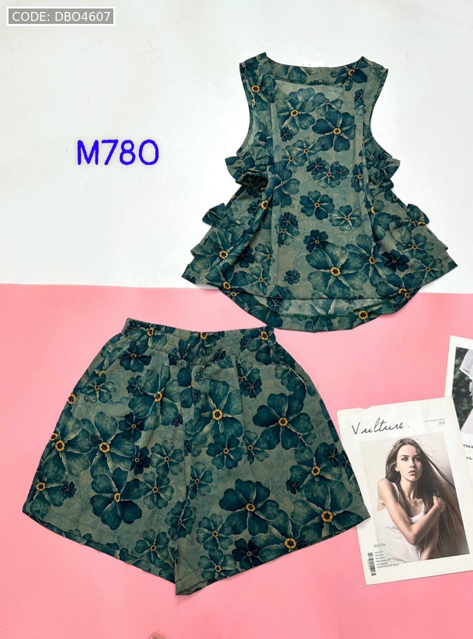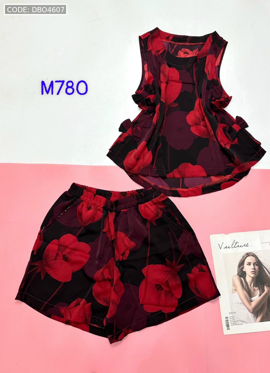 Chuyên sỉ đồ bộ quần đùi áo ba lỗ có 4 nơ hông áo in nhiều hoạ tiết