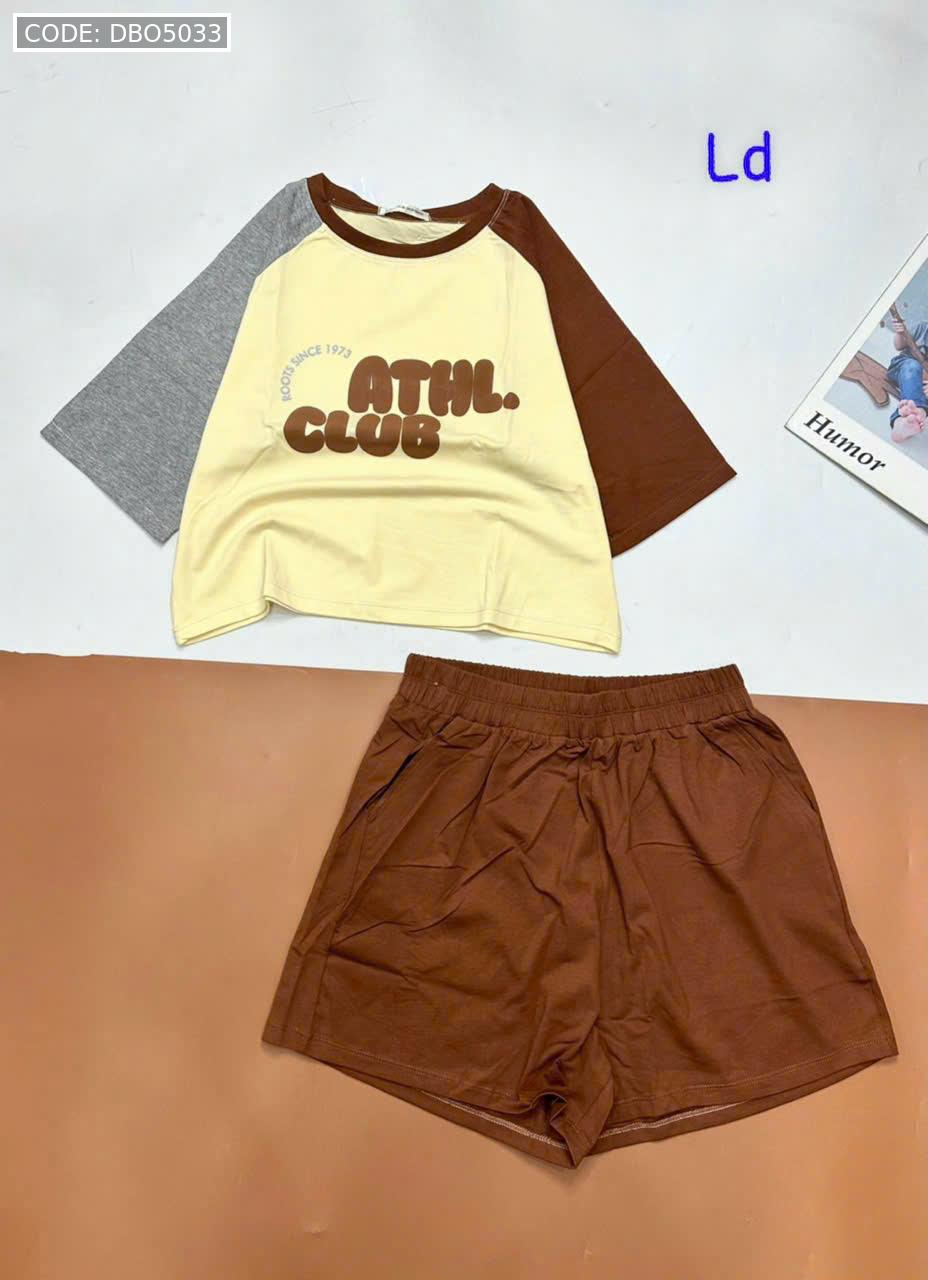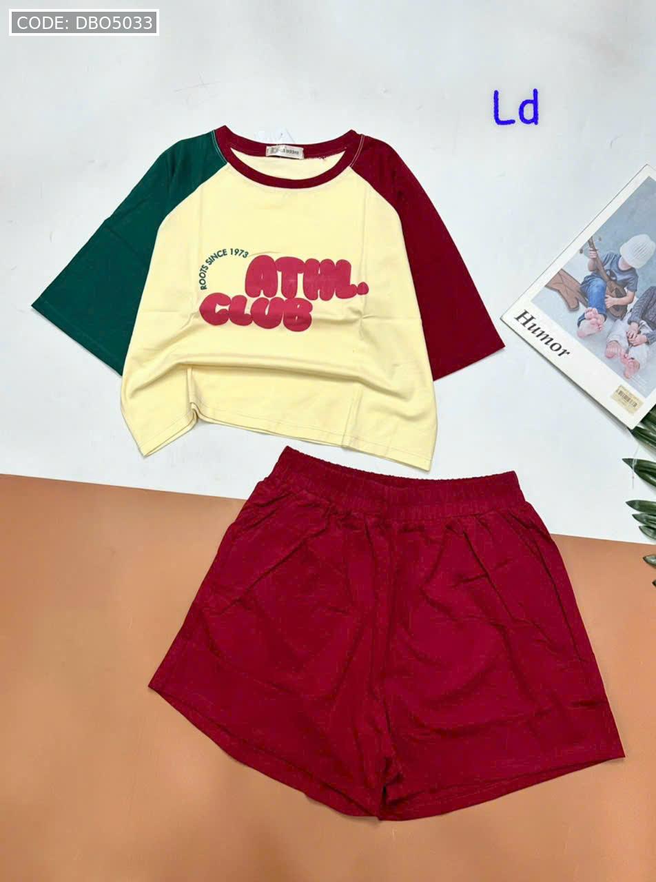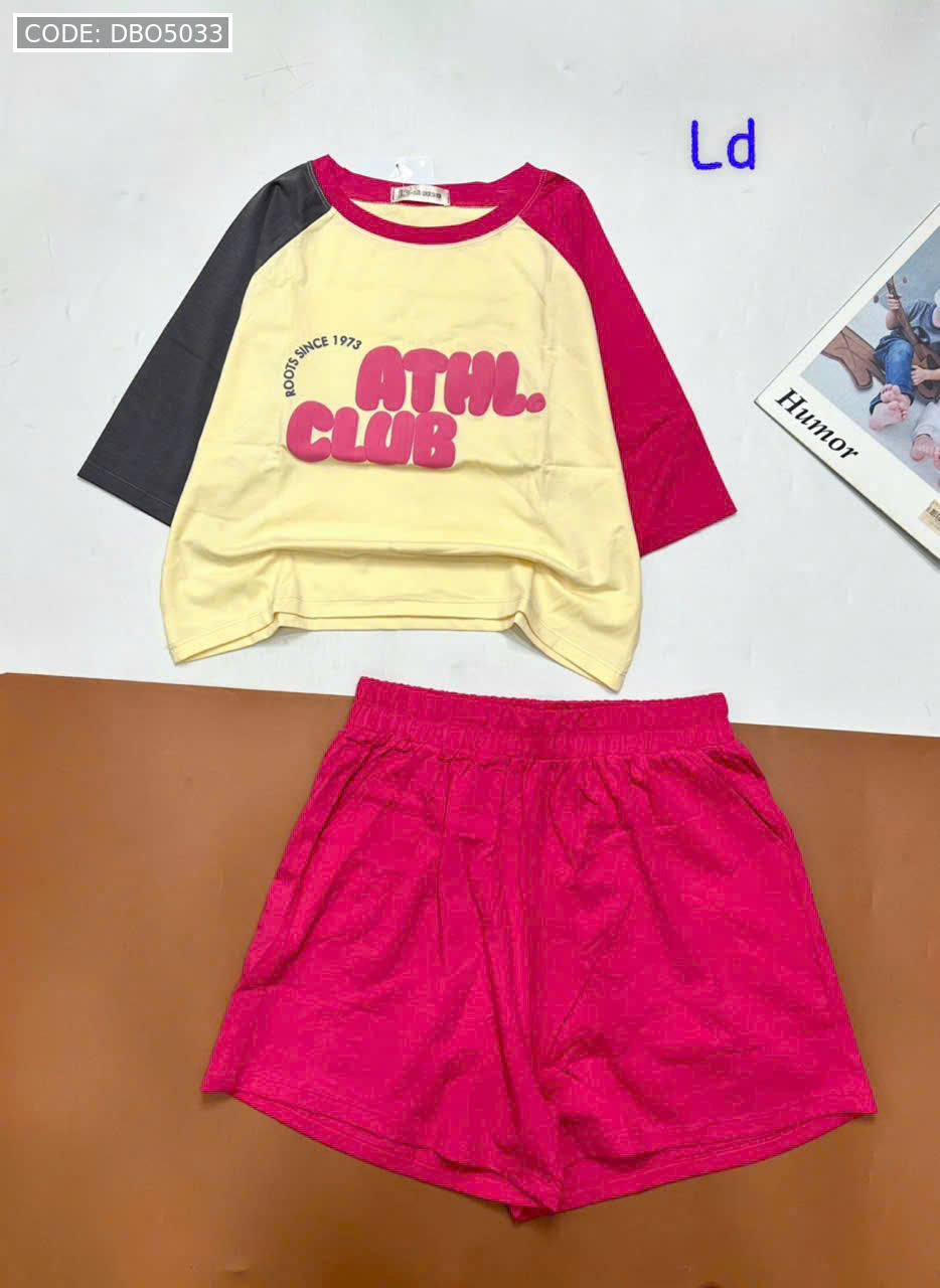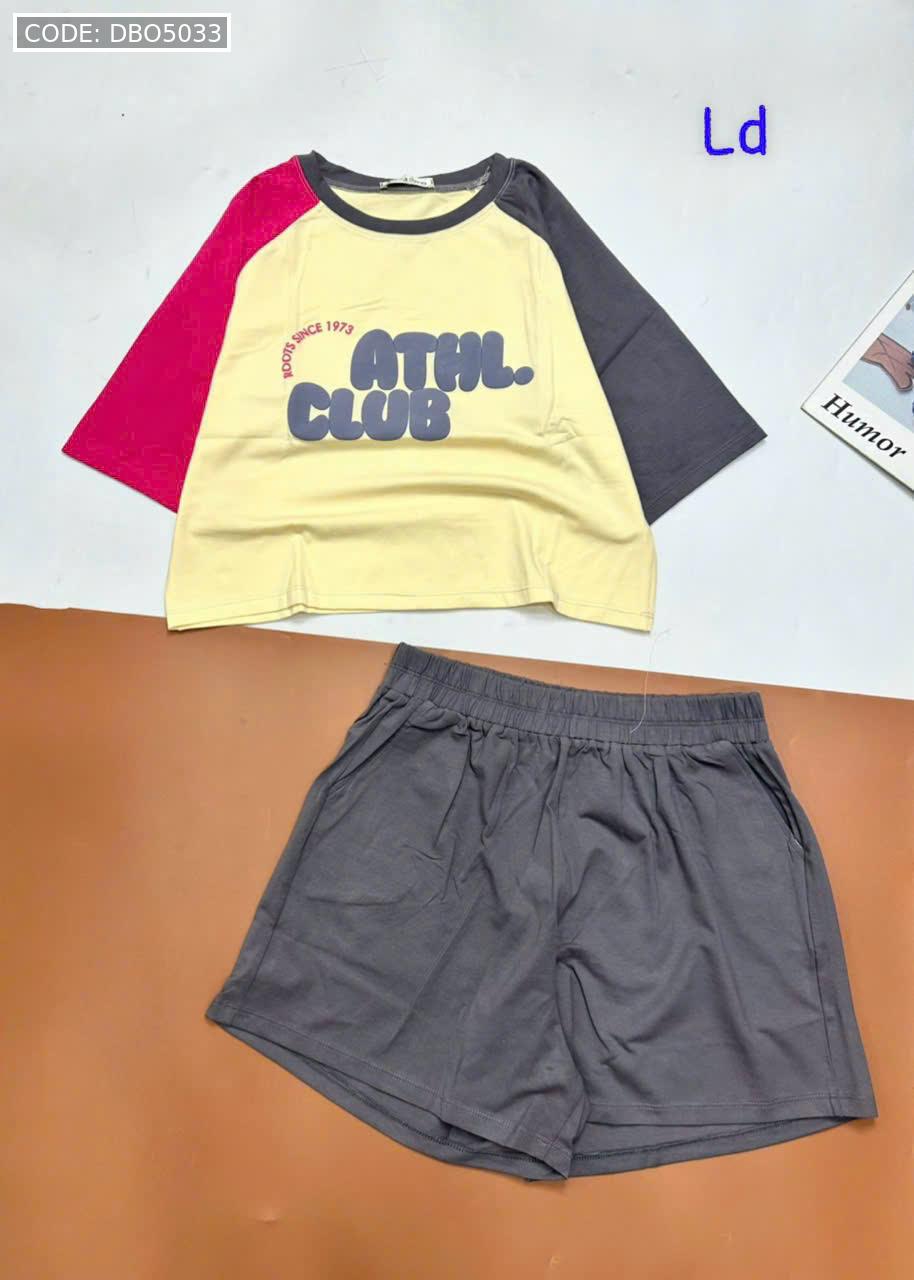 Chuyên sỉ đồ bộ quần đùi áo crop top tay ngắn in chữ club