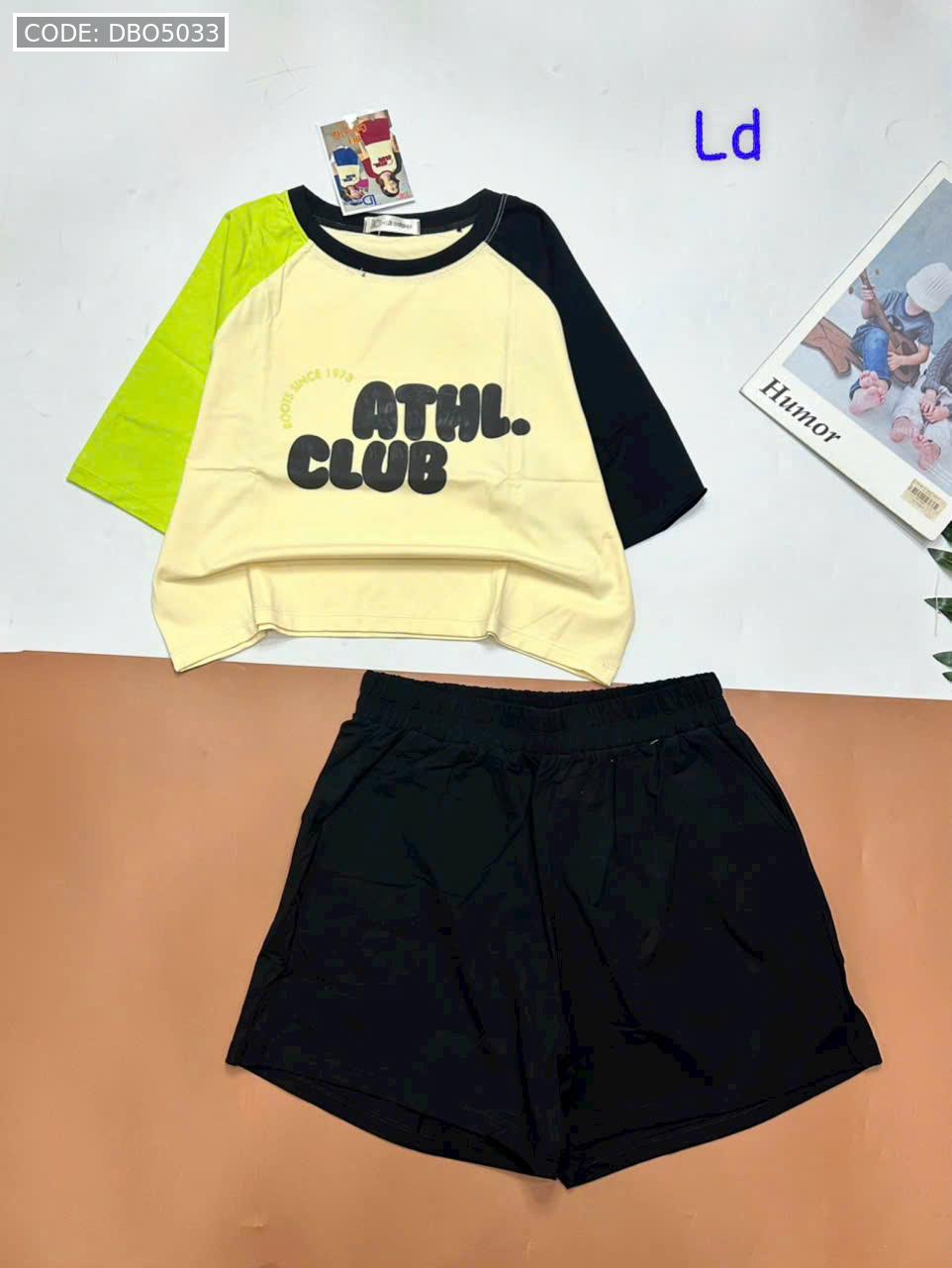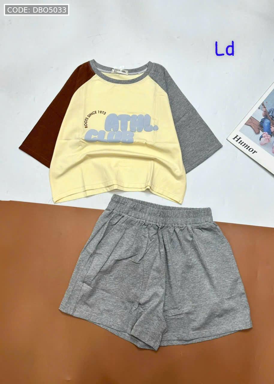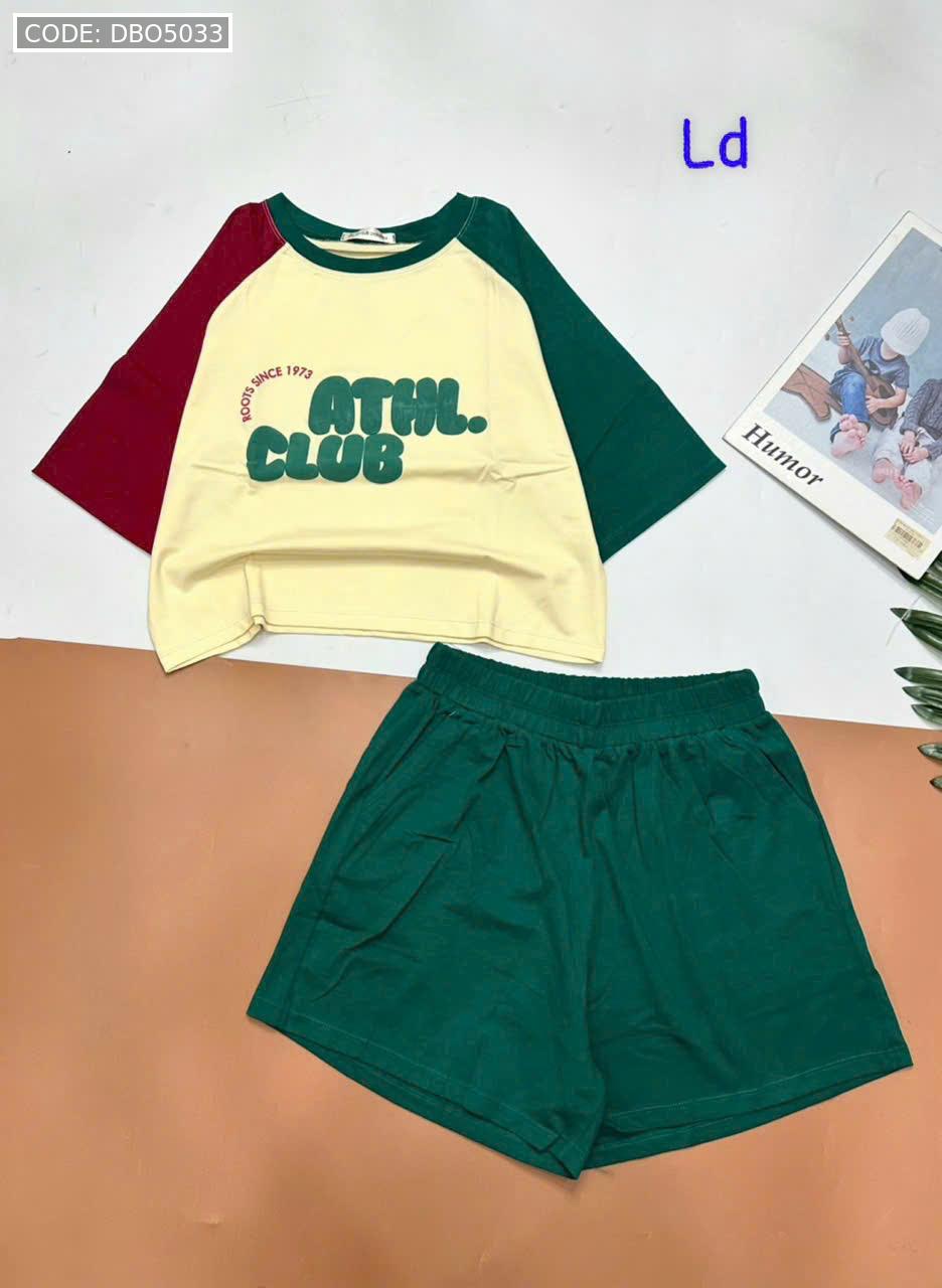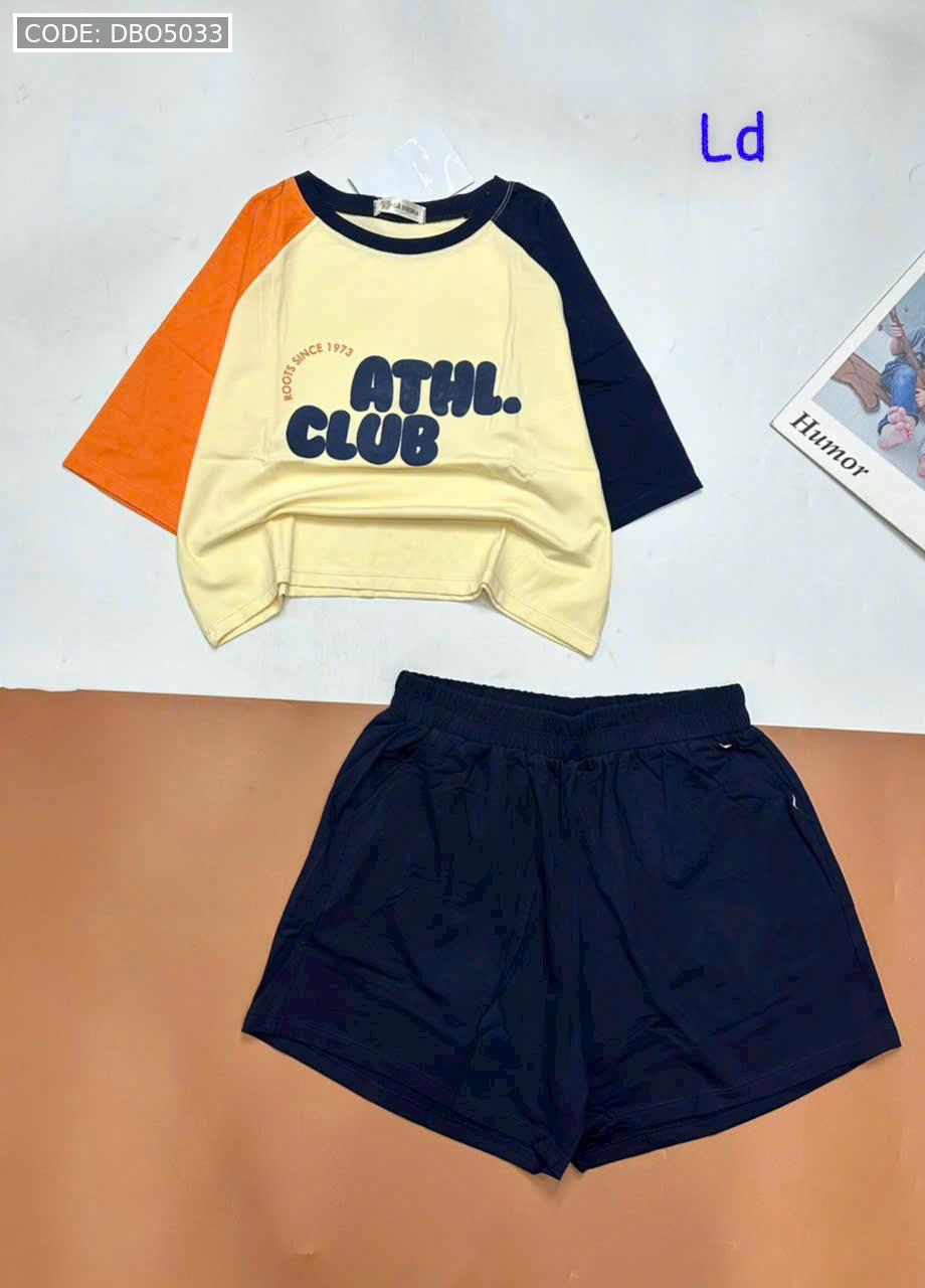 Chuyên sỉ đồ bộ quần đùi áo crop top tay ngắn in chữ club