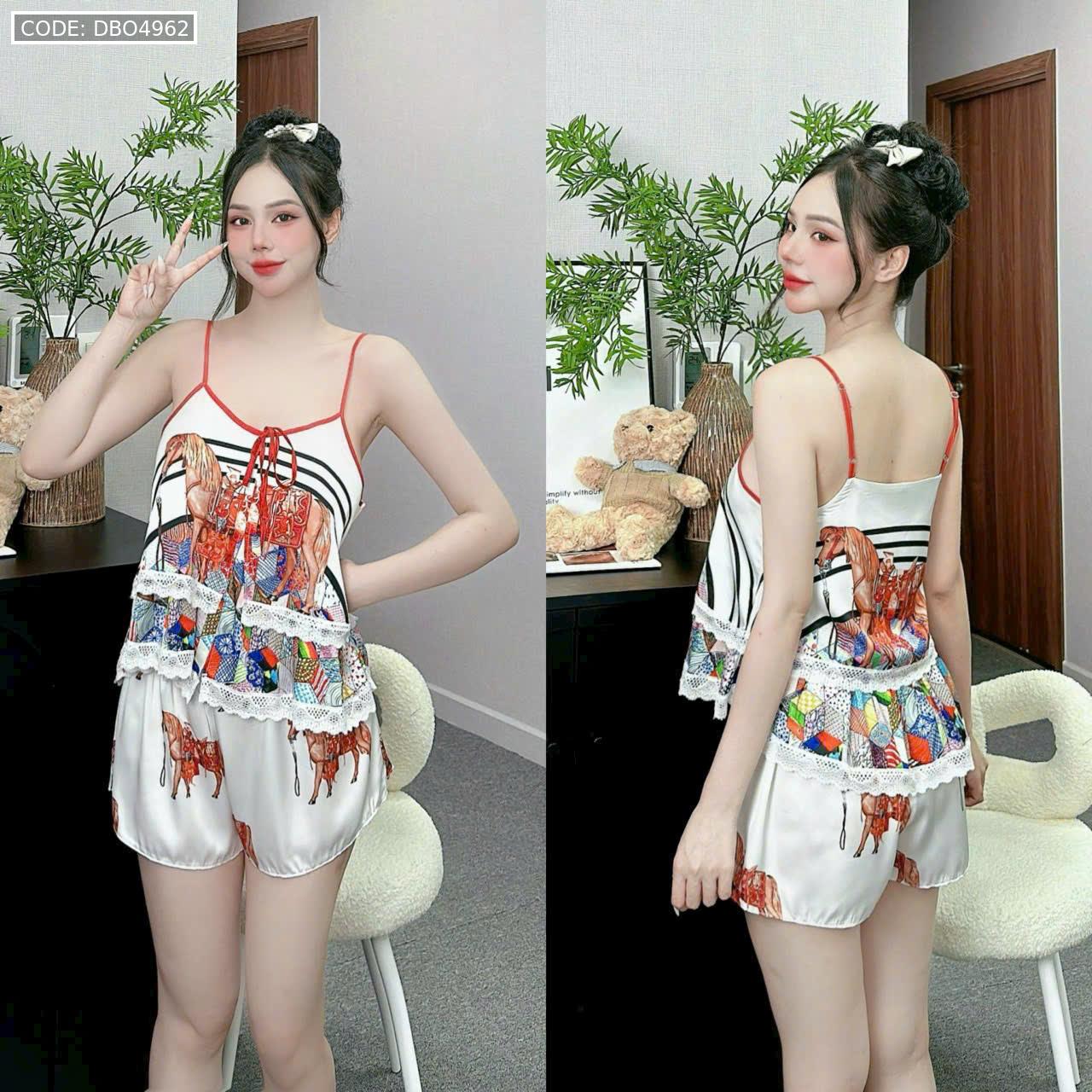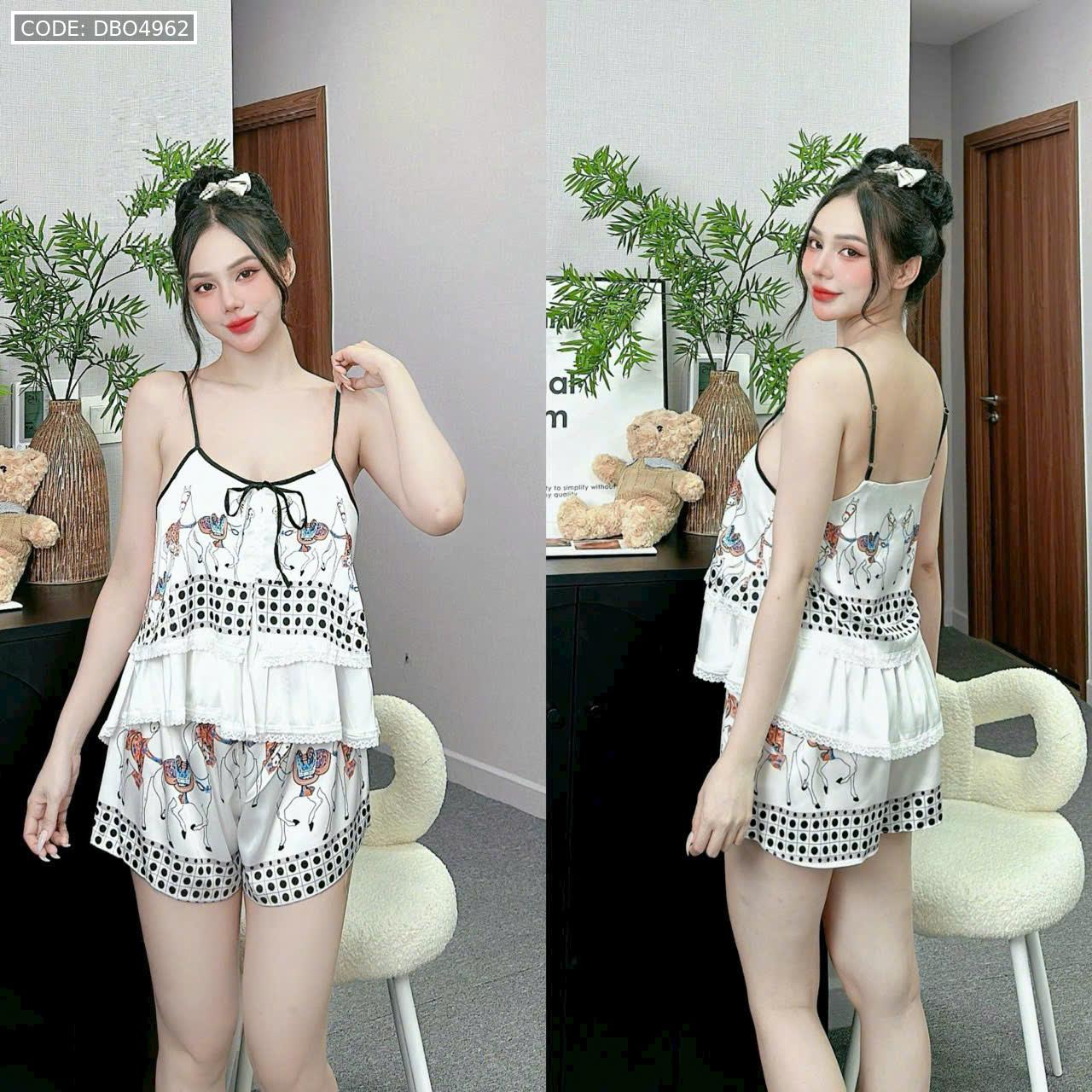 Chuyên sỉ đồ bộ quần đùi áo hai dây tầng ren nhiều hoạ tiết