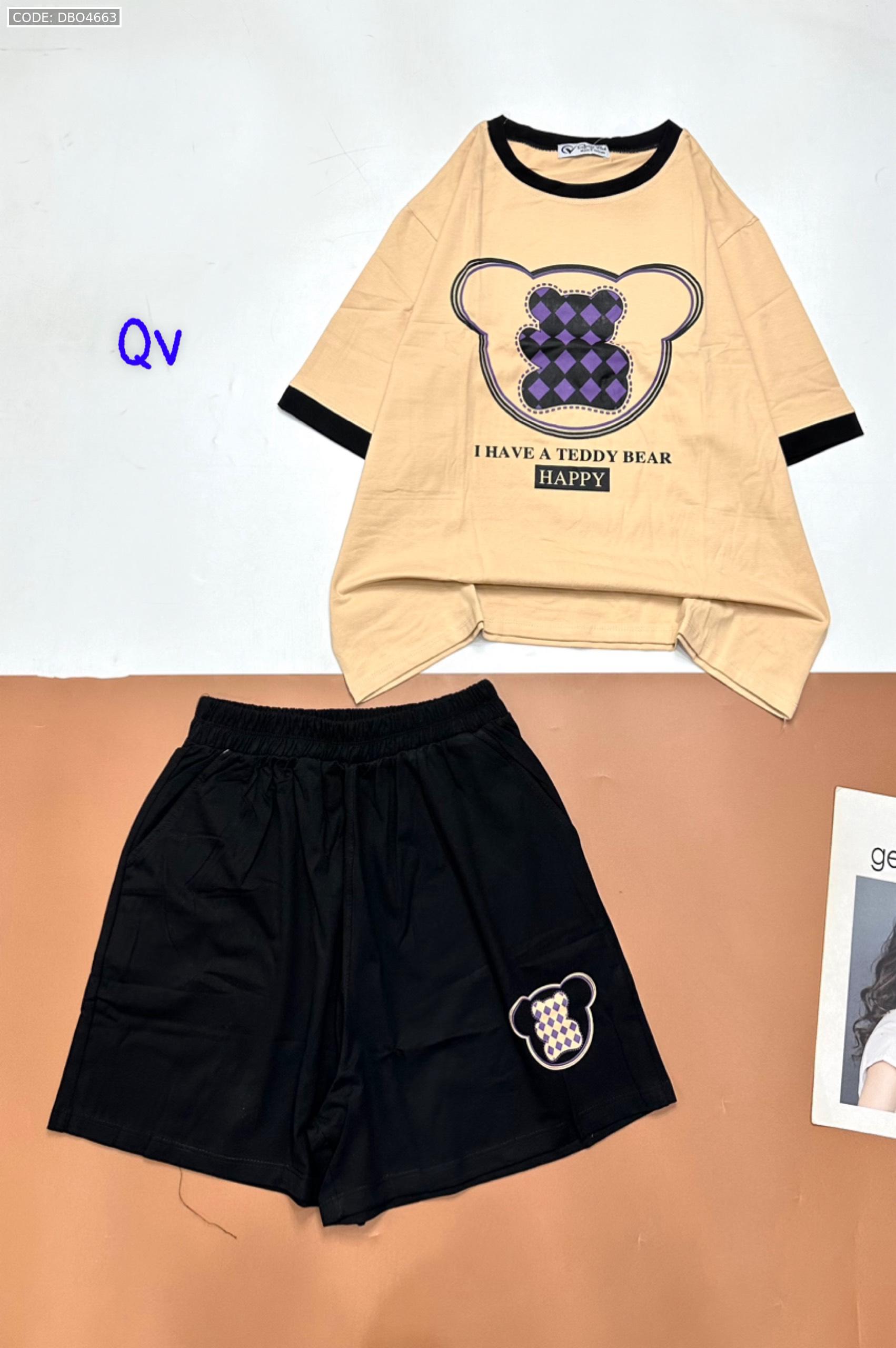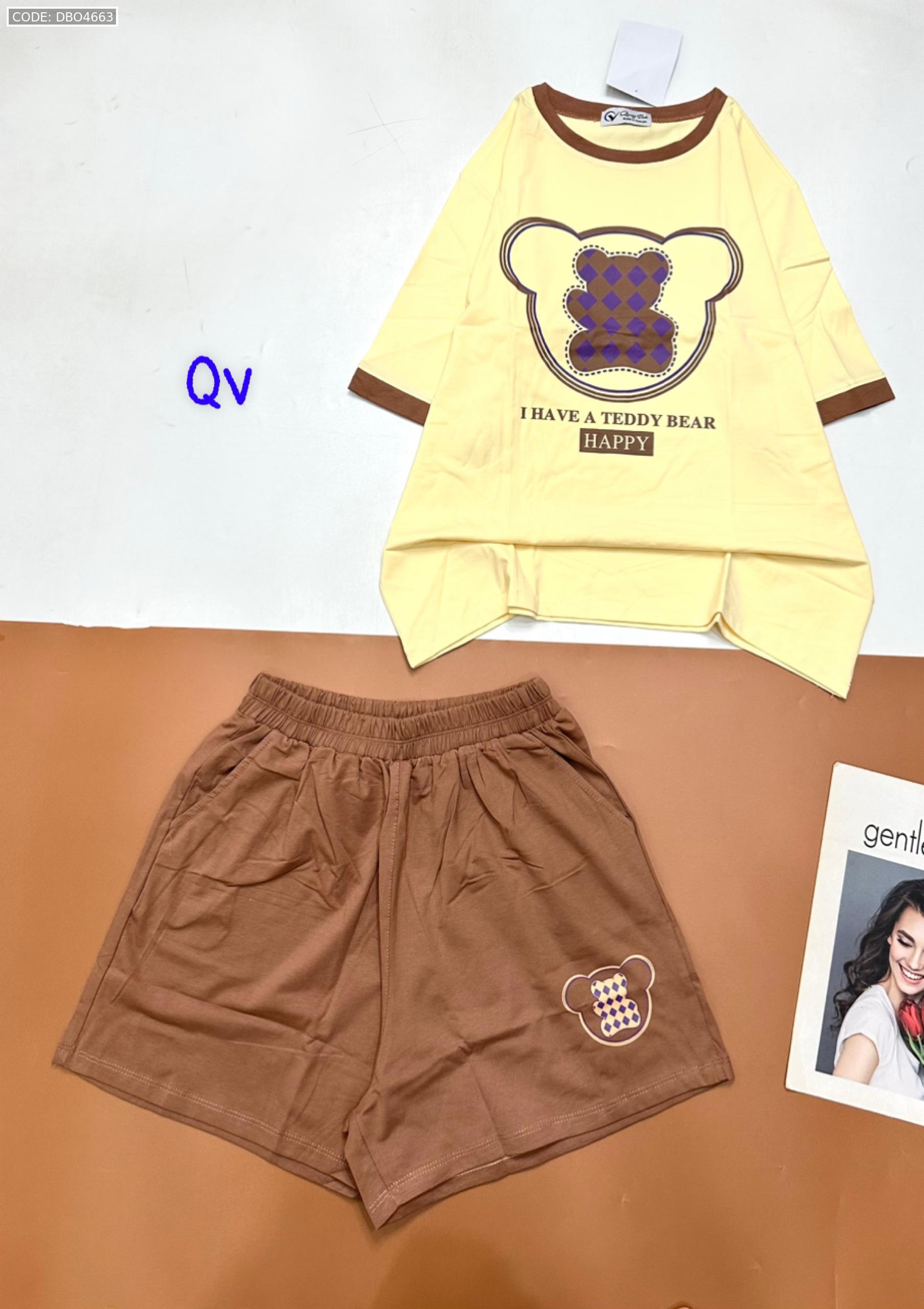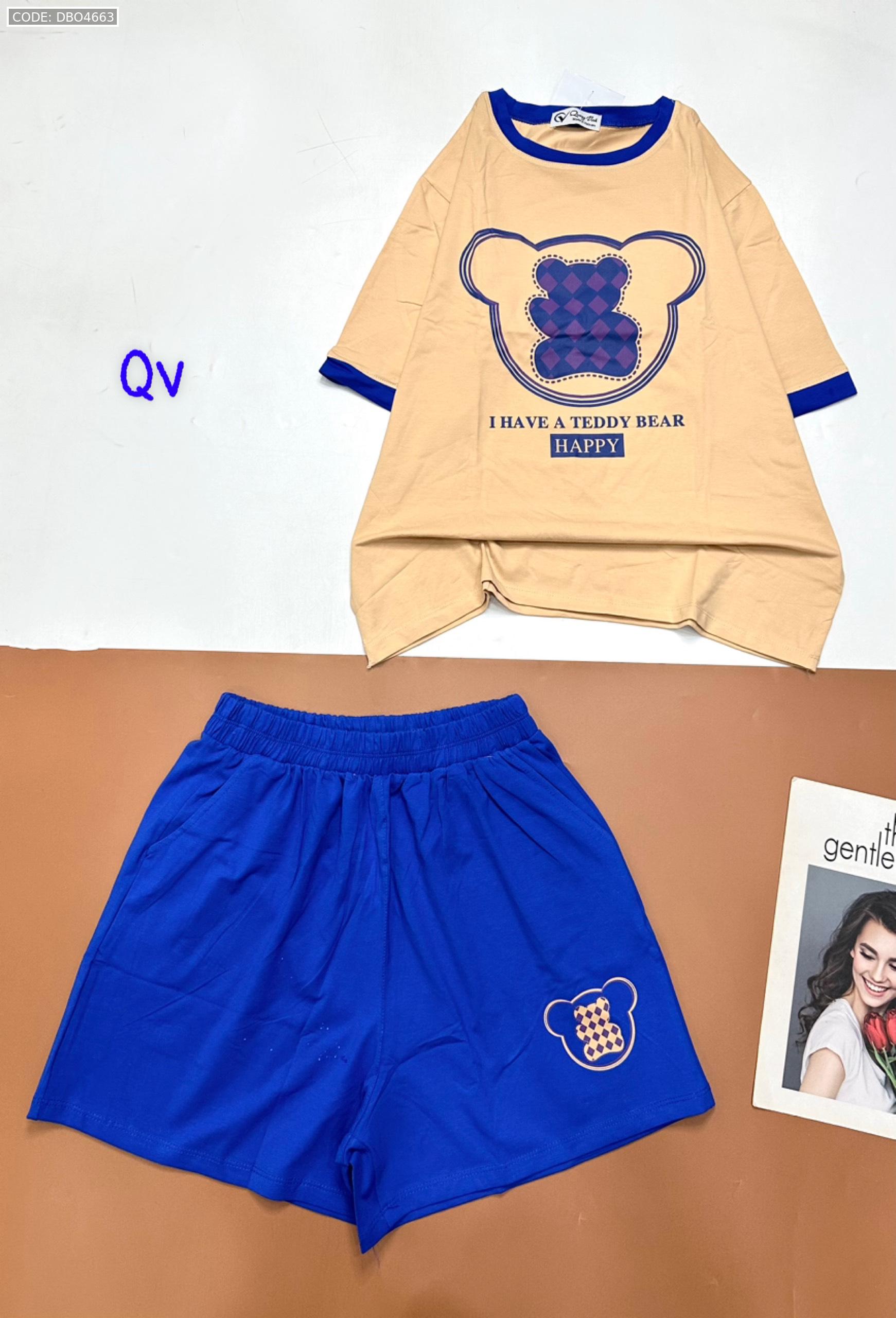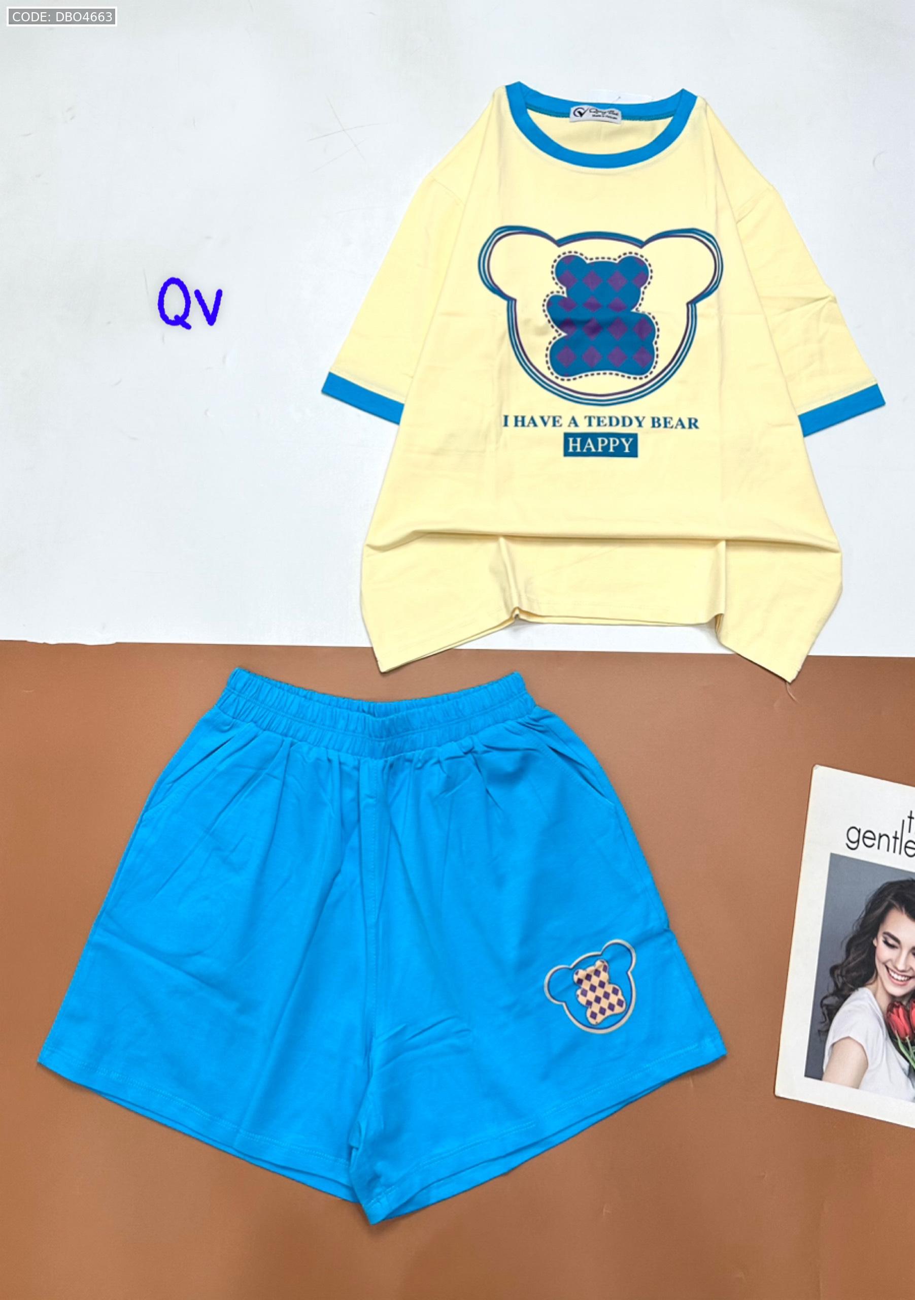 Chuyên sỉ đồ bộ quần đùi áo tay ngắn in gấu quần cùng màu viền áo