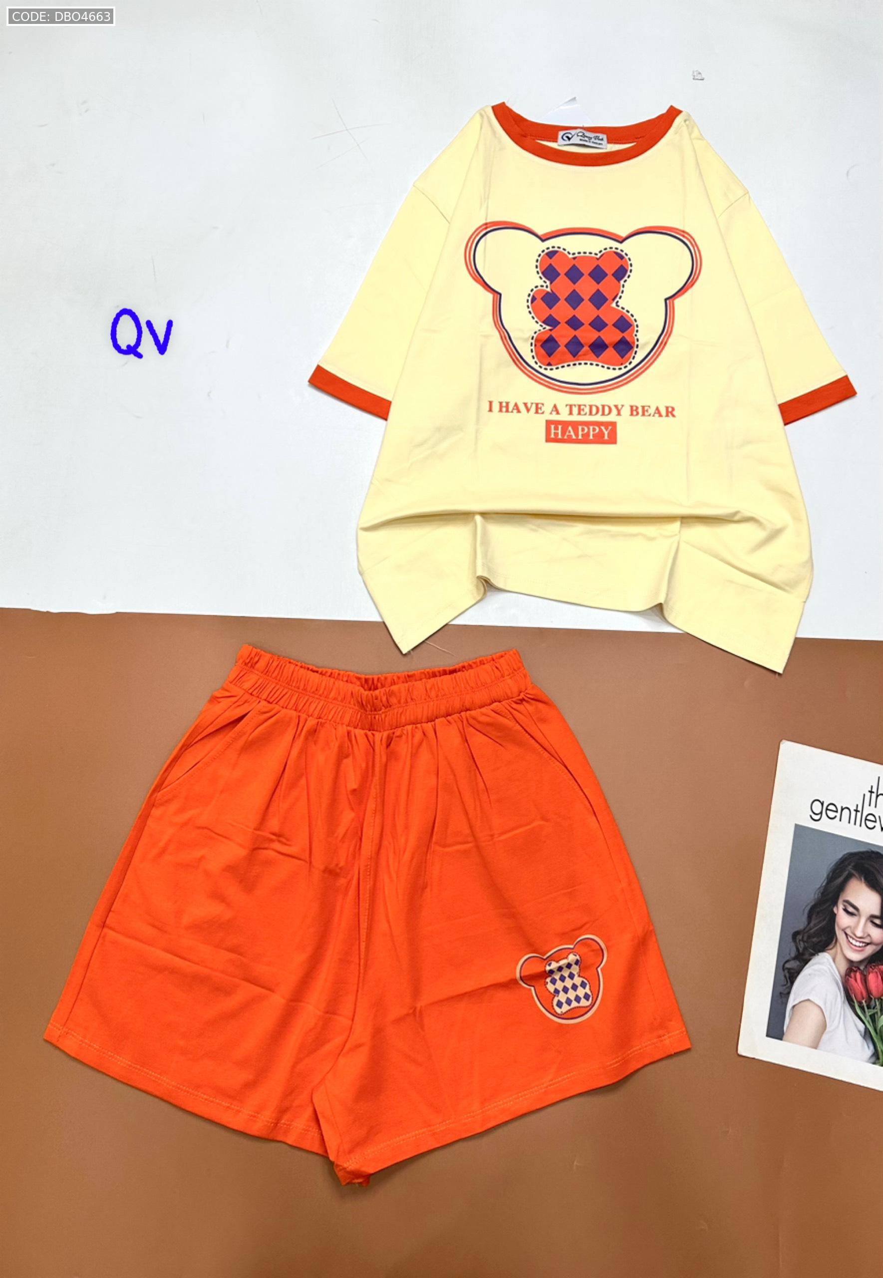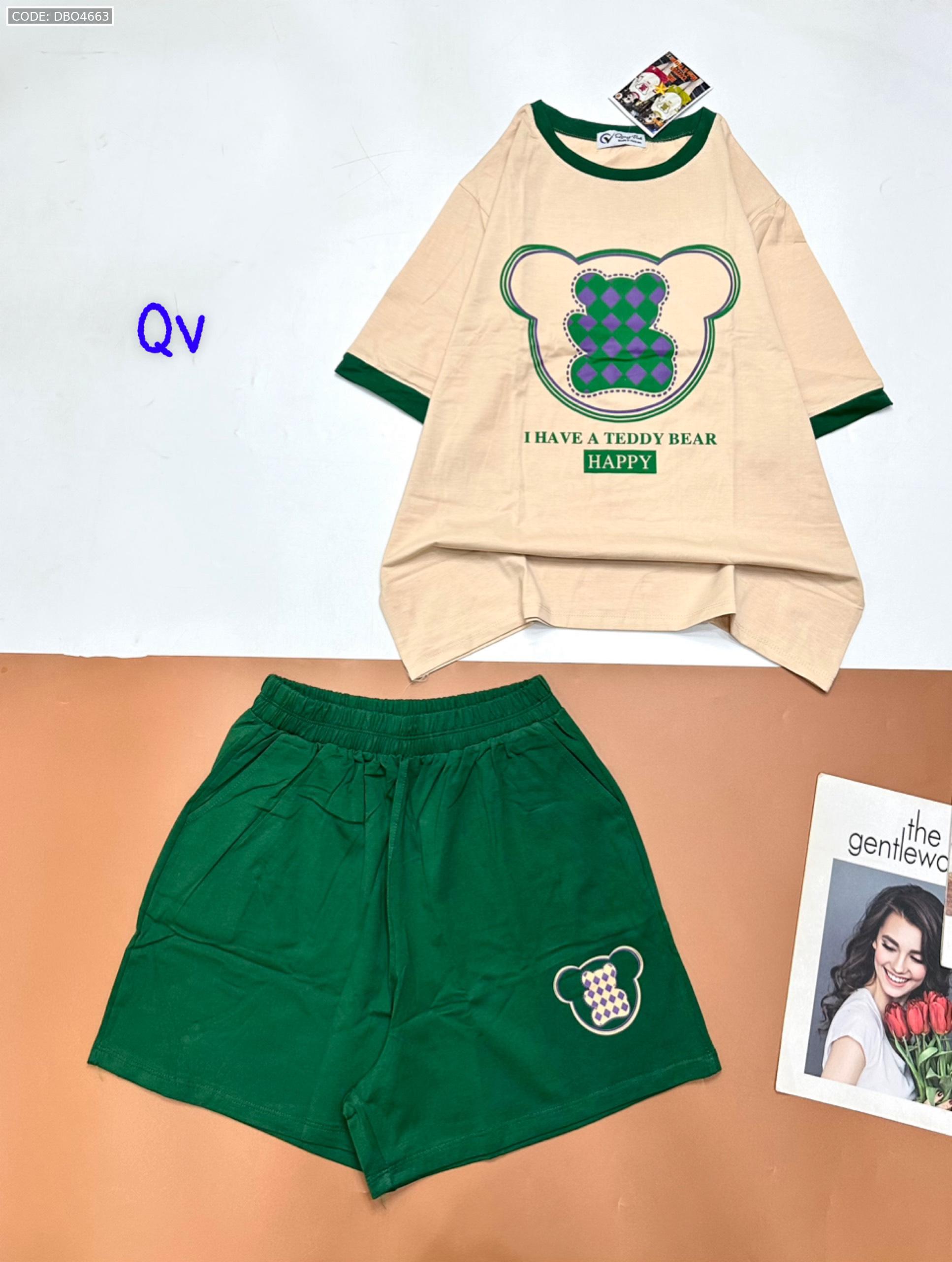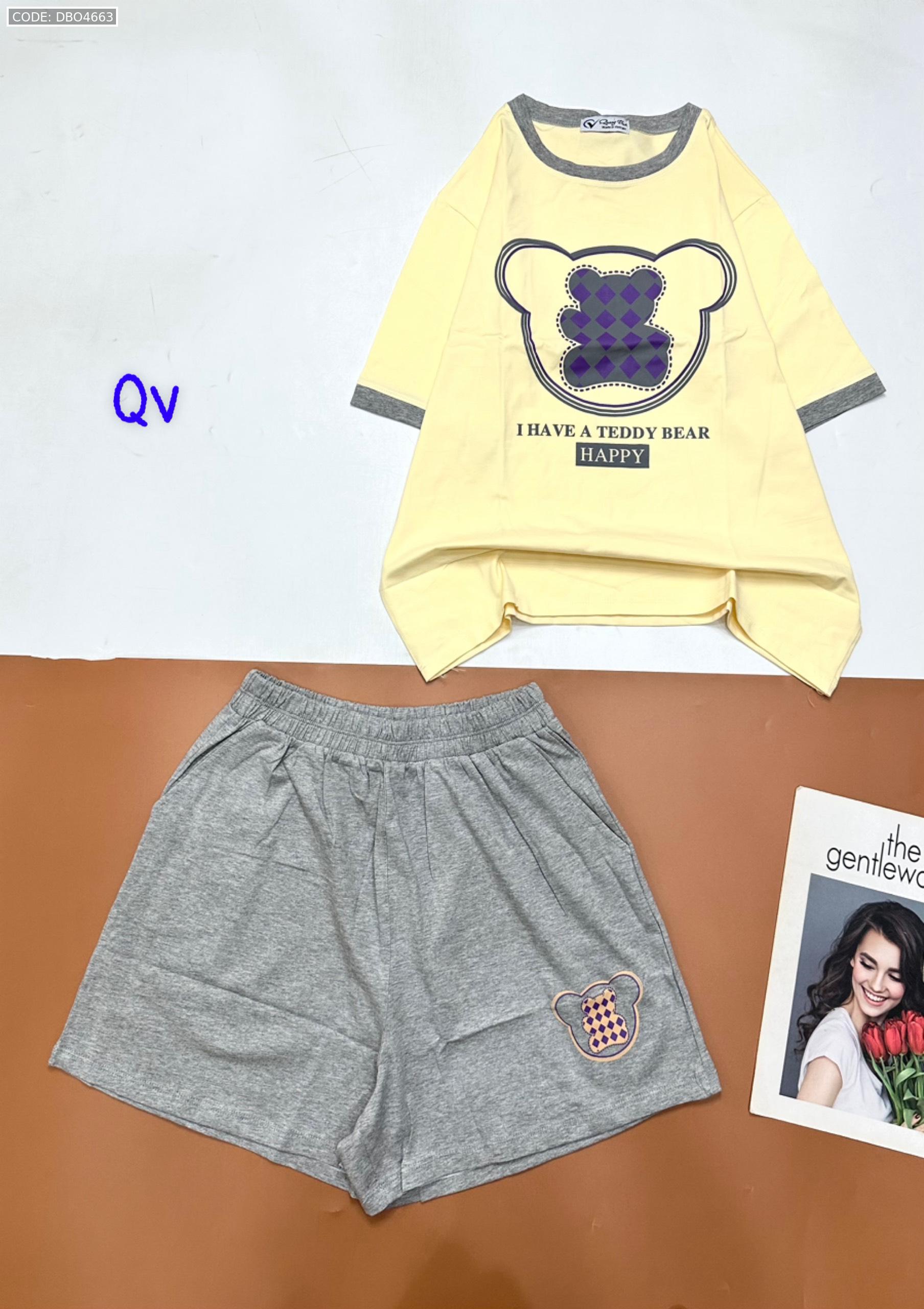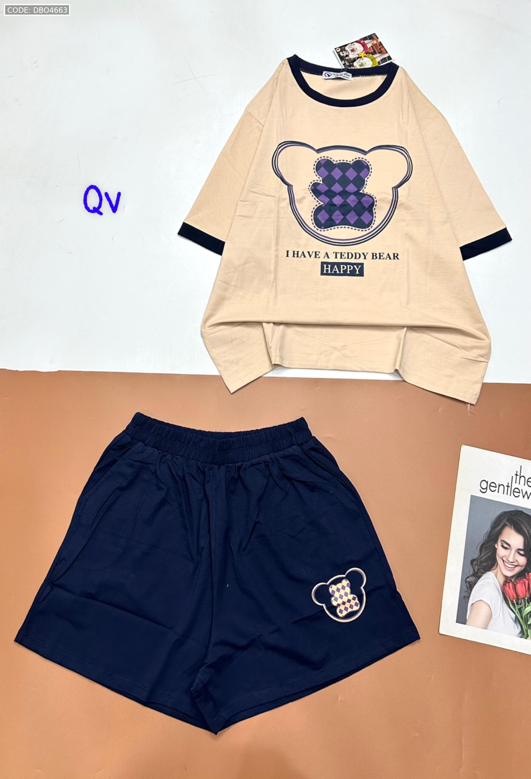 Chuyên sỉ đồ bộ quần đùi áo tay ngắn in gấu quần cùng màu viền áo