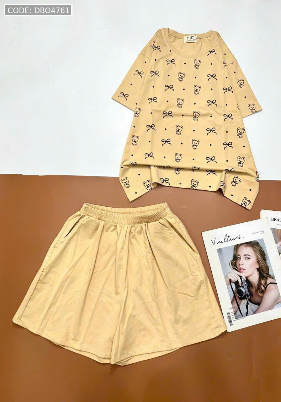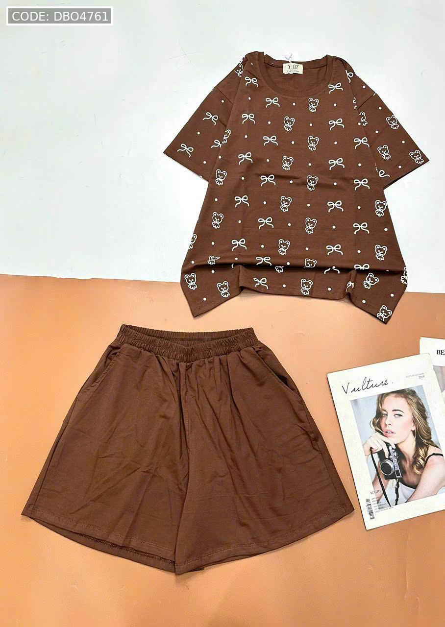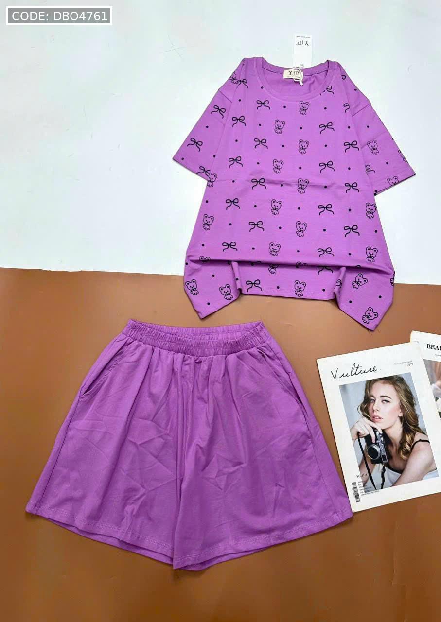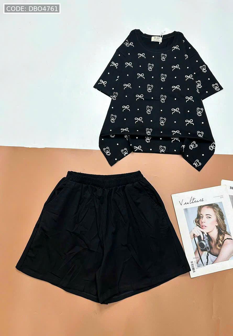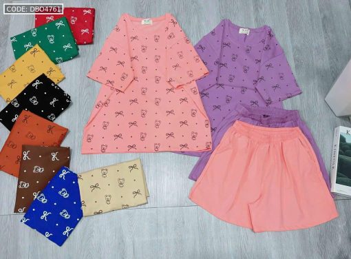 Chuyên sỉ đồ bộ quần đùi áo tay ngắn in nhiều nơ và chữ
