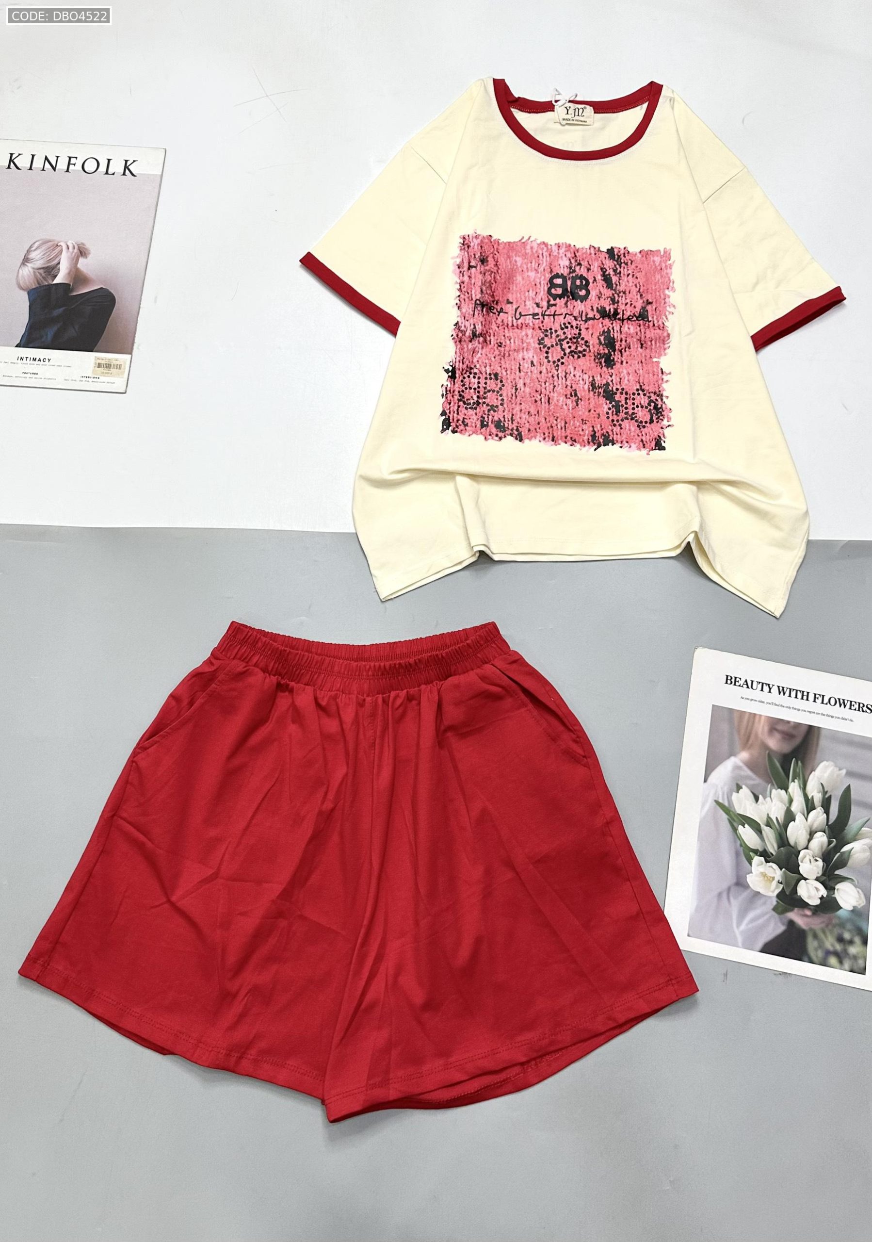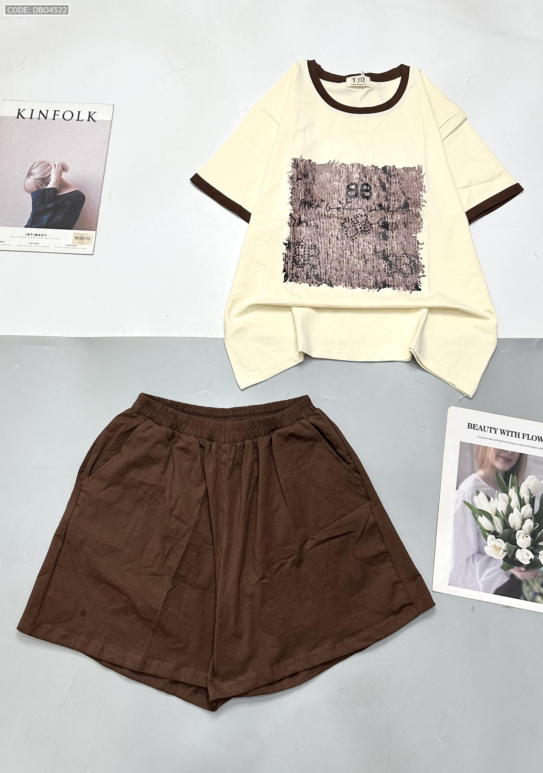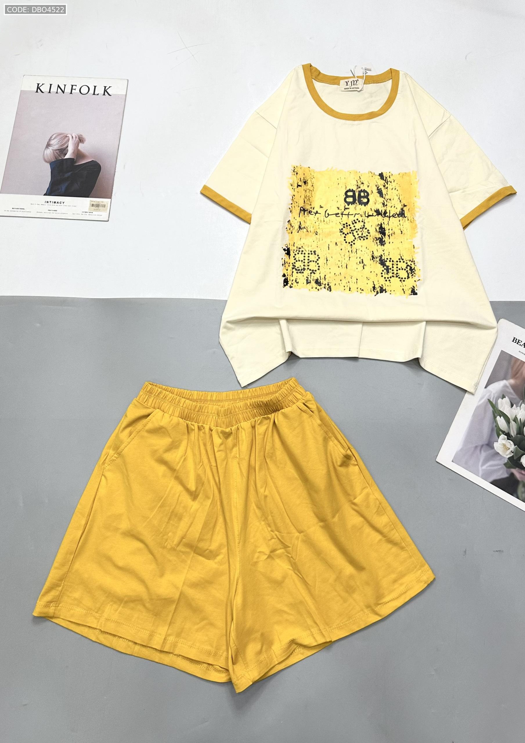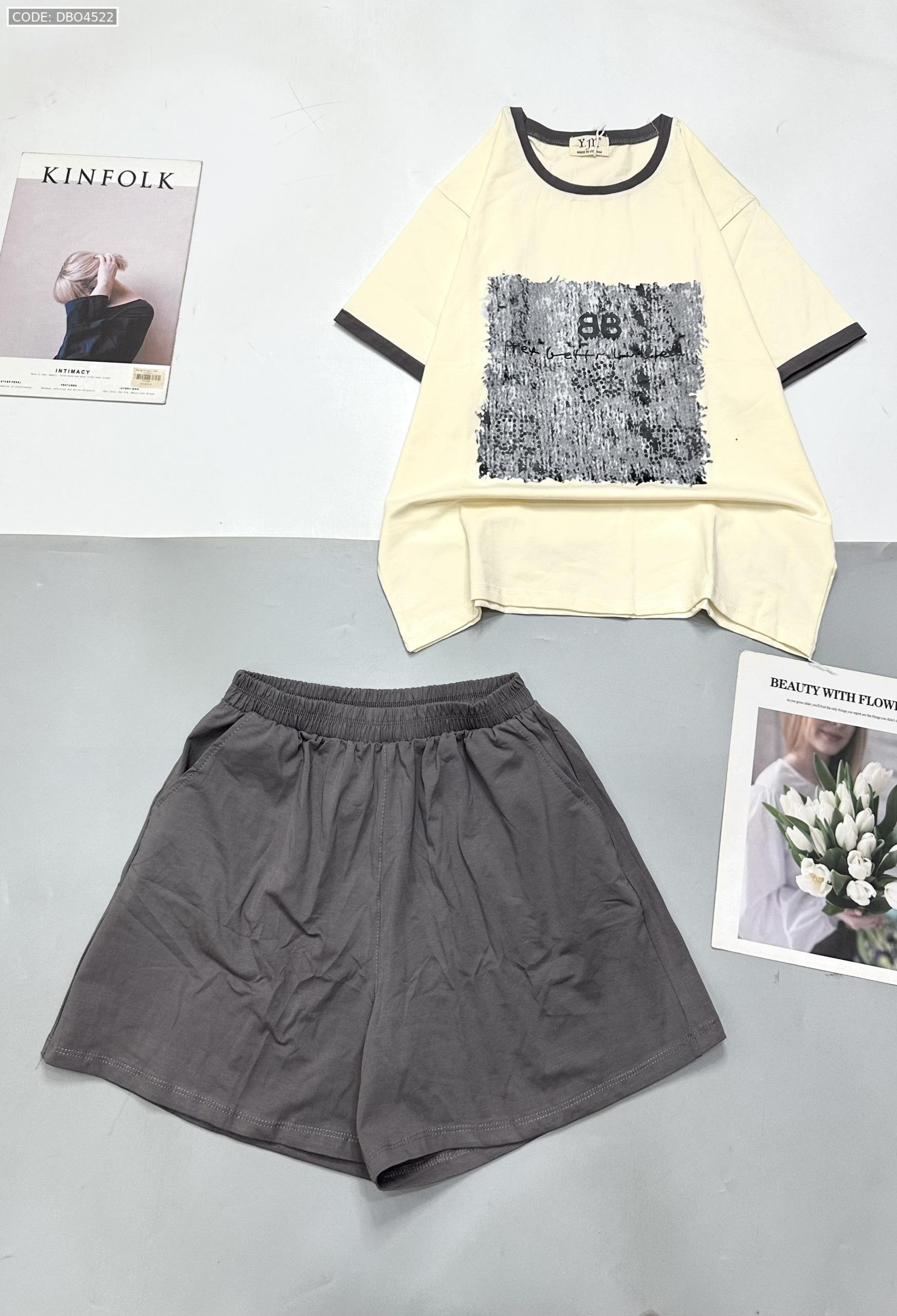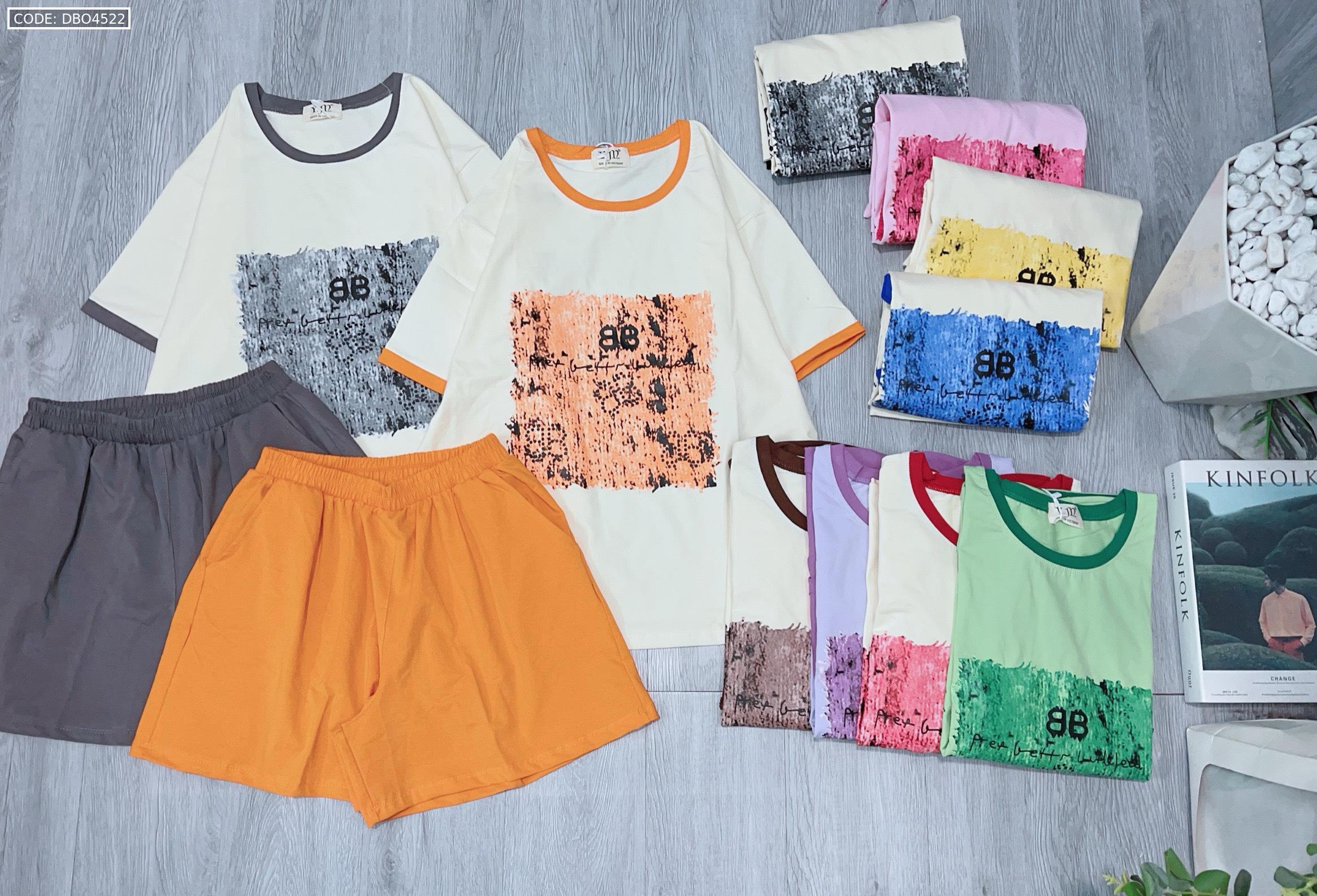 Chuyên sỉ đồ bộ quần đùi màu của viền áo tay ngắn bảng màu vuông trên áo