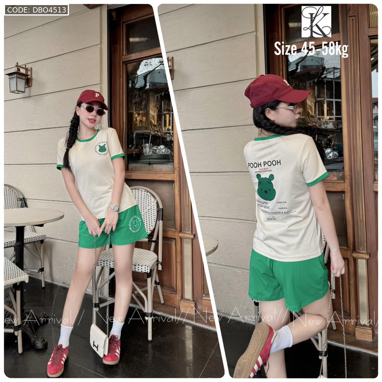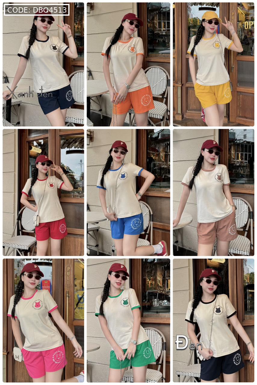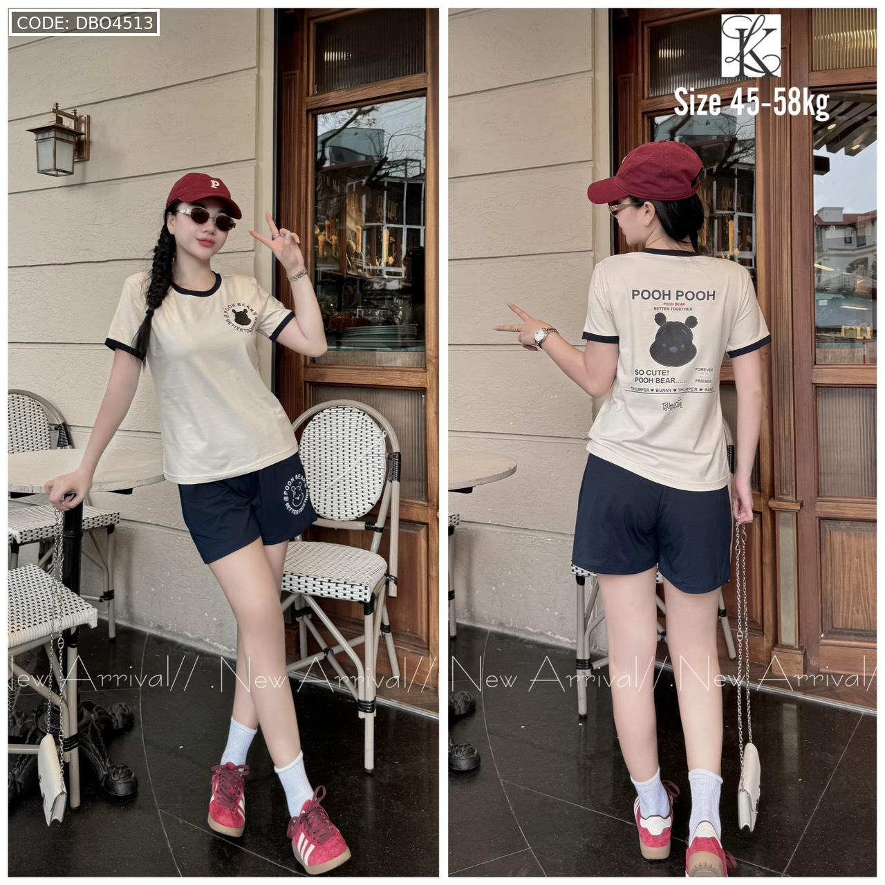 Chuyên sỉ đồ bộ quần đùi màu của viền áo tay ngắn in chữ pooh pooh gấu