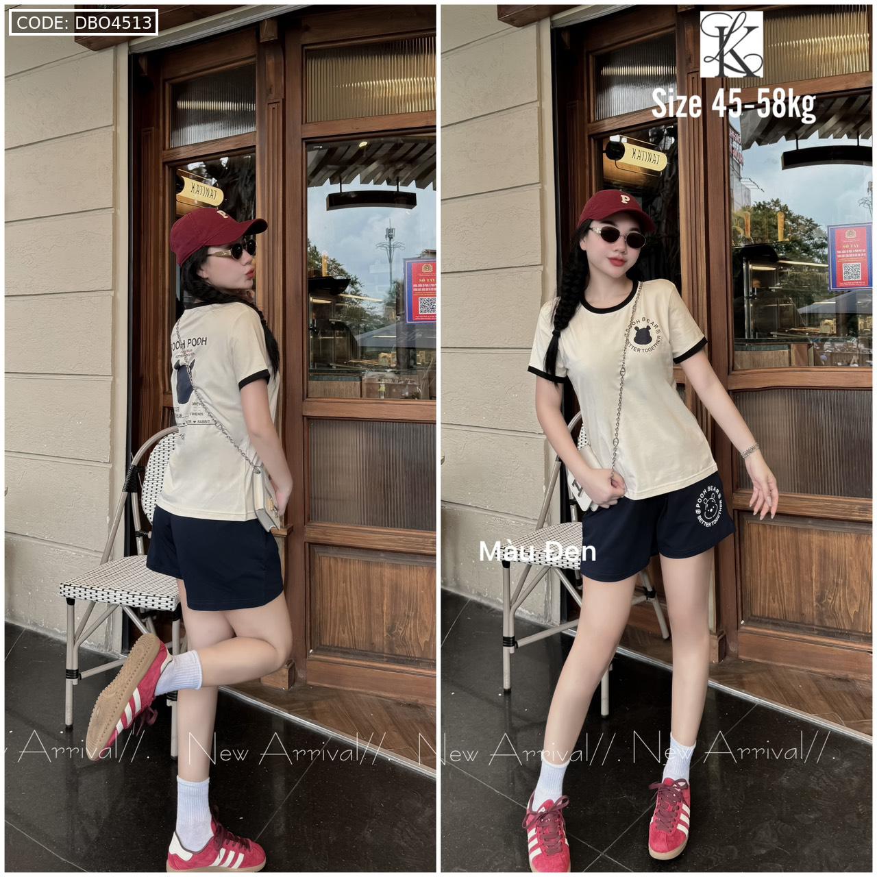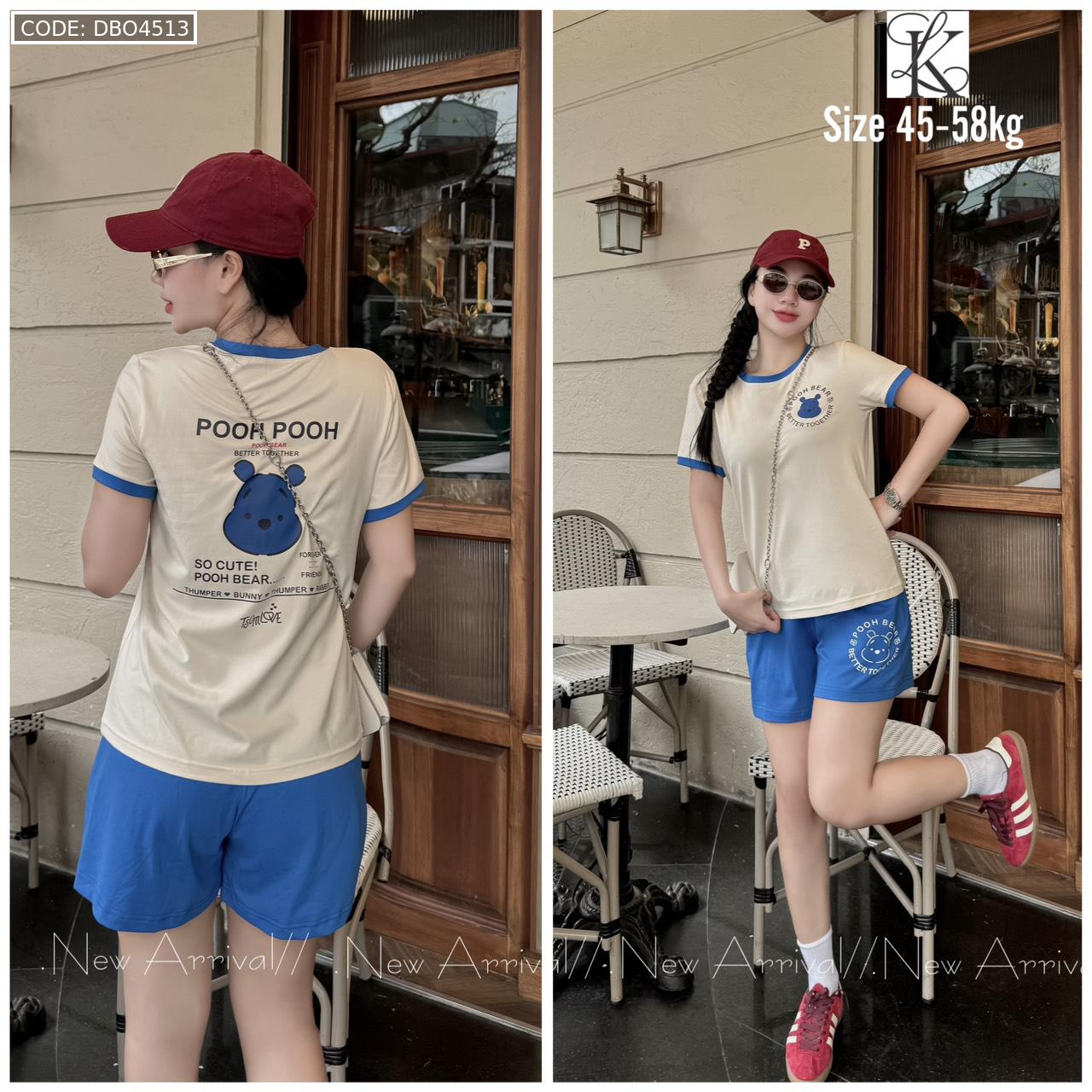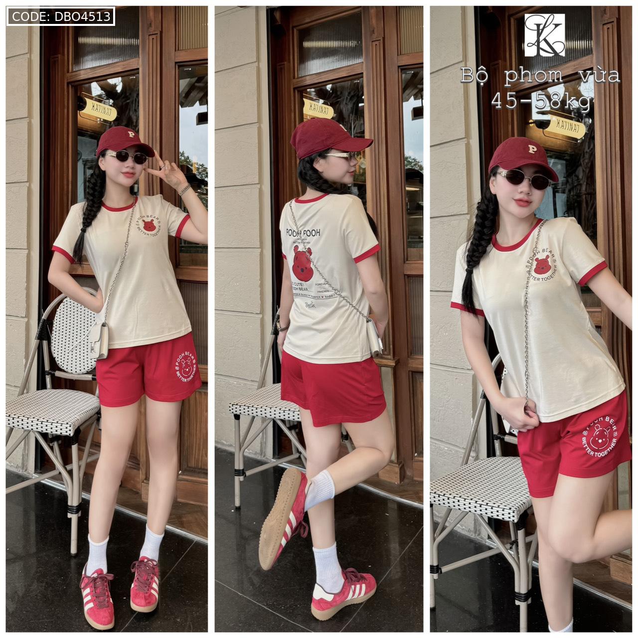 Chuyên sỉ đồ bộ quần đùi màu của viền áo tay ngắn in chữ pooh pooh gấu