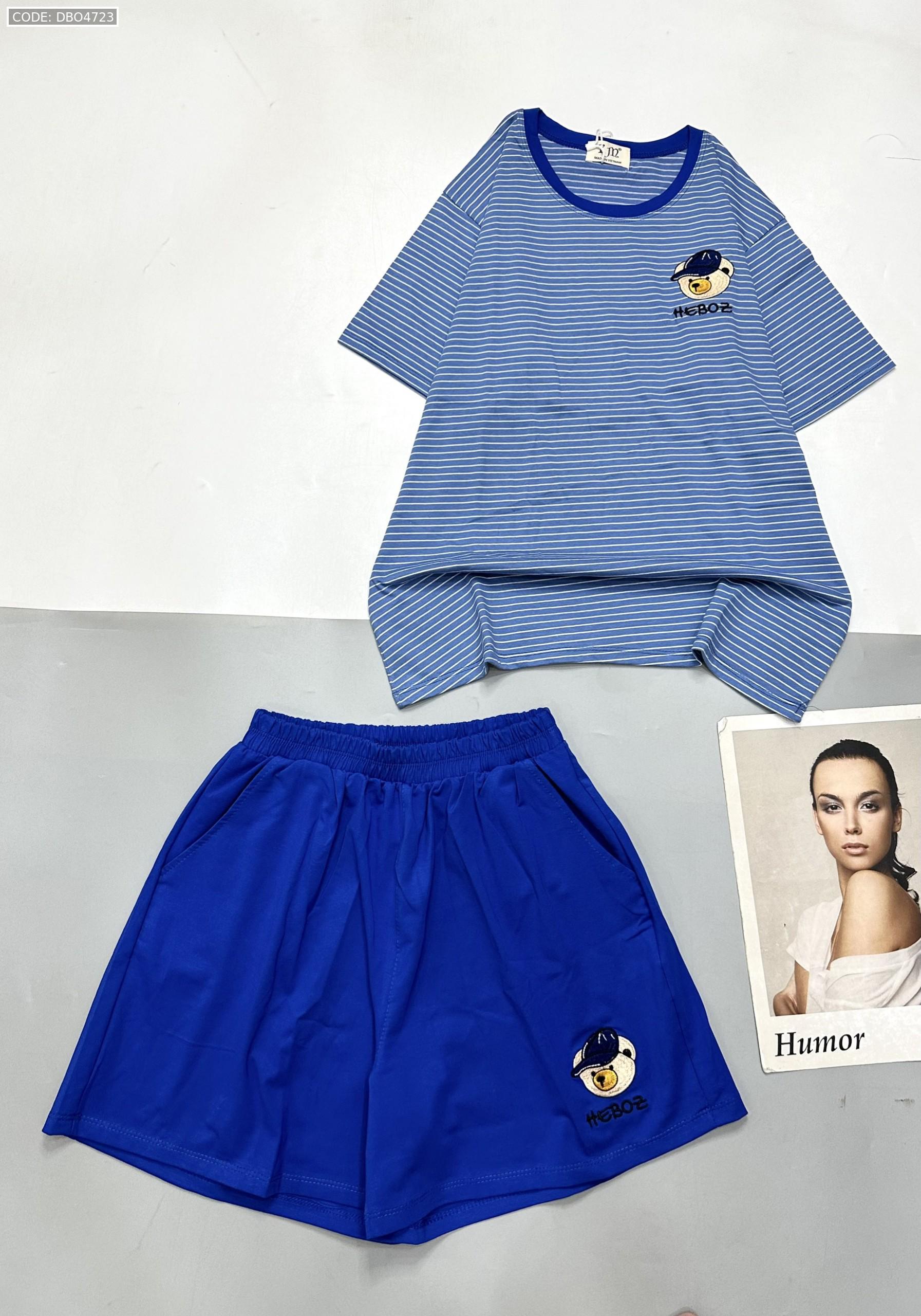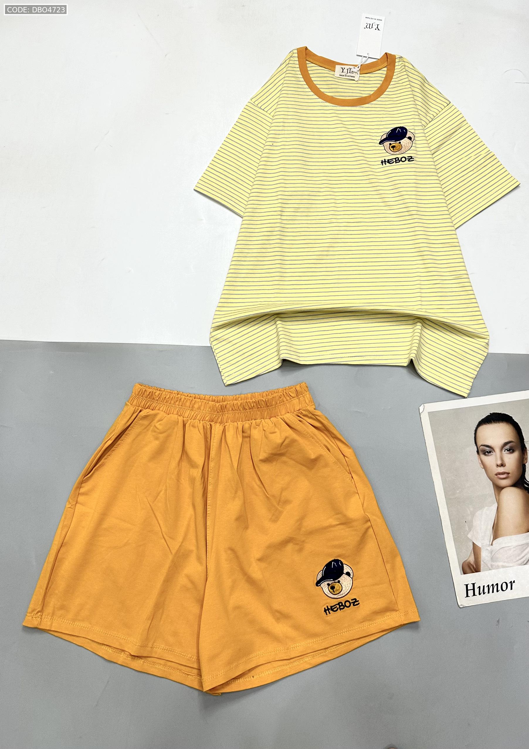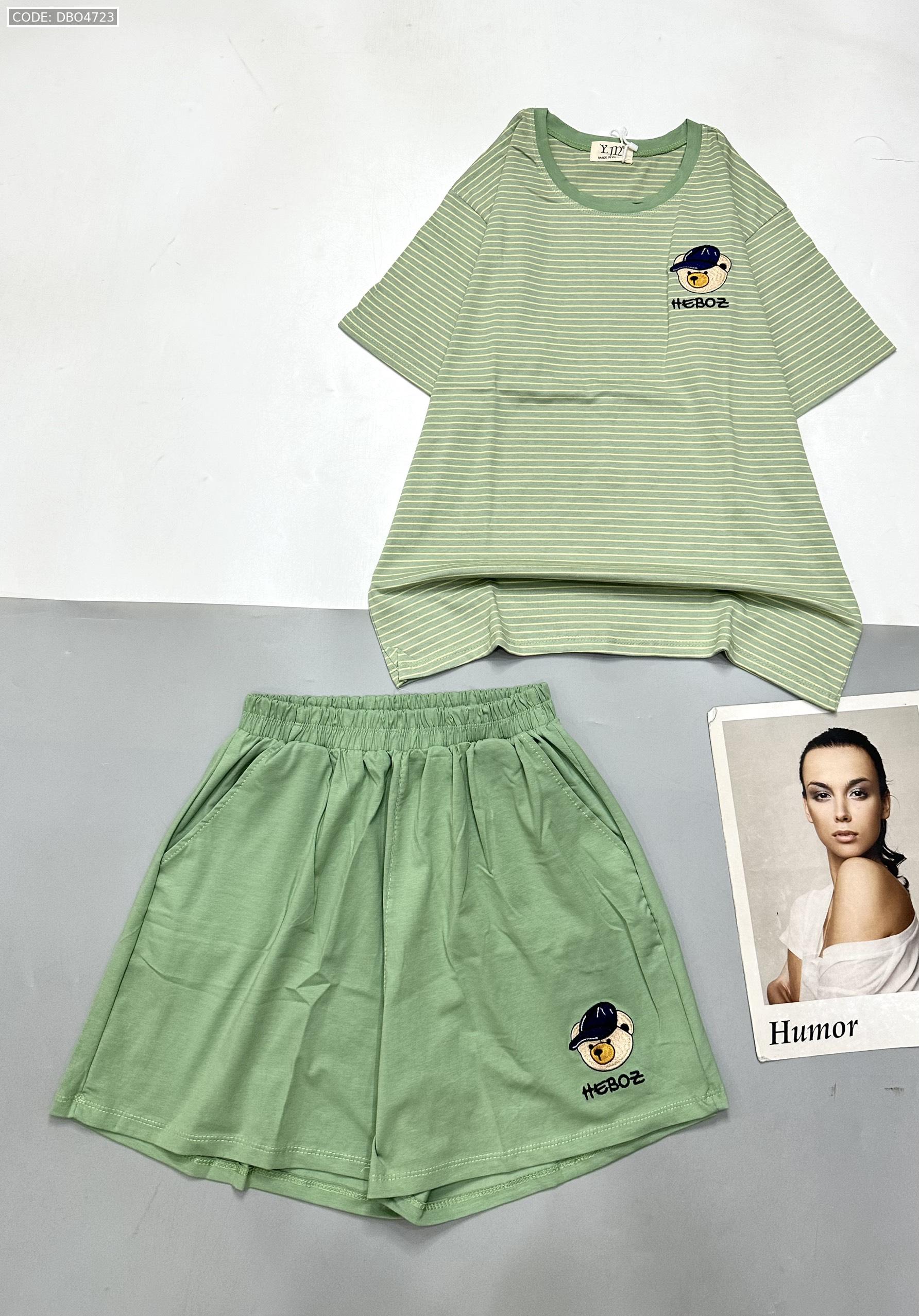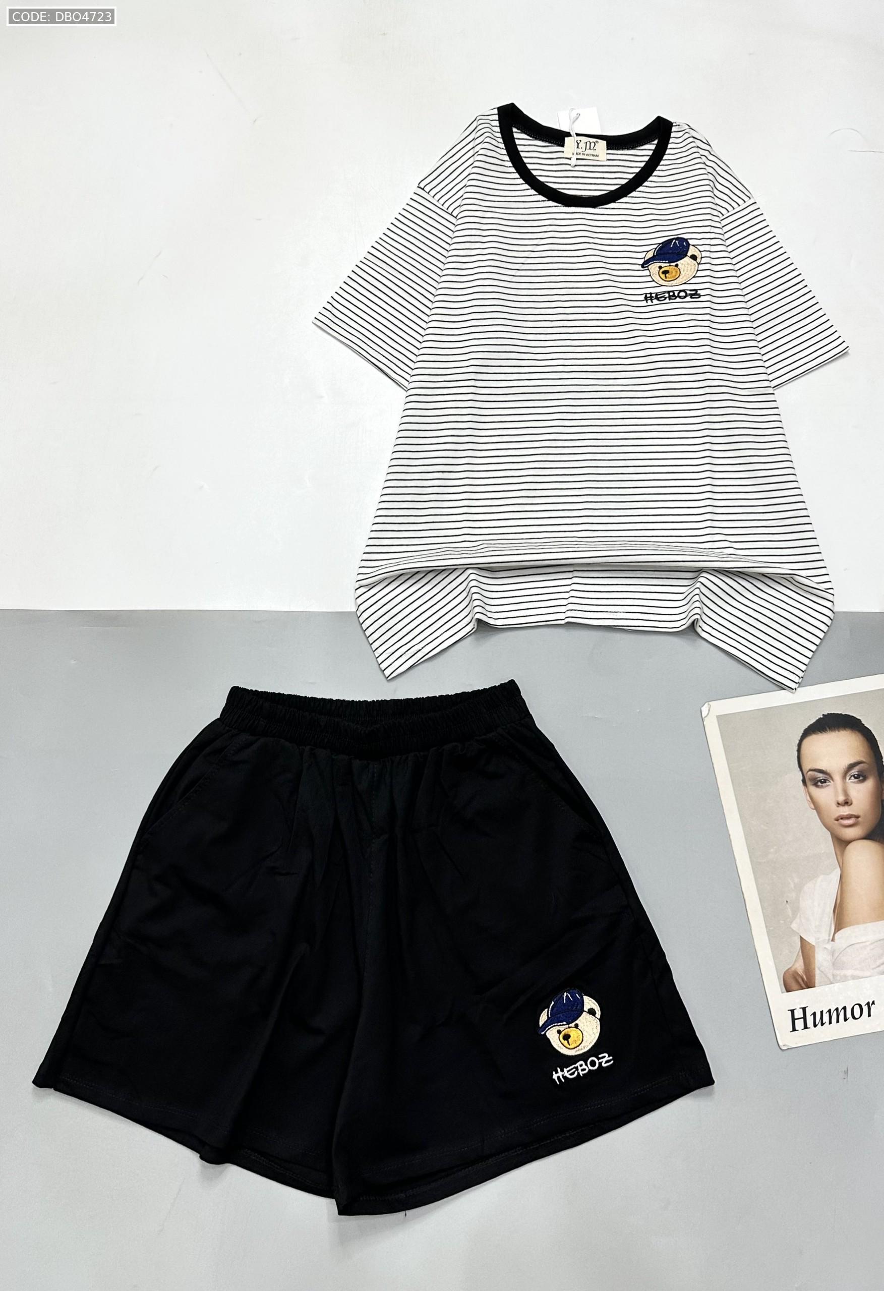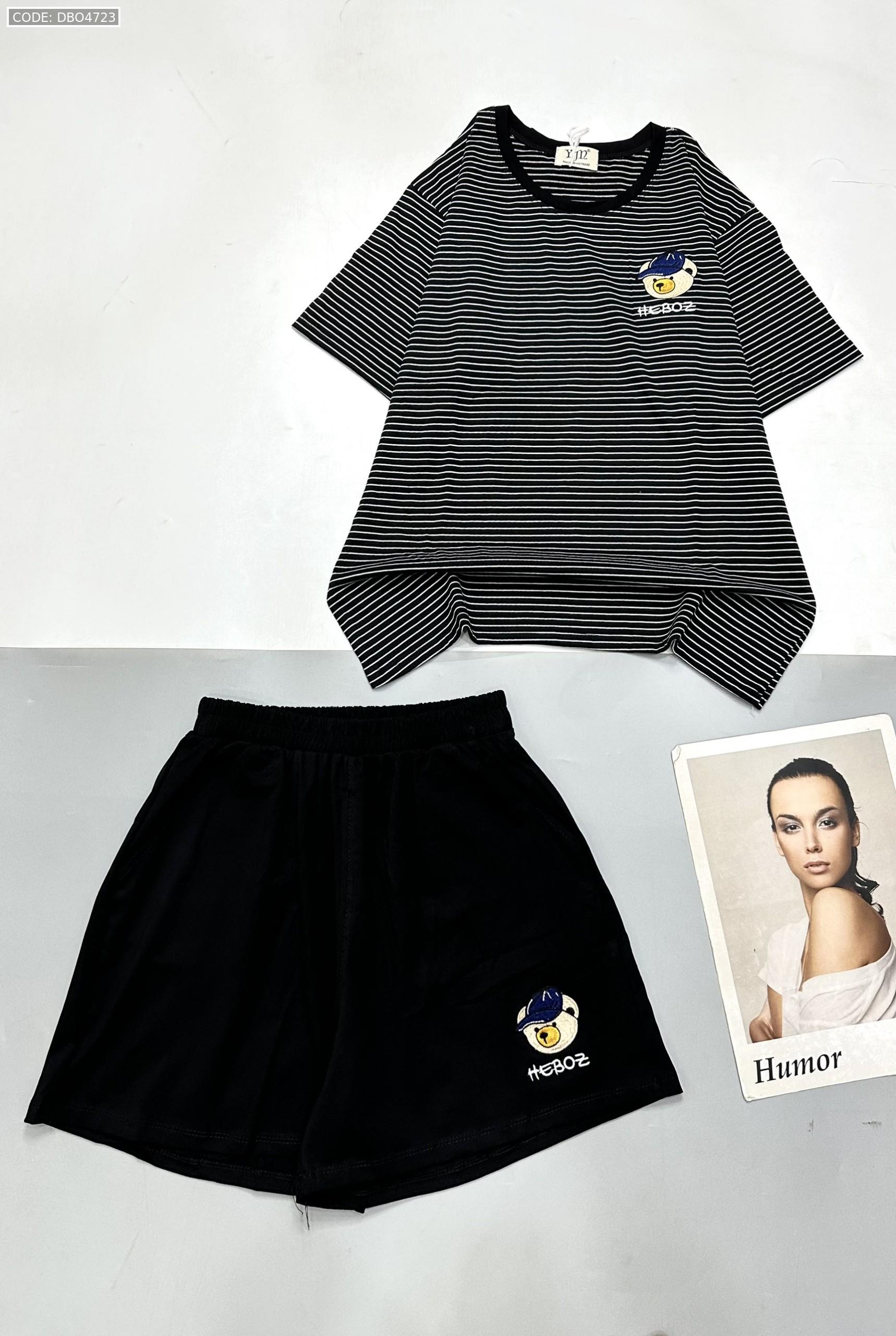 Chuyên sỉ đồ bộ quần đùi trơn gấu áo sọc ngang