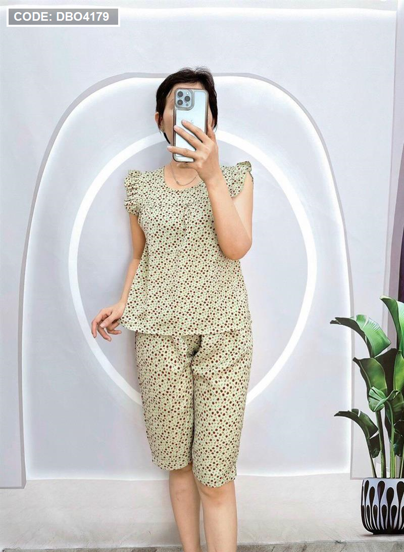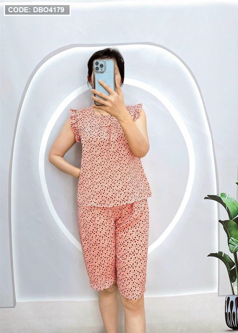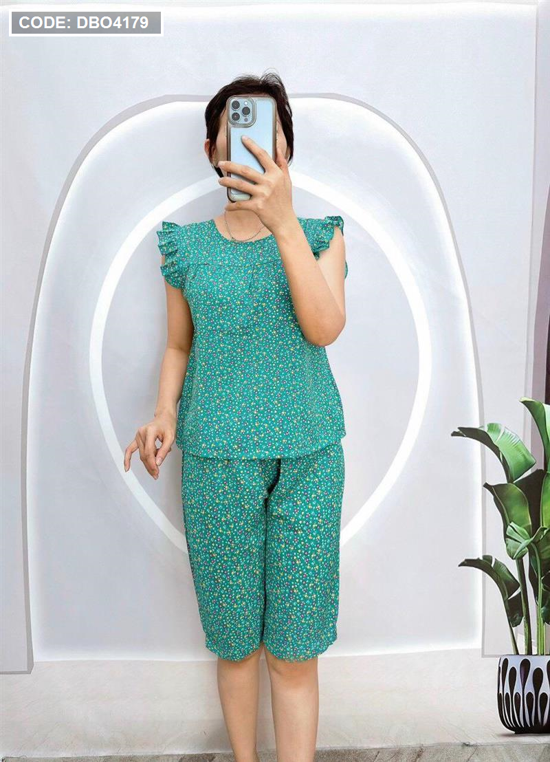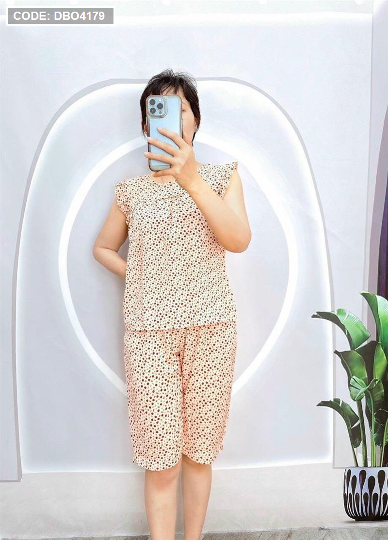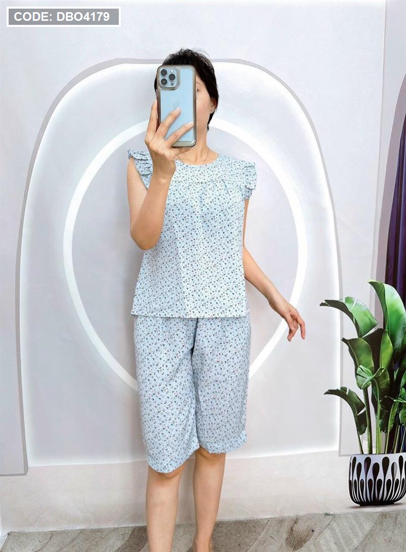 Đồ bộ quần lửng áo sát nách viền bèo hoạ tiết