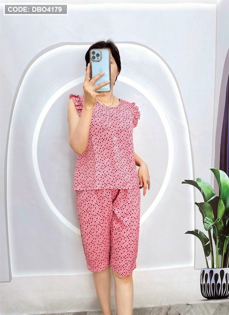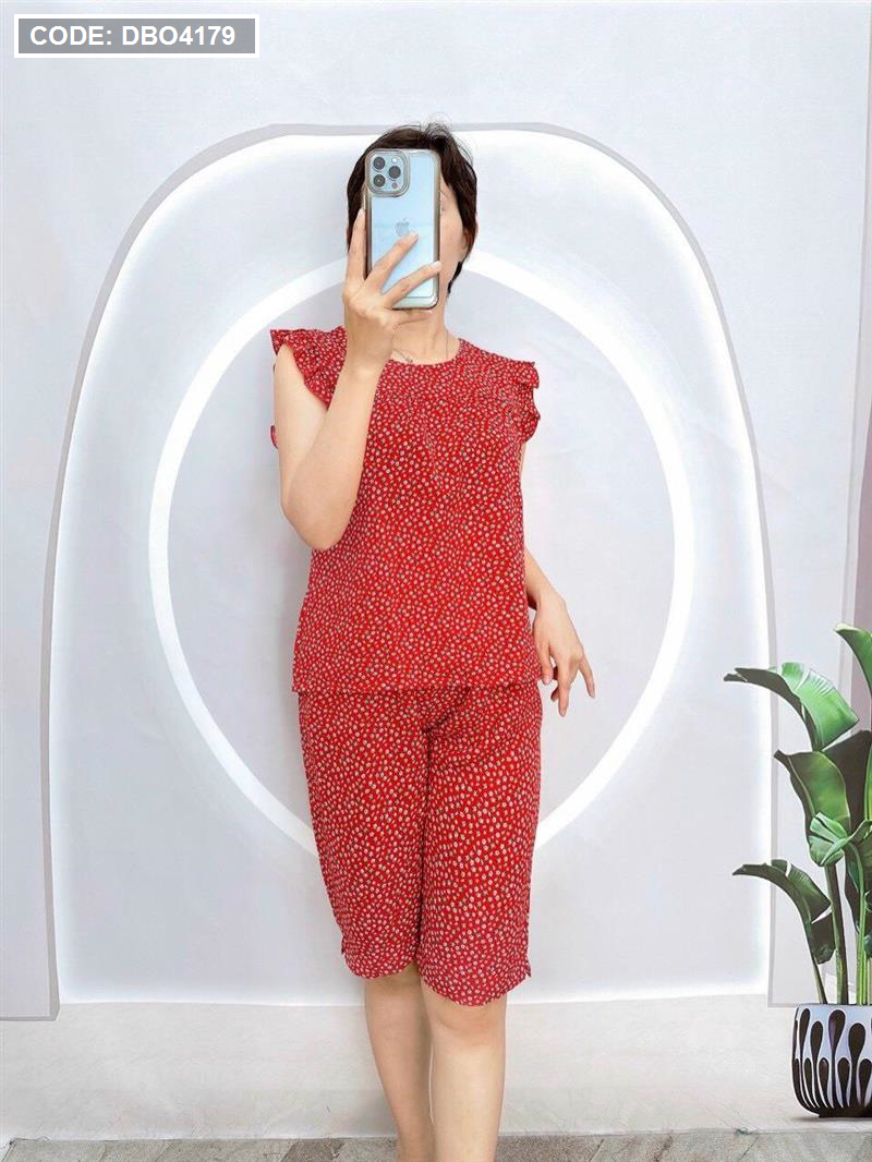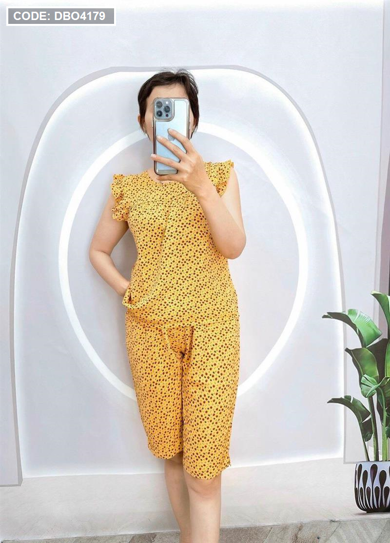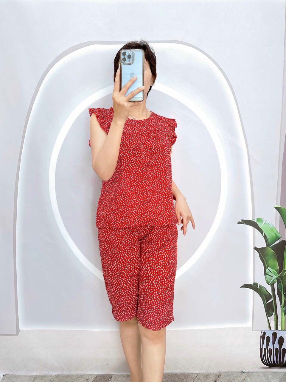 Đồ bộ quần lửng áo sát nách viền bèo hoạ tiết