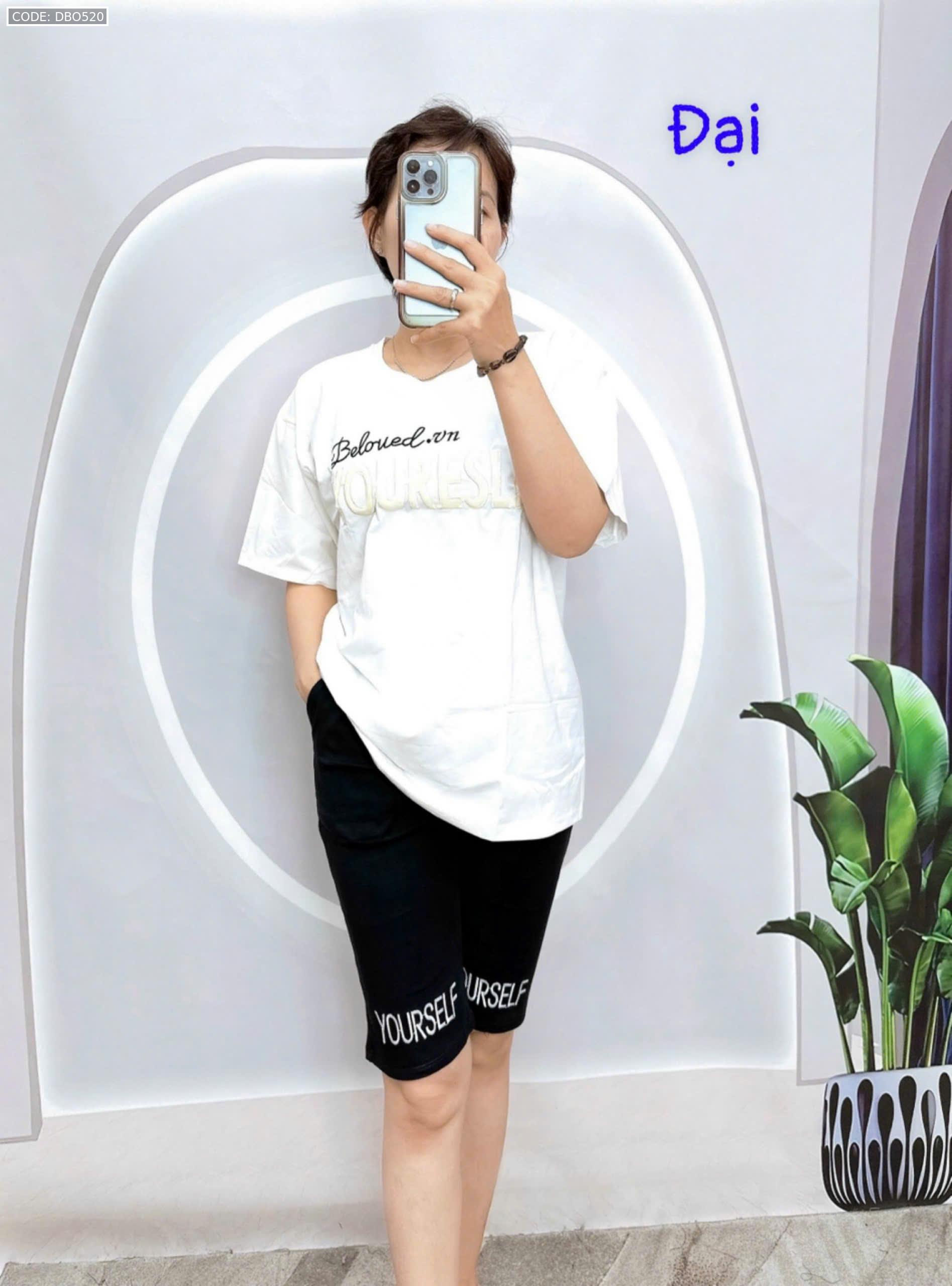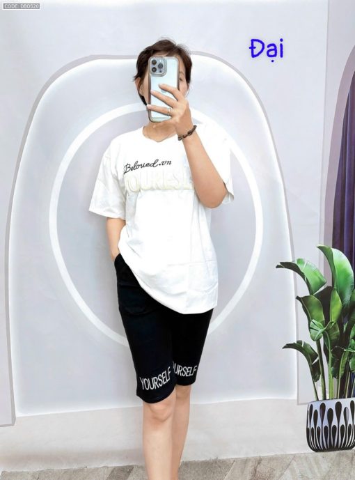 Chuyên sỉ đồ bộ quần lửng đen áo tay ngắn in chữ ống quần