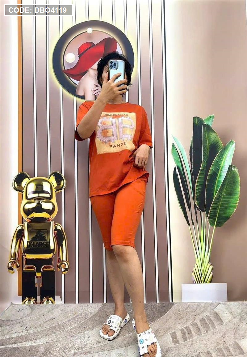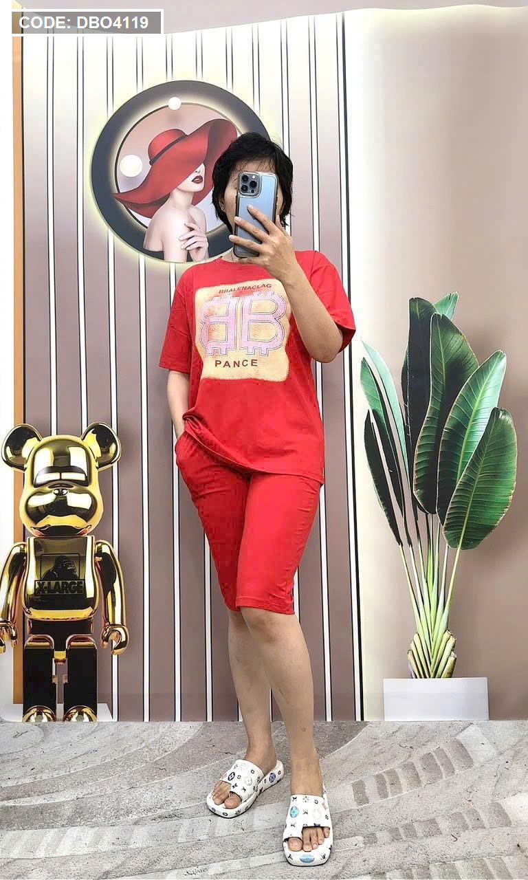 Đồ bộ quần ngố màu áo tay ngắn in hình
