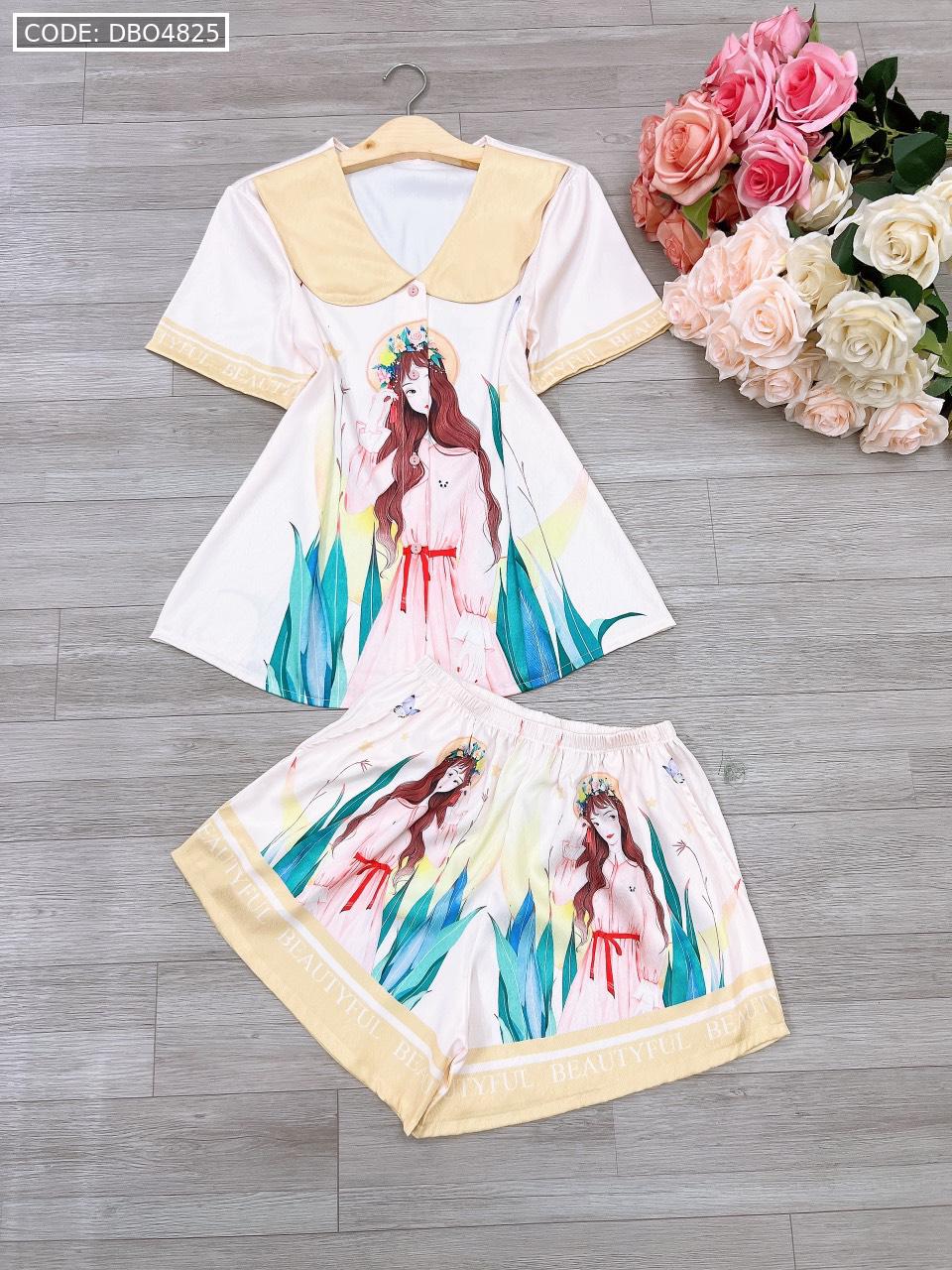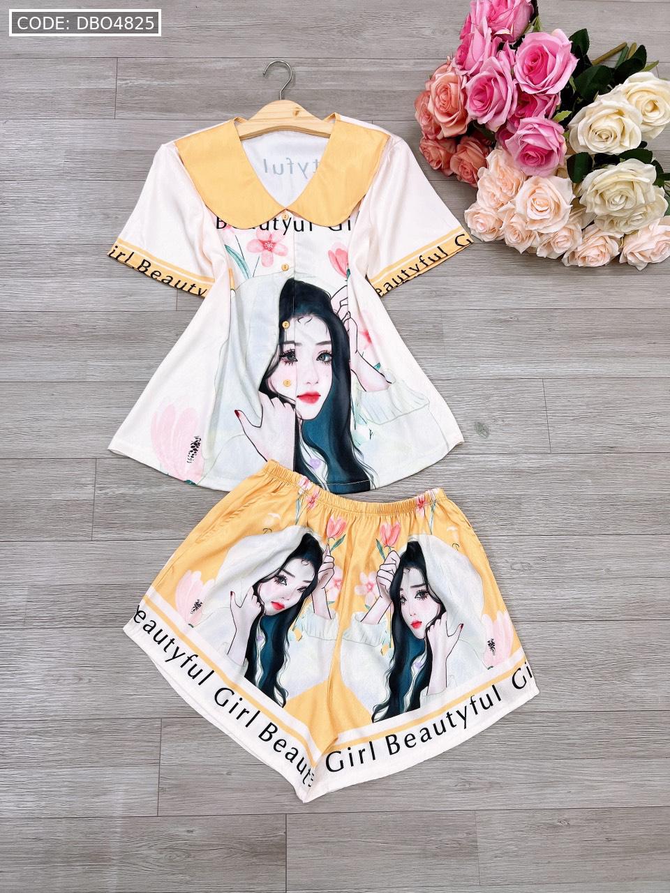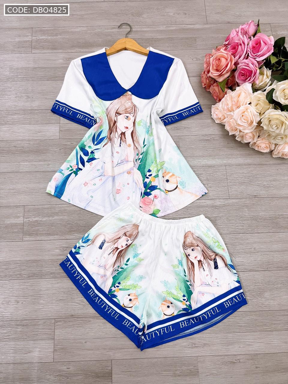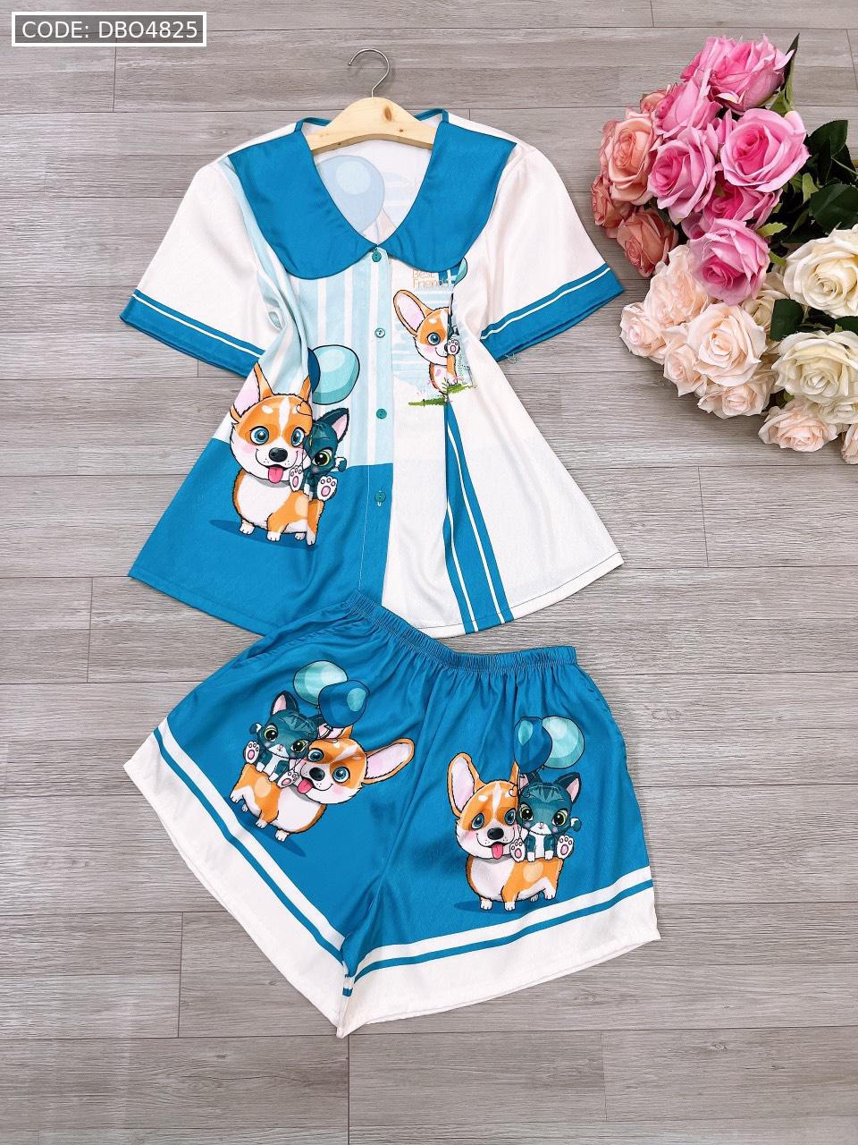 Chuyên sỉ đồ bộ siêu mát quần đùi áo tay ngắn cổ bẻ in nhiều hình