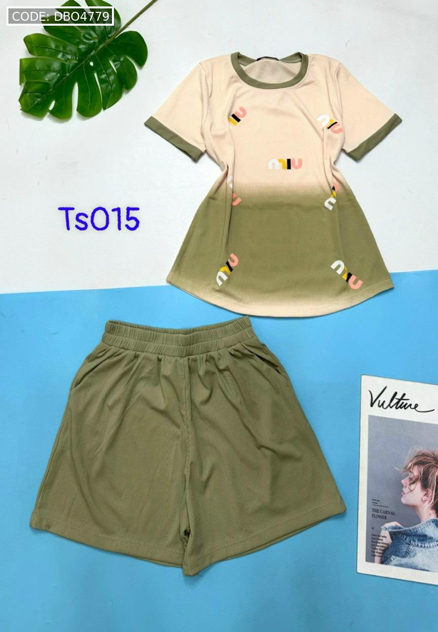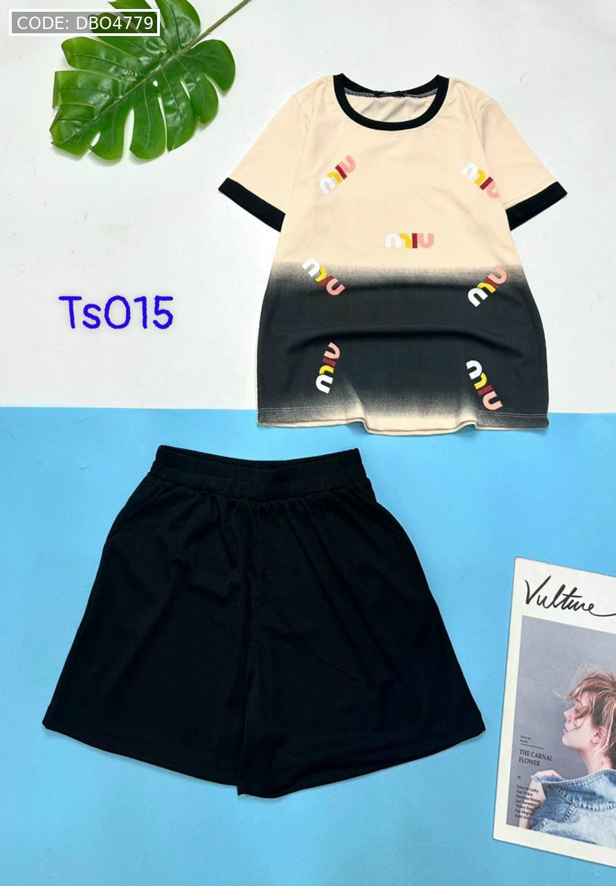 Chuyên sỉ đồ bộ tăm lạnh loang 2 màu quần đùi áo cổ tròn tay ngắn in chữ