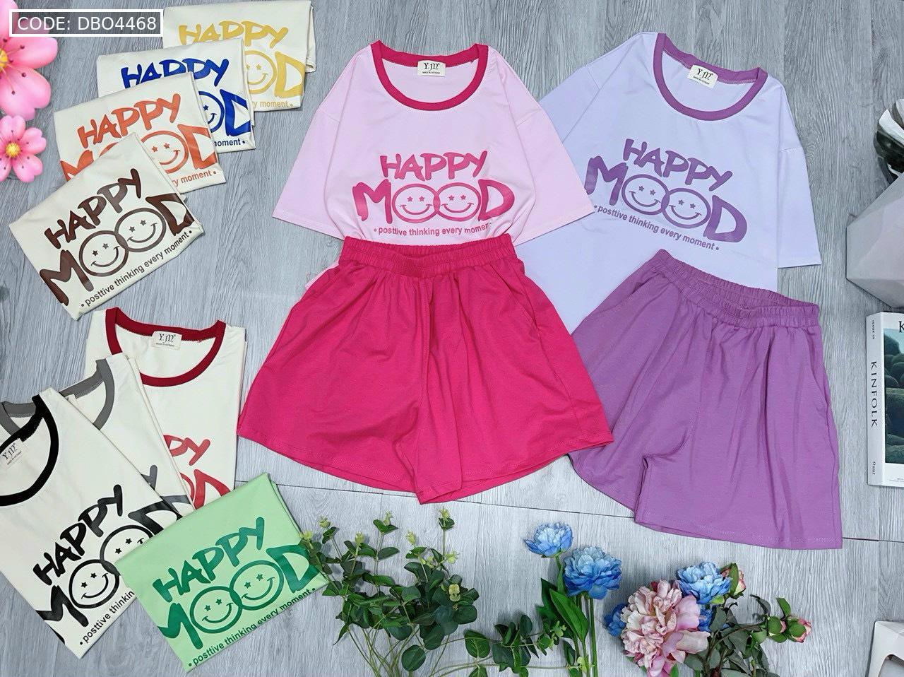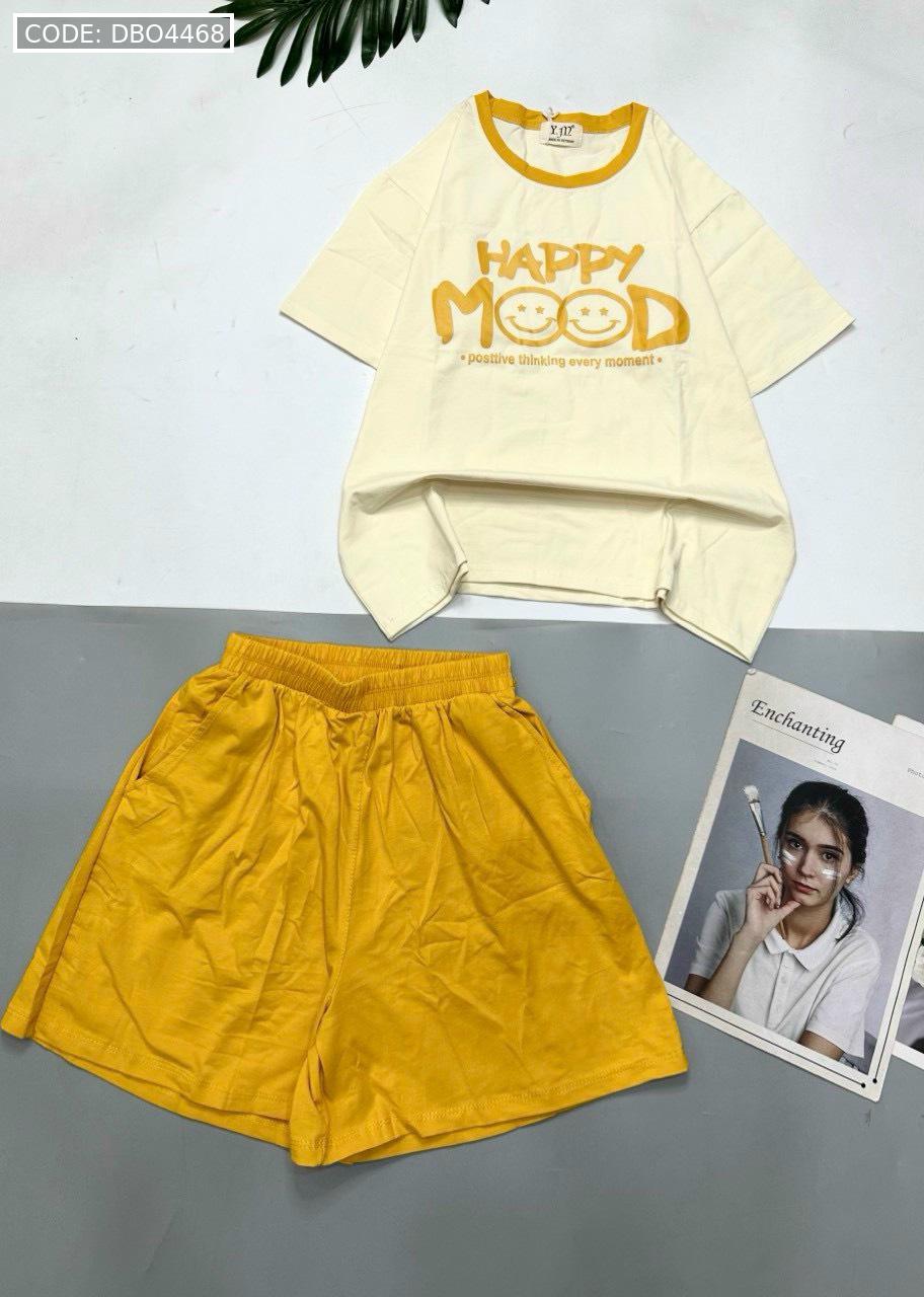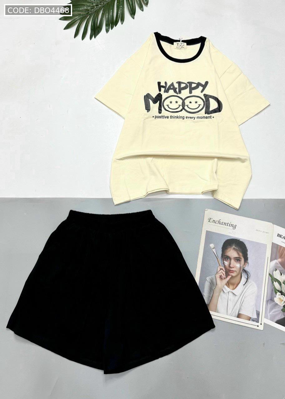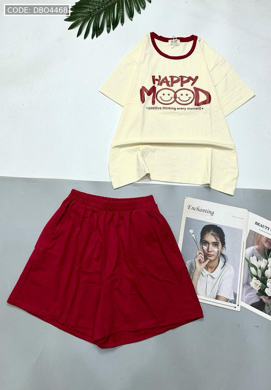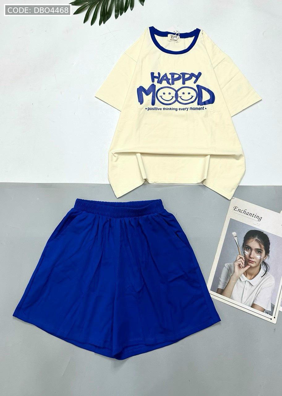 Chuyên sỉ đồ bộ thun cotton quần đùi áo tay ngắn in chữ HAPPY