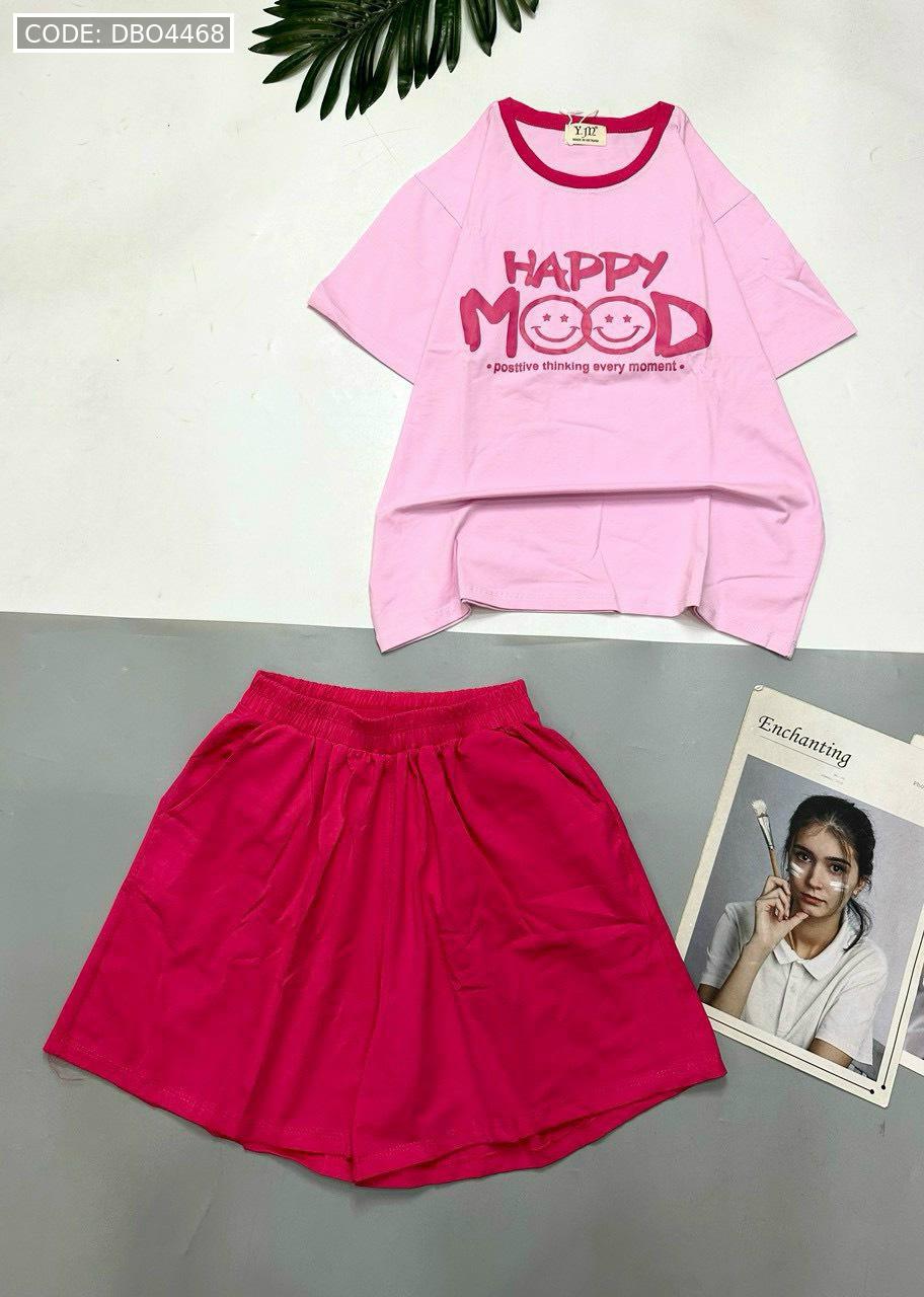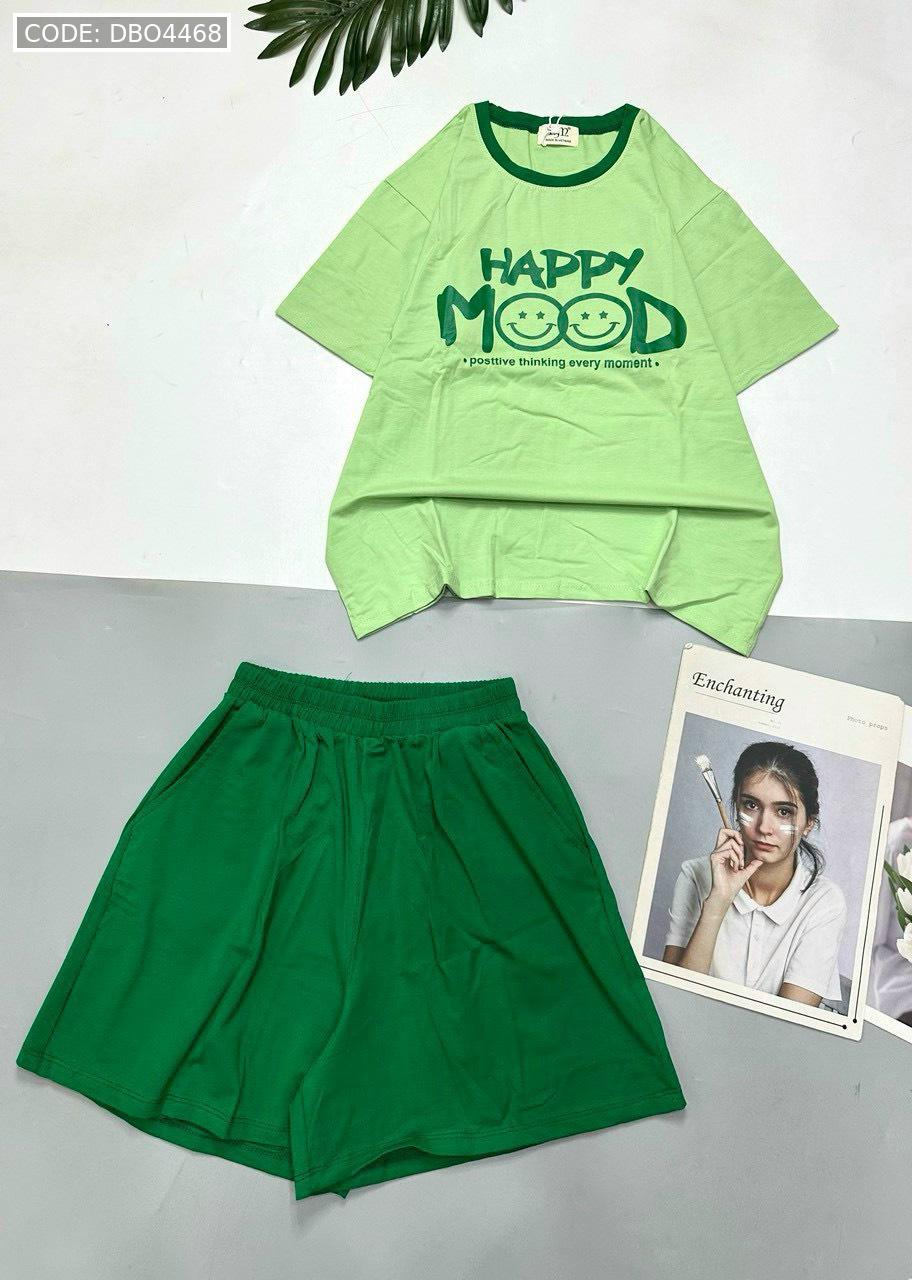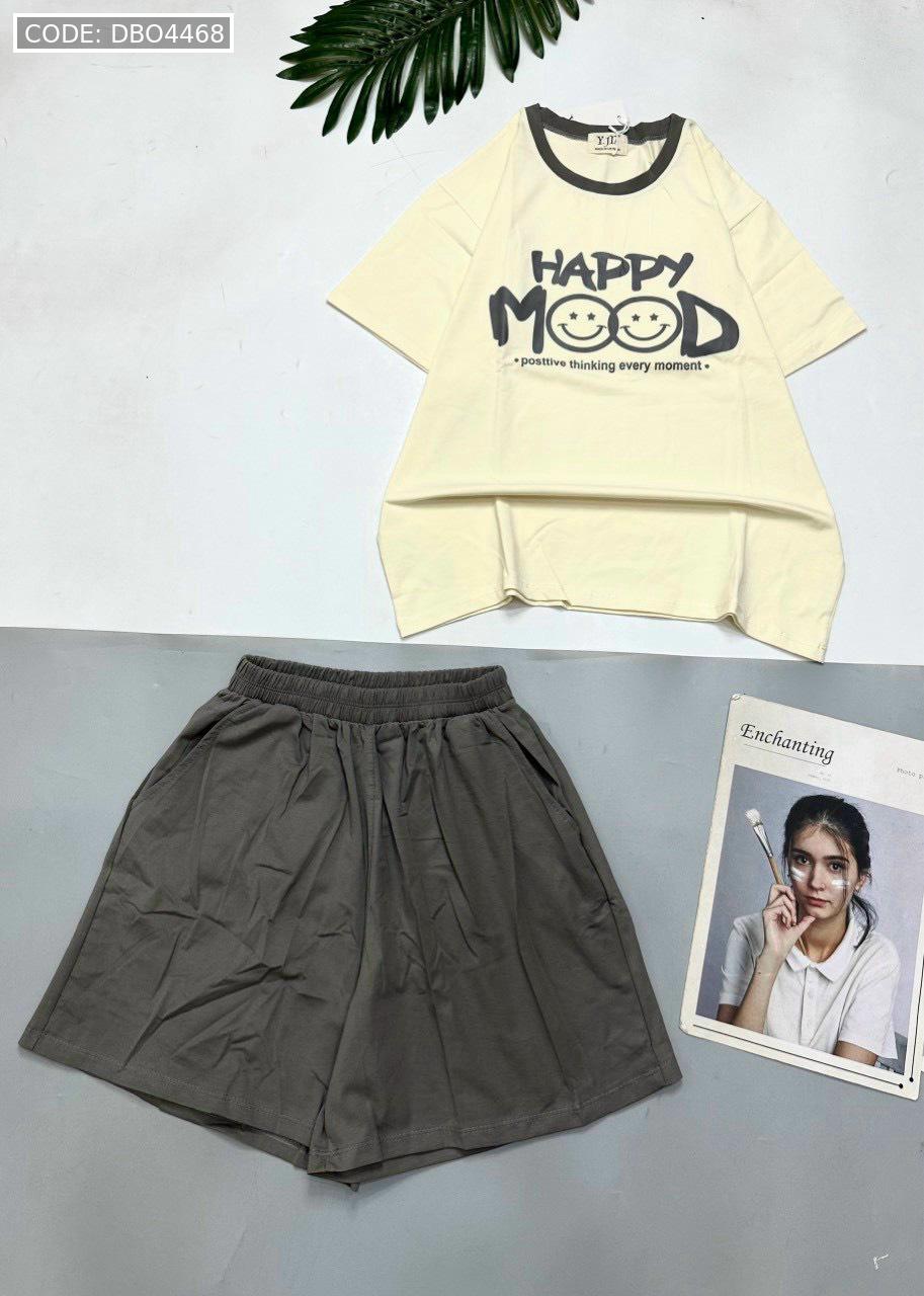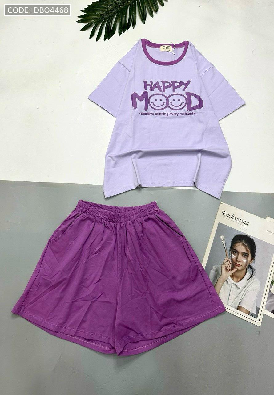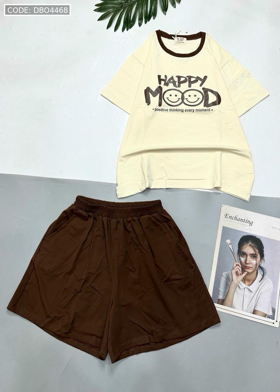 Chuyên sỉ đồ bộ thun cotton quần đùi áo tay ngắn in chữ HAPPY