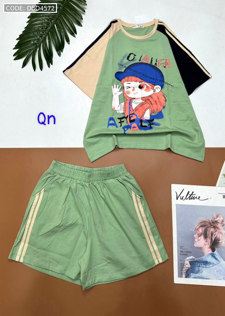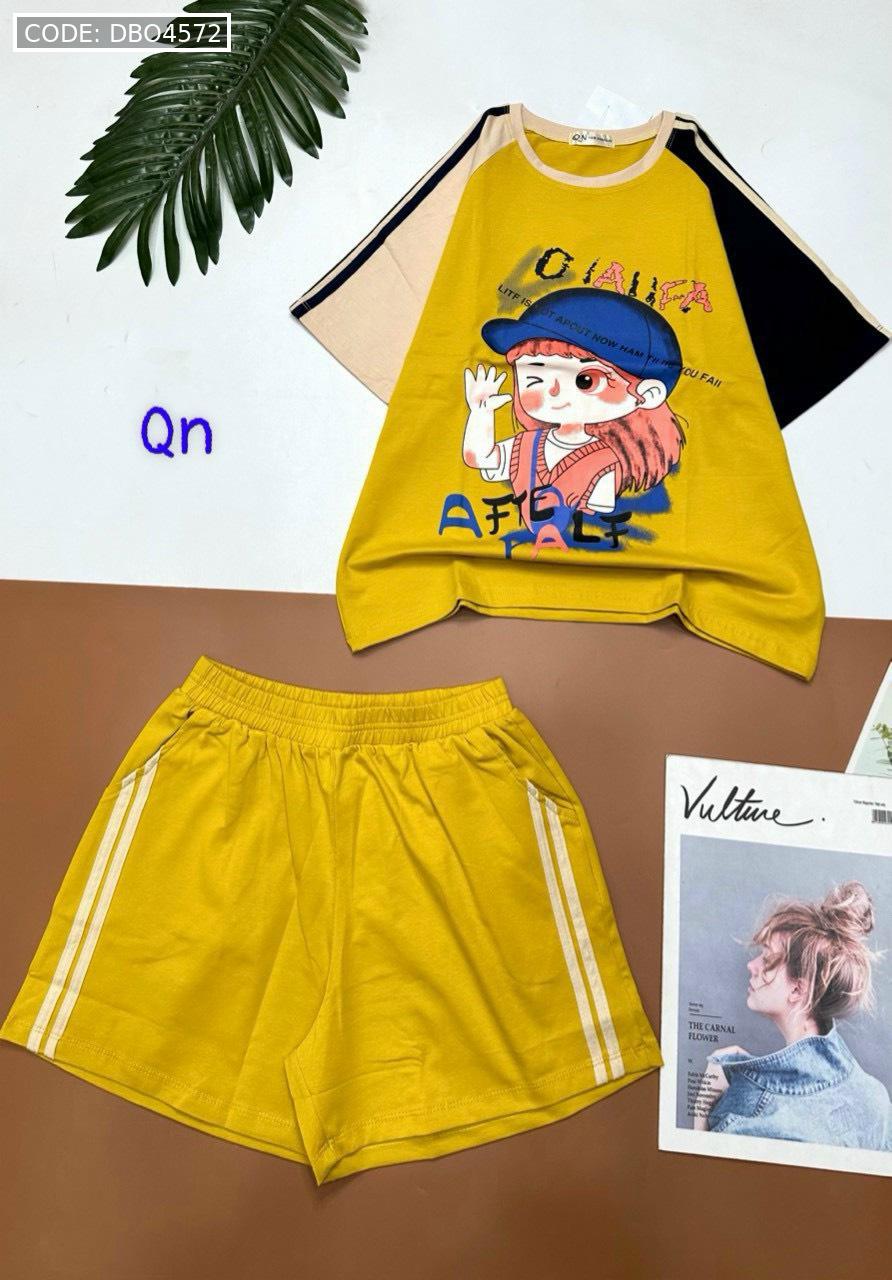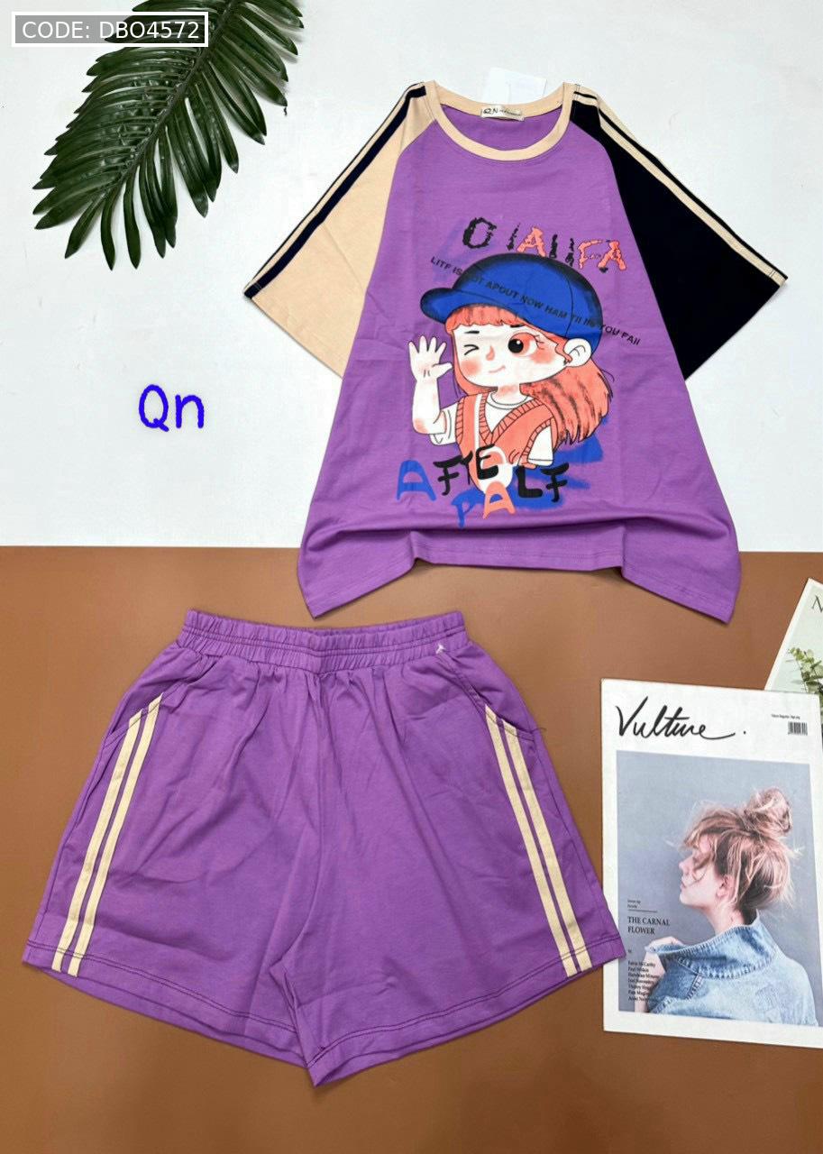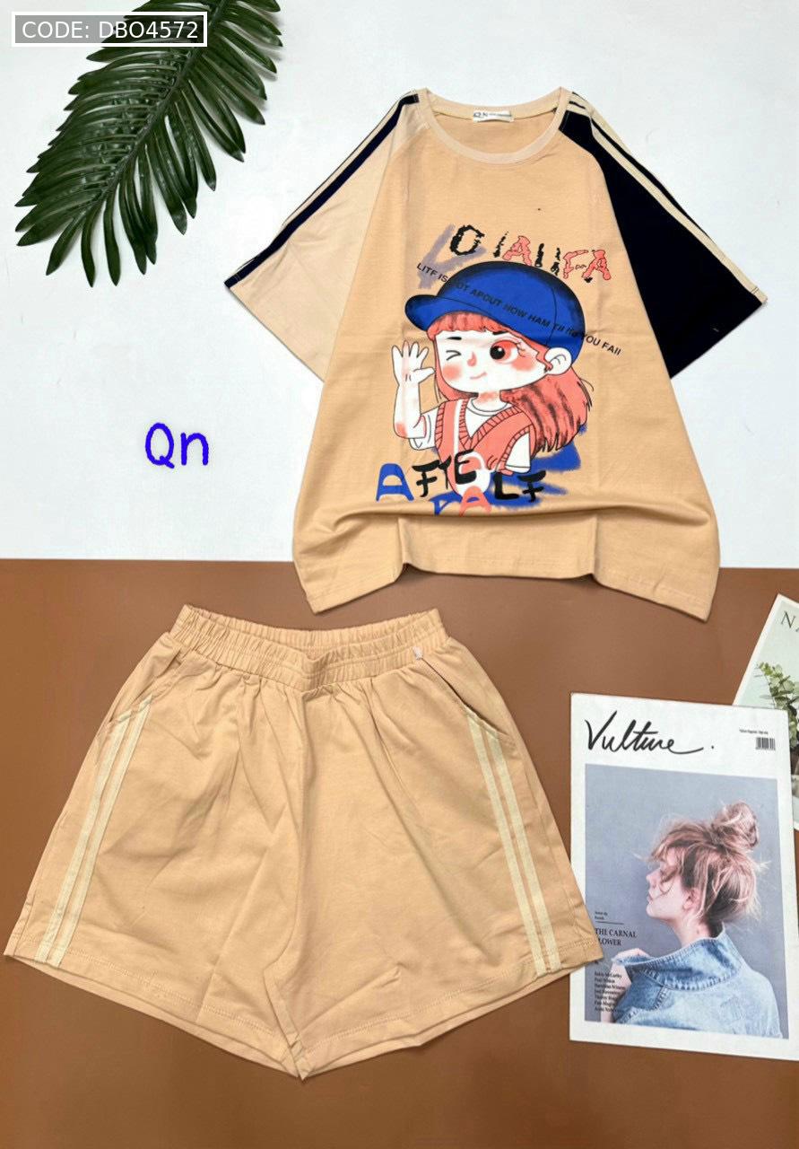 Chuyên sỉ đồ bộ thun nữ quần đùi áo in hình bé gái đội mũ