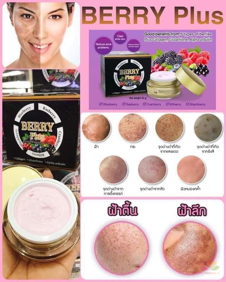 Kem trị nám Berry Plus Extra Whitening Cream Thái Lan trị tàn nhang loại bỏ các đốm đen, ngăn chặn hình thành, điều trị mụn làn da trở nên khoẻ mạnh và trắng