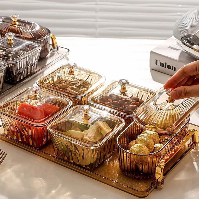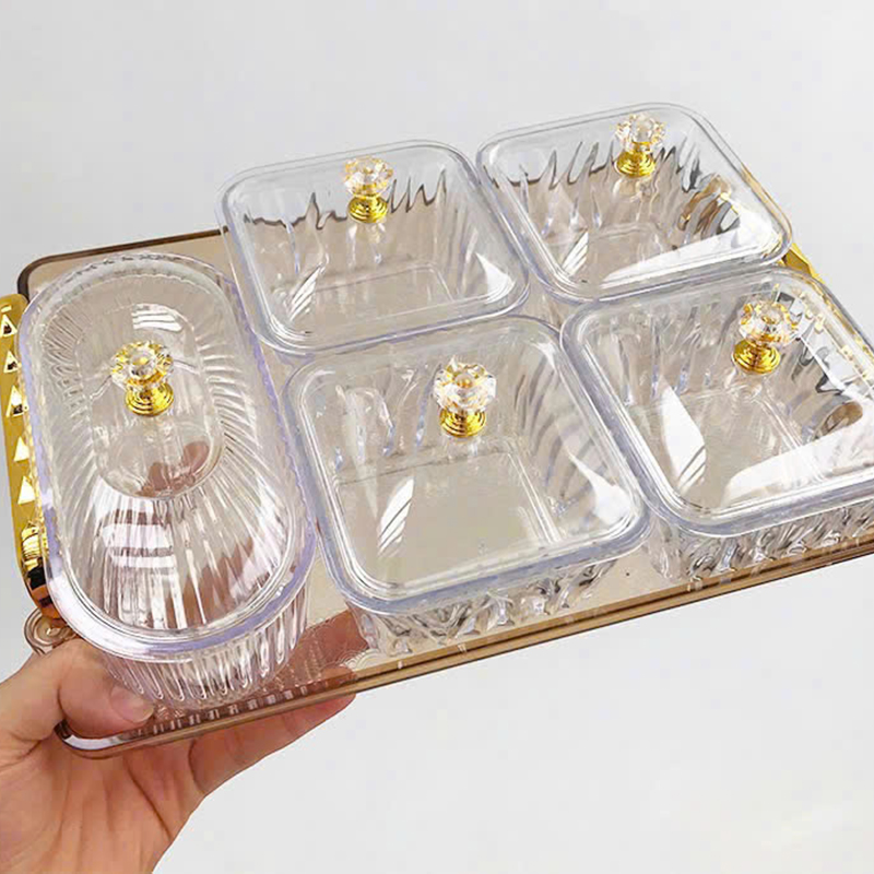 ❌❌Khay mứt 5 hũ sang trọng kèm khay, Hũ Đựng Bánh Kẹo, Mứt, Hạt ngày tết 2025❌❌