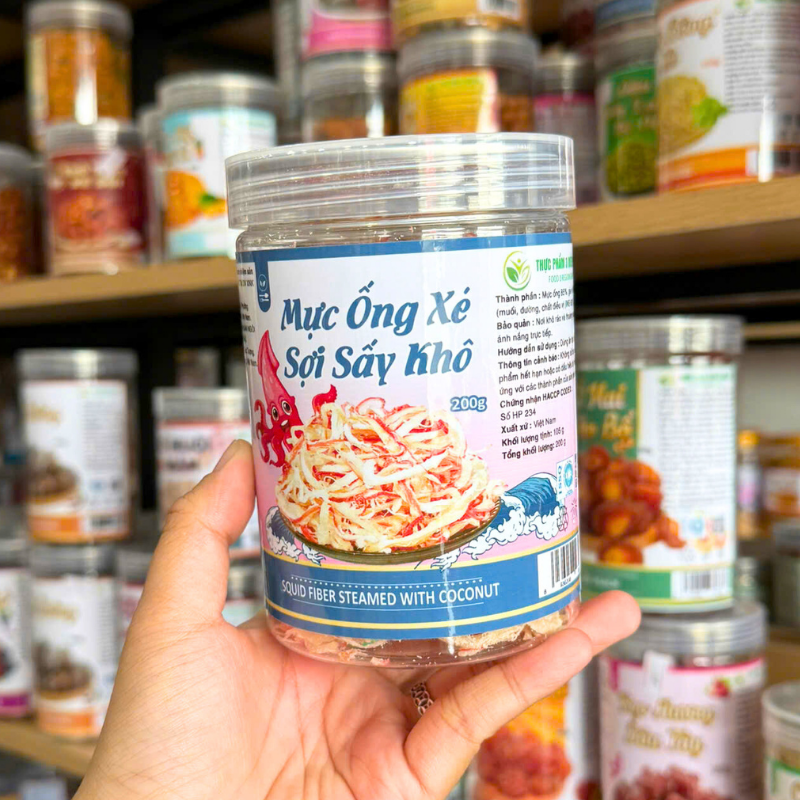 Chuyên sỉ mực Ống Xé Sợi Sấy Khô – Mực Sợi Dừa Thơm Ngon 200g – Hũ Pet