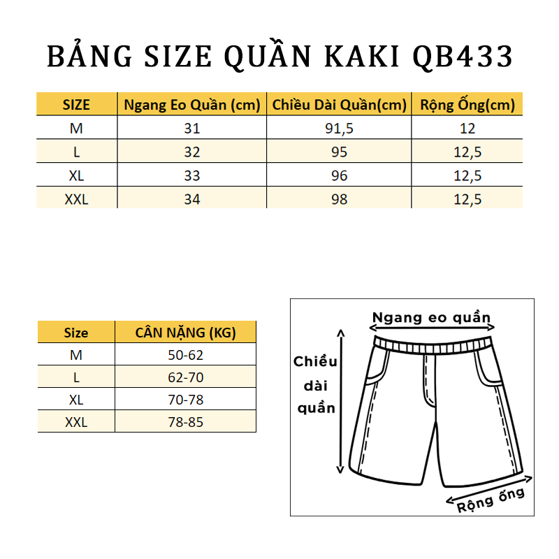 Chất liệu: Kaki co giãn, thấm hút mồ hôi tốt